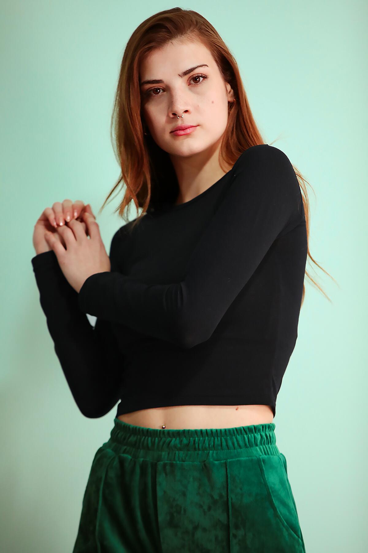 Numune Bedeni: 36Numune Boyu: 43cmKumaş Tipi: %100 PamukKol:Uzun KolYaka:Bisiklet YakaUzunluk: Kısa