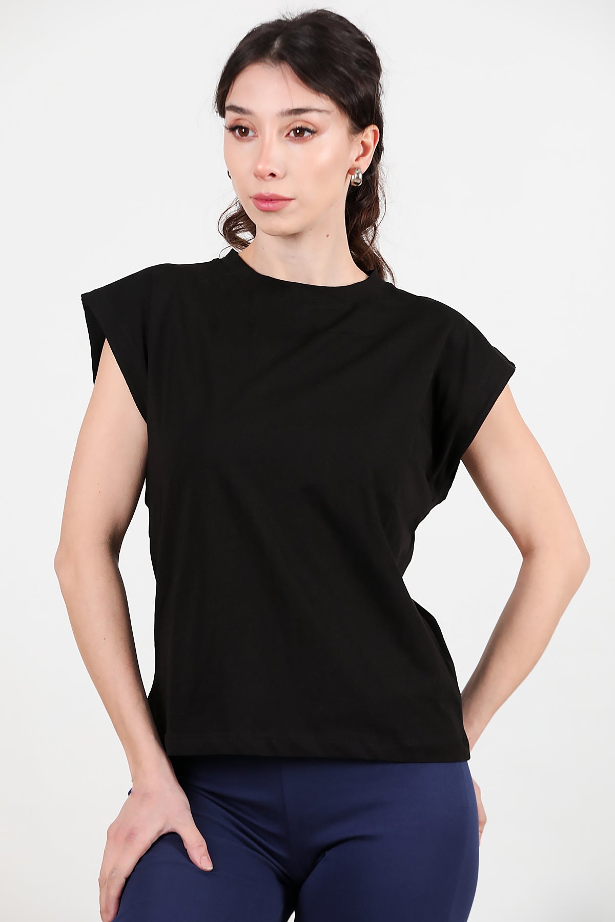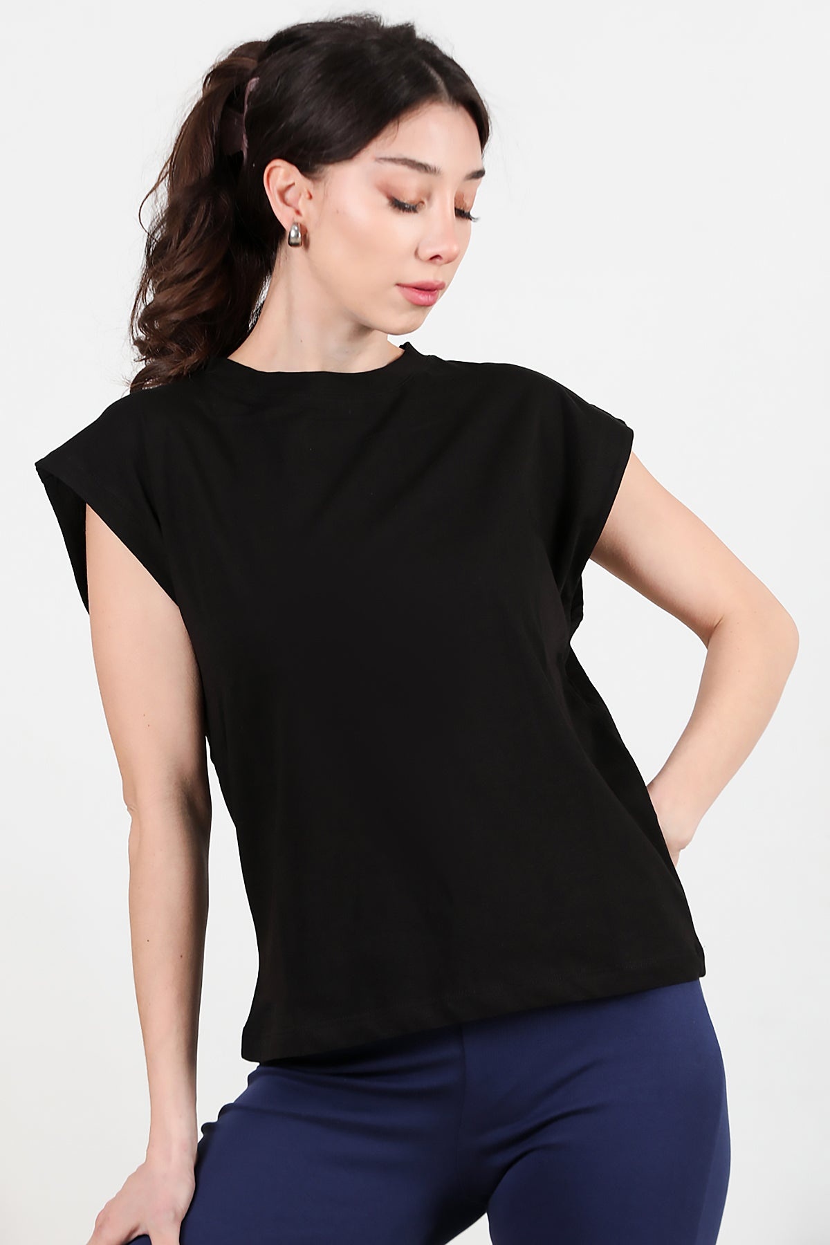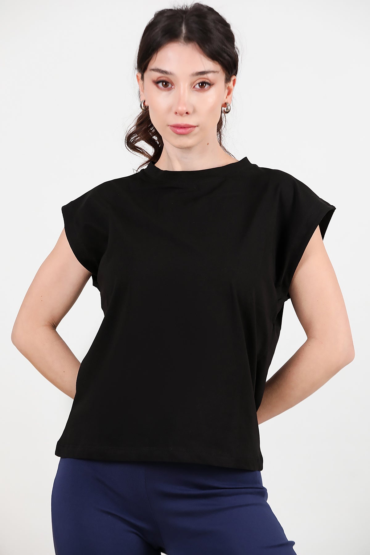 Kadın Bisiklet Yaka Oversize T-shirt Siyah