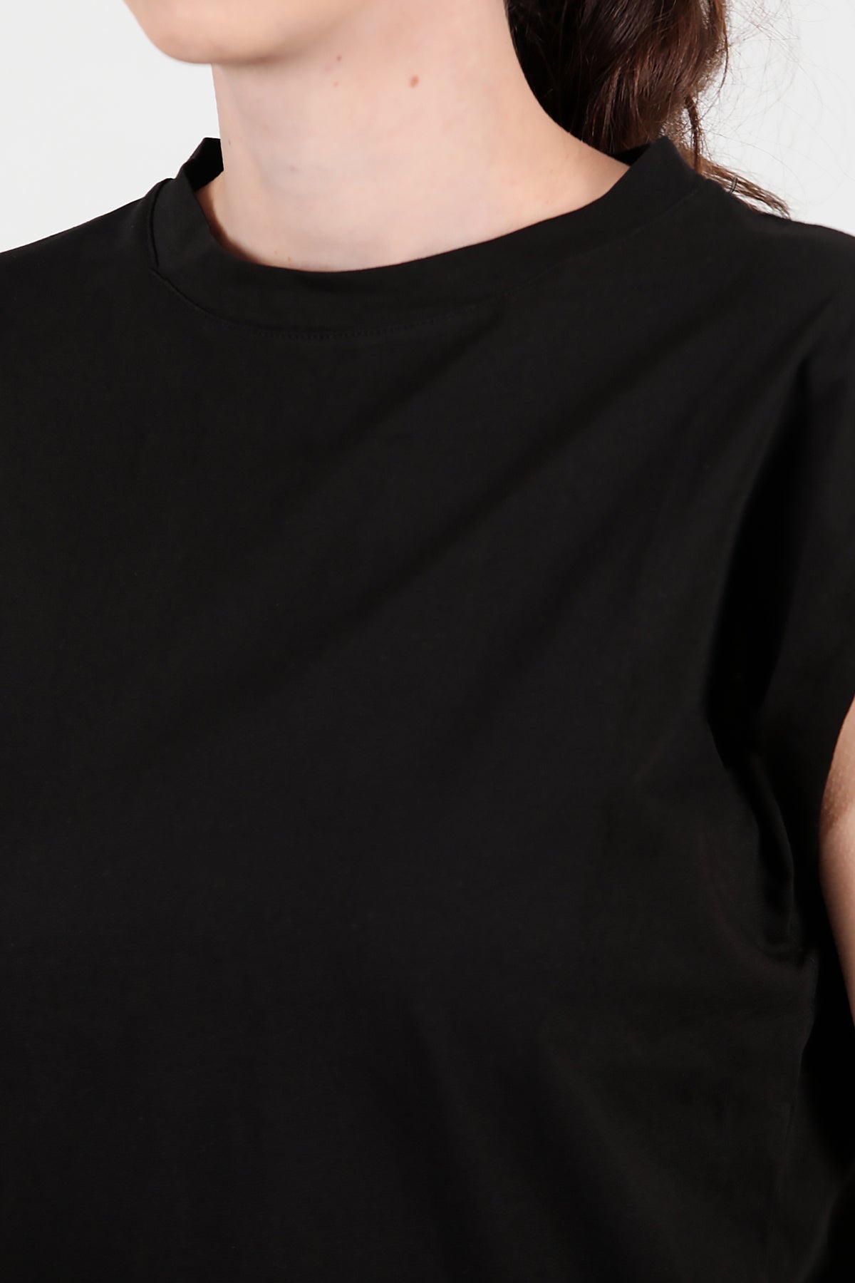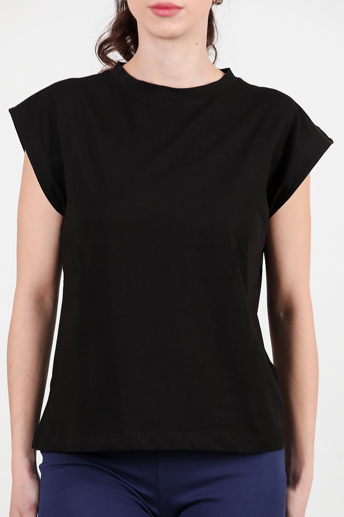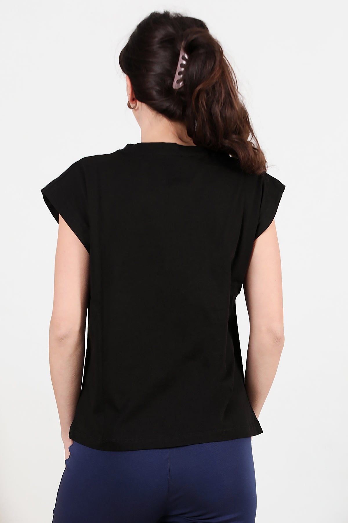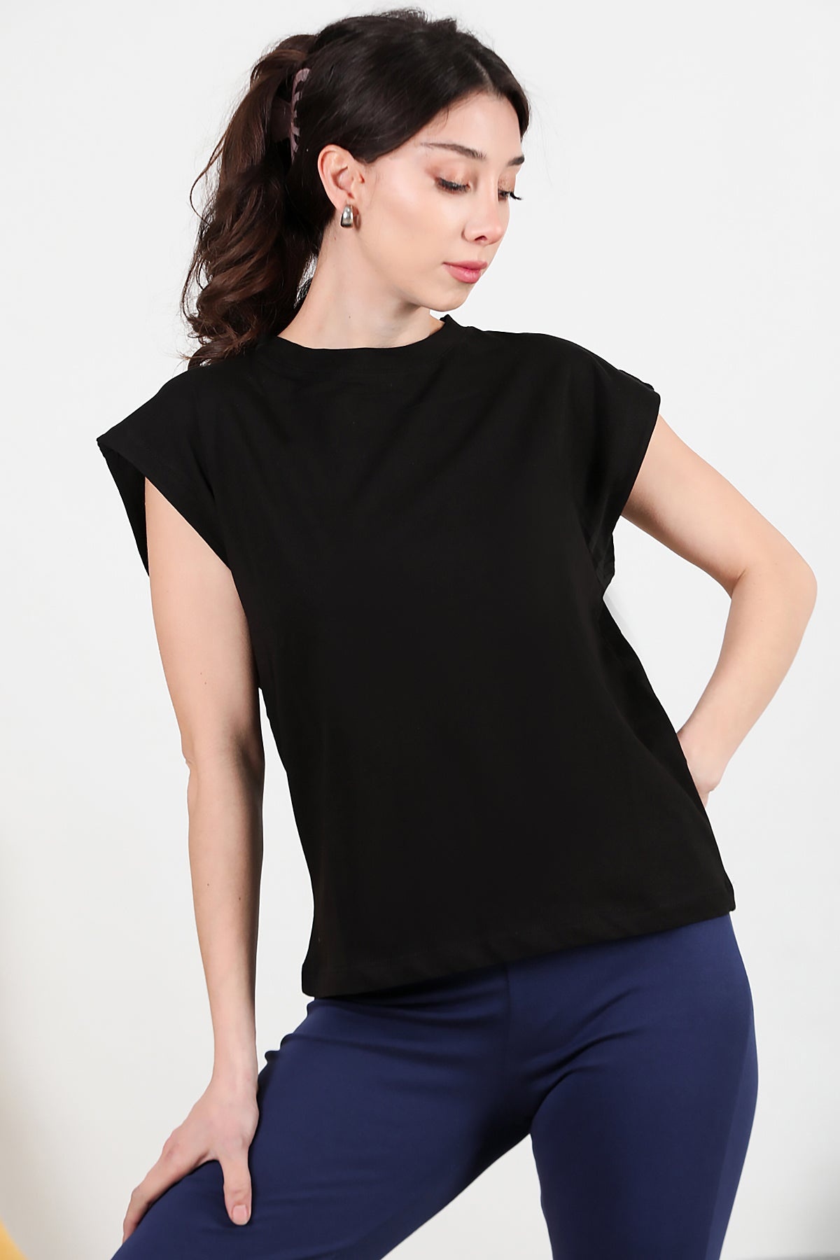 Kadın Bisiklet Yaka Oversize T-shirt Siyah
