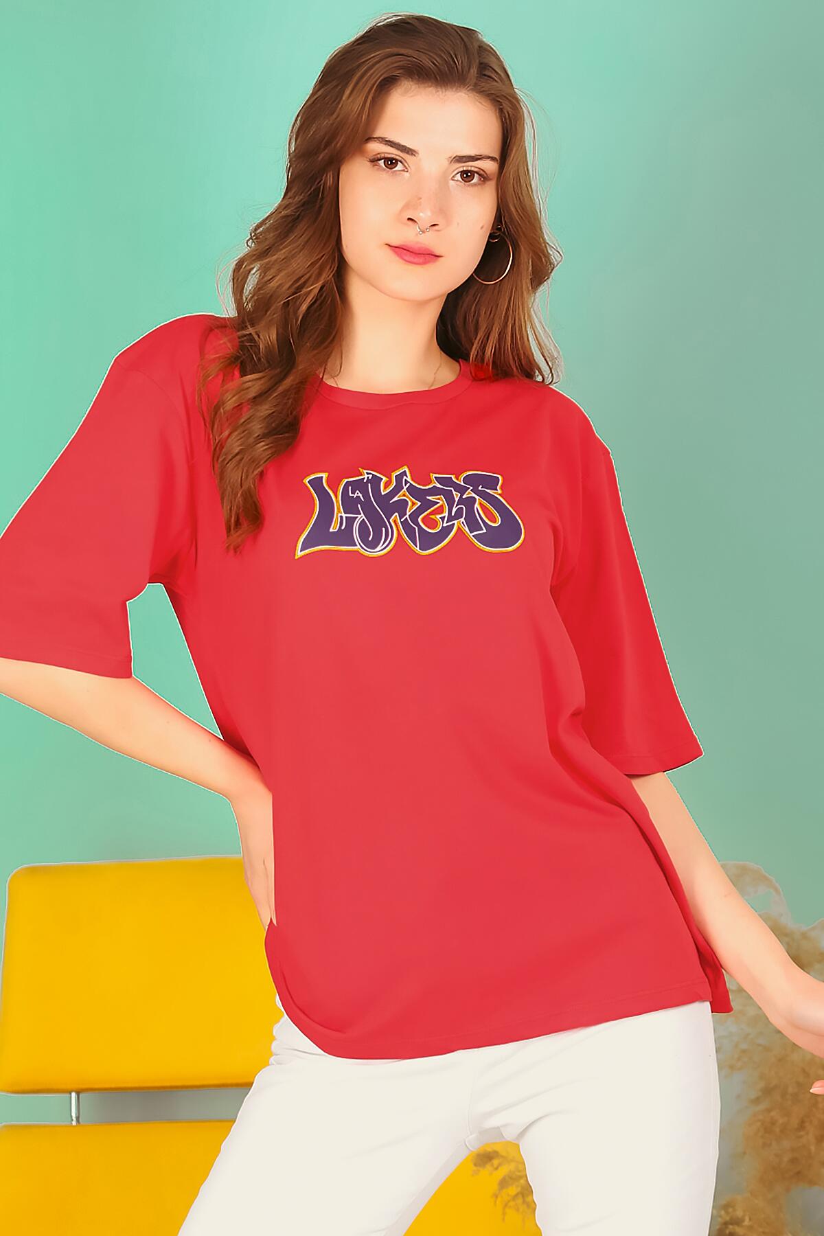 Kadın Bisiklet Yaka T-shırt Kırmızı