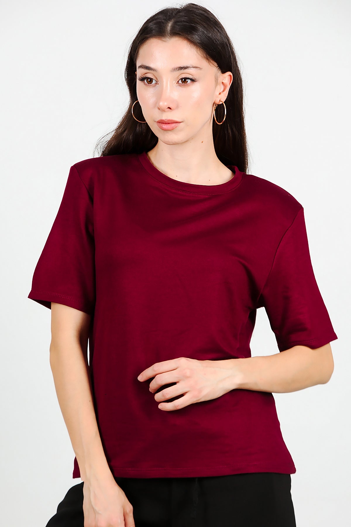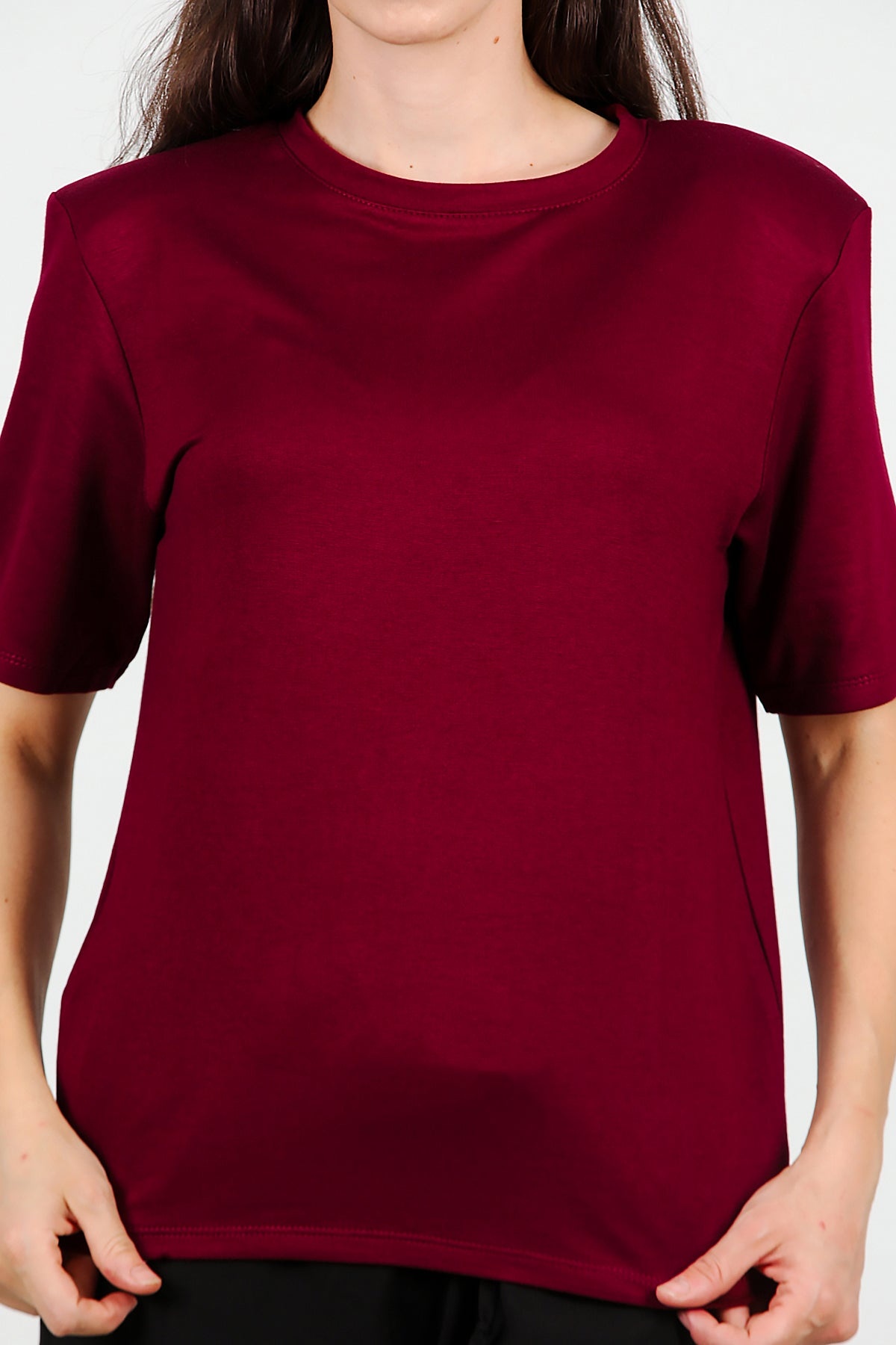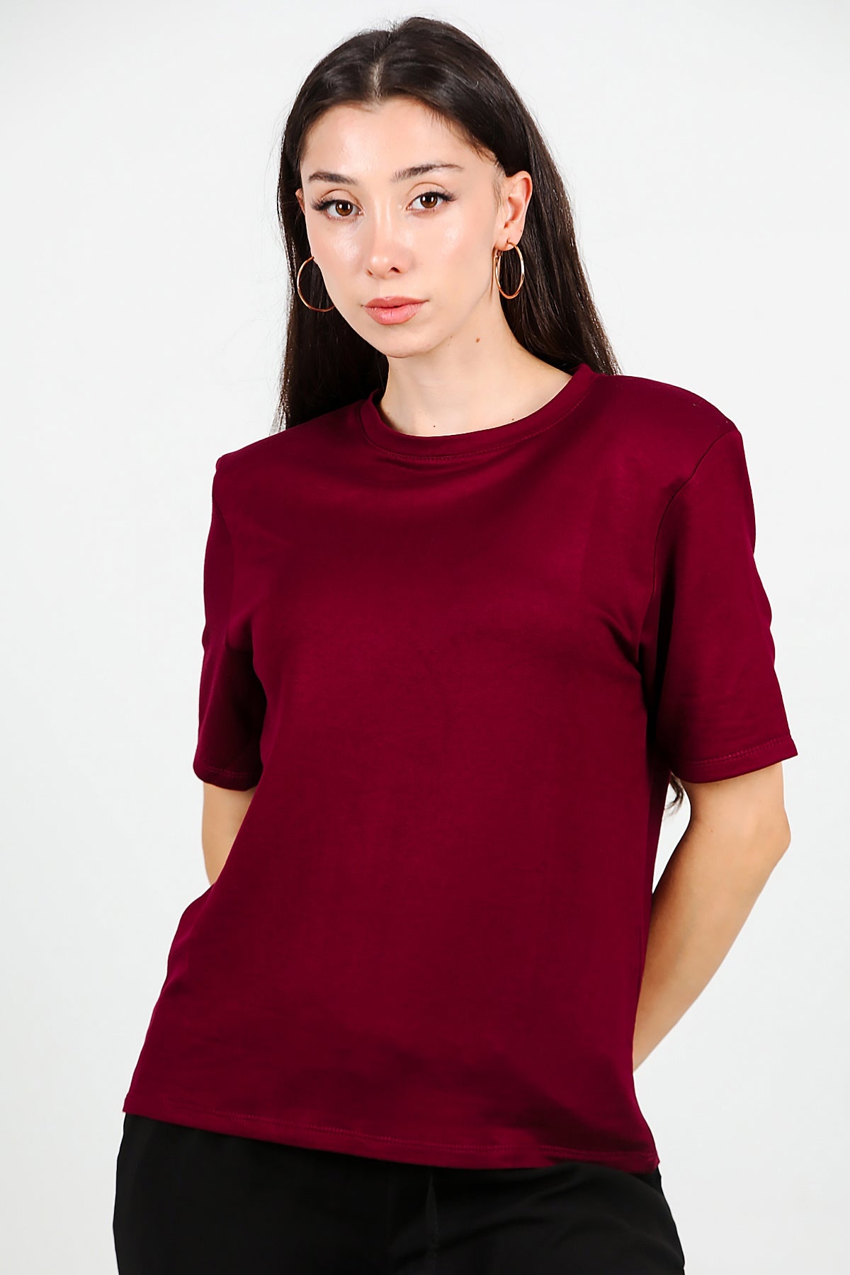 Kadın Bisiklet Yaka Vatkalı Tshırt Bordo