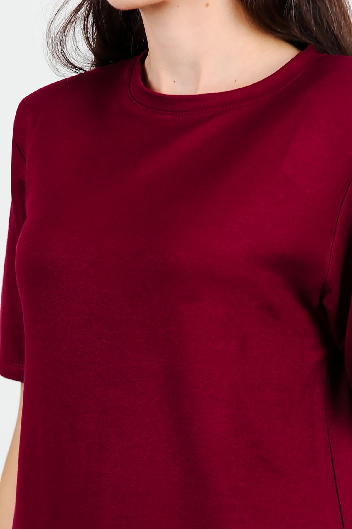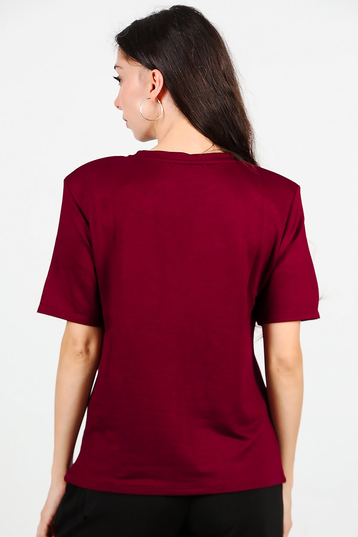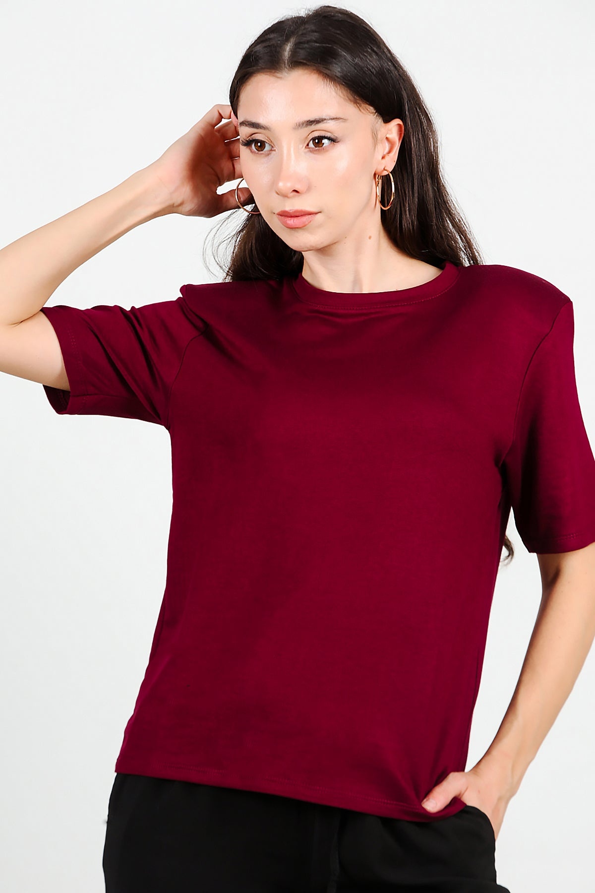 Kadın Bisiklet Yaka Vatkalı Tshırt Bordo