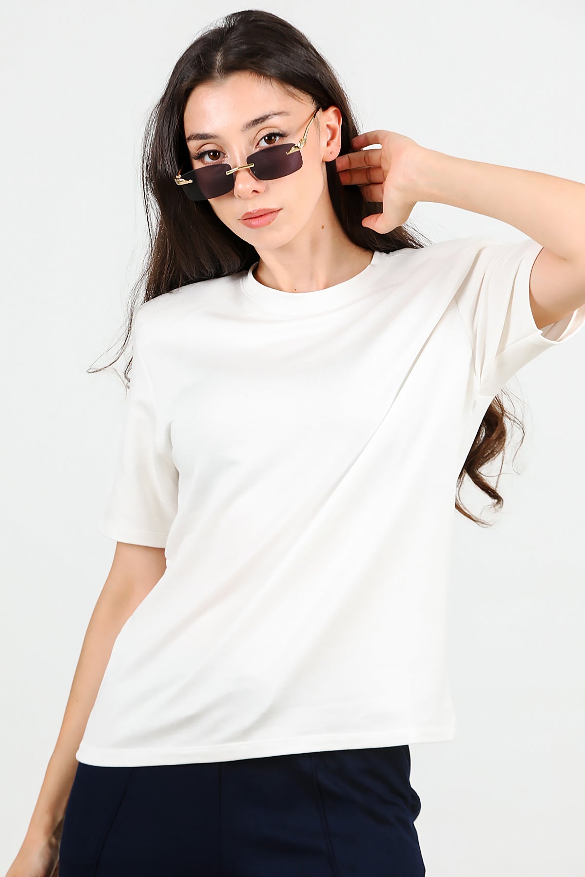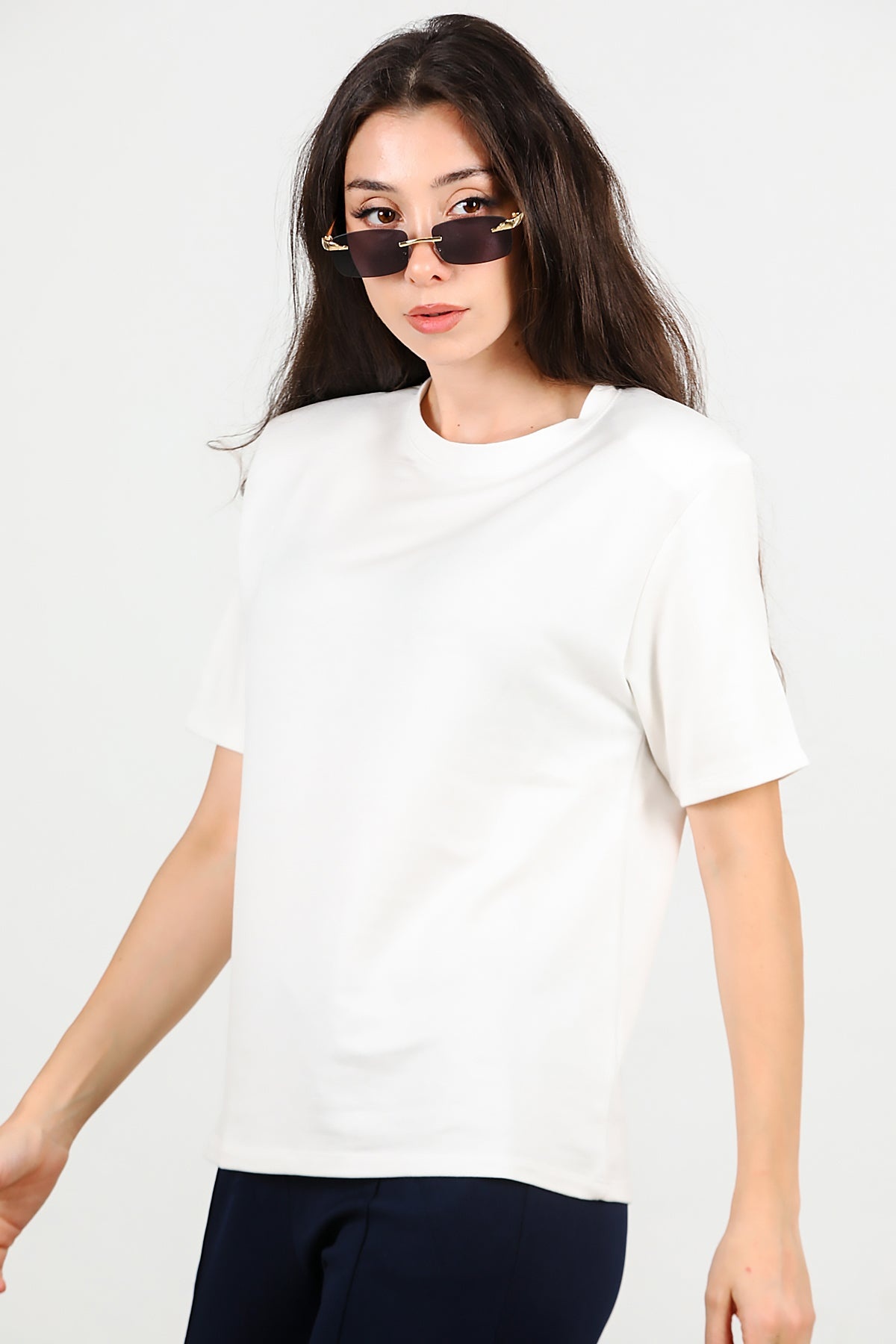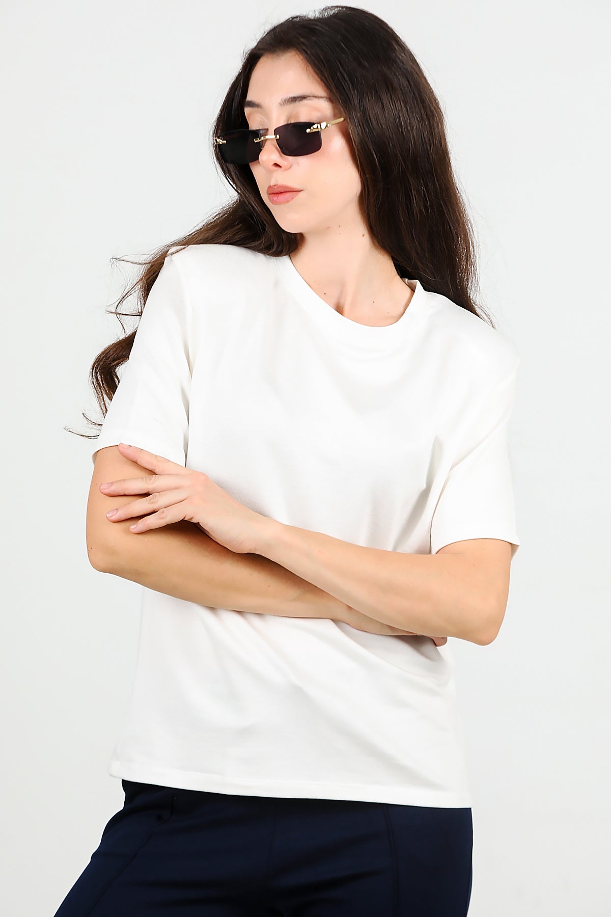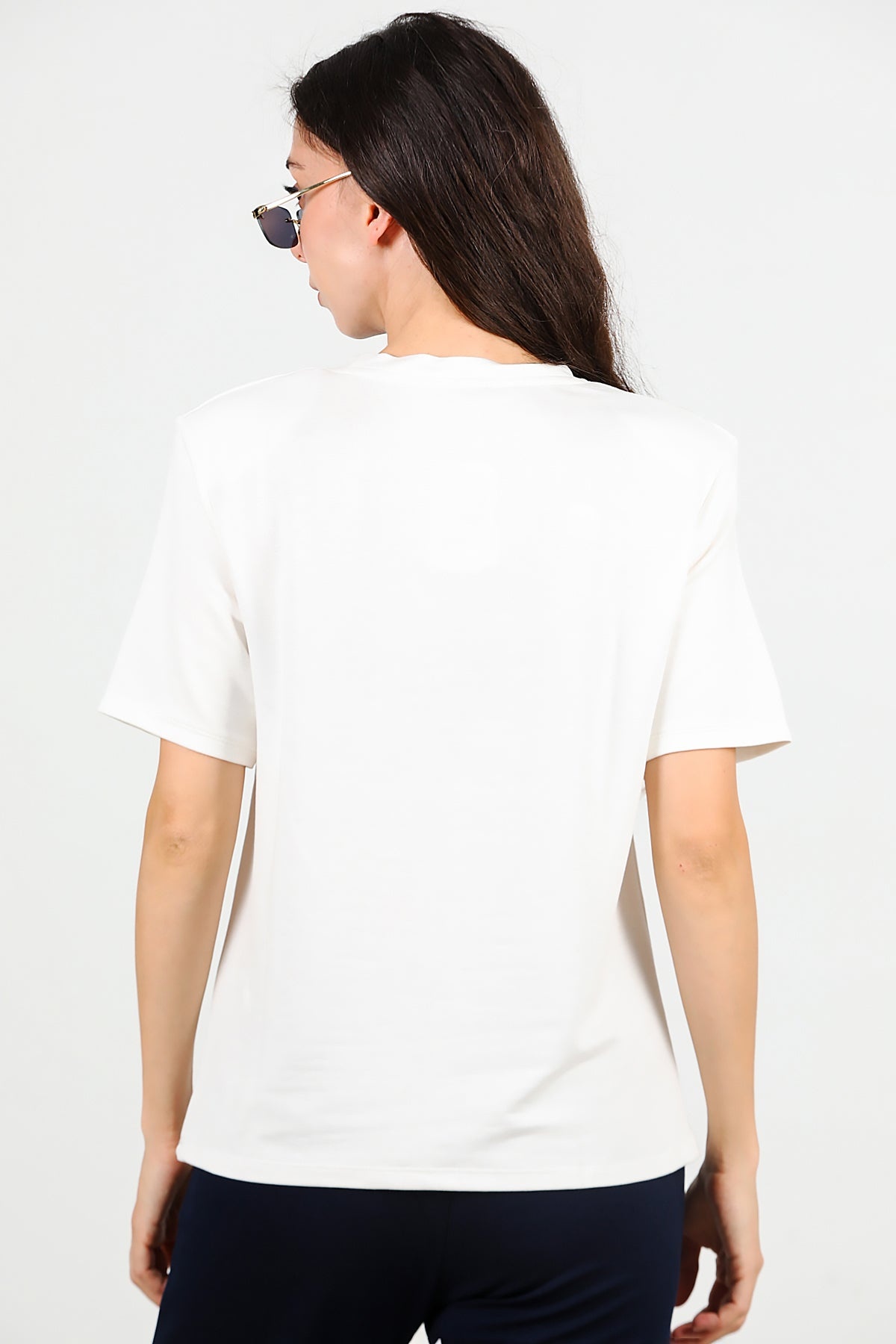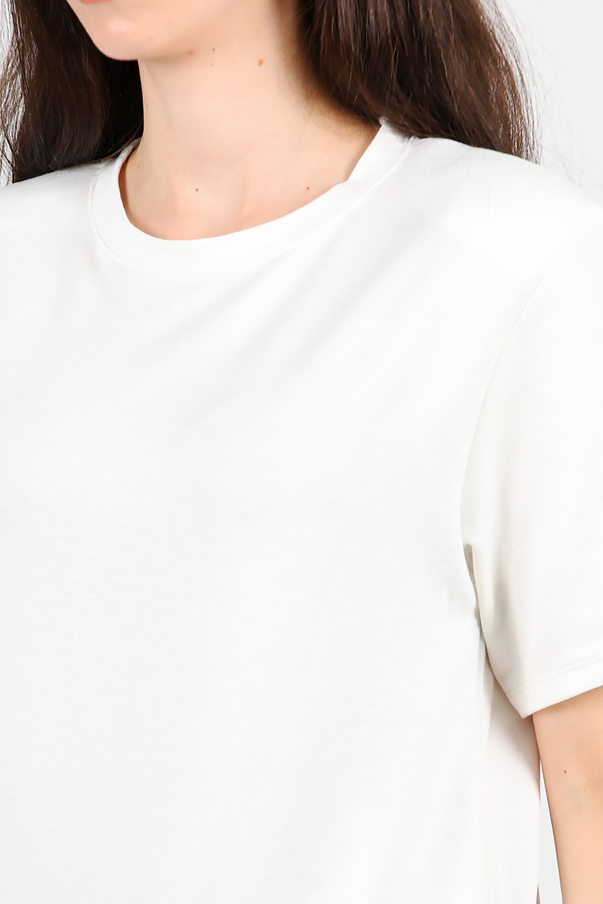 Kadın Bisiklet Yaka Vatkalı Tshırt Ekru