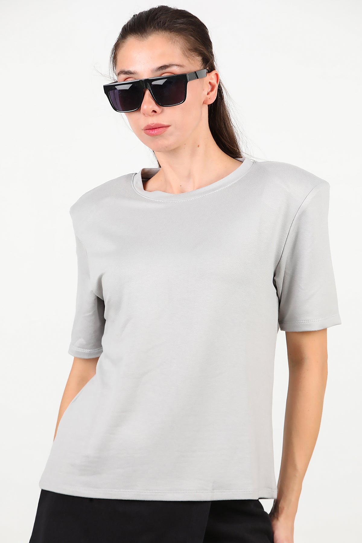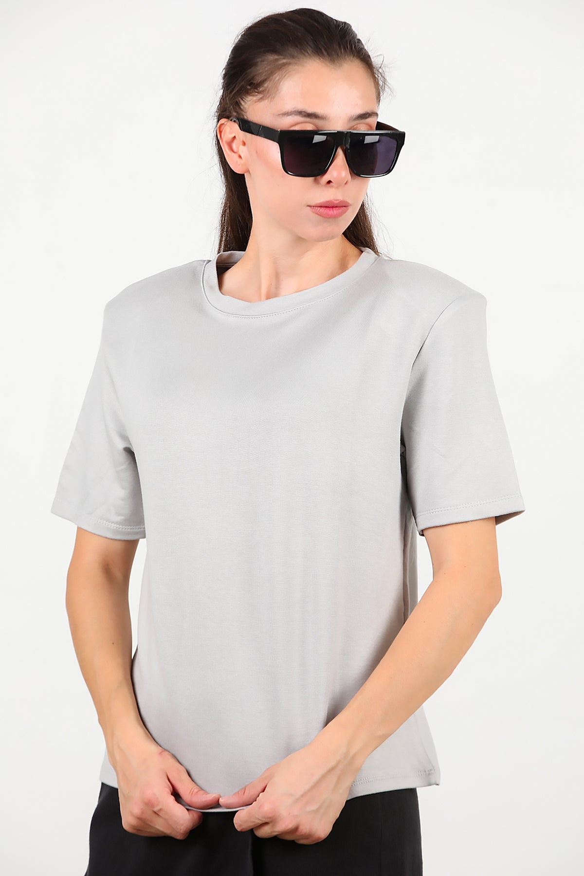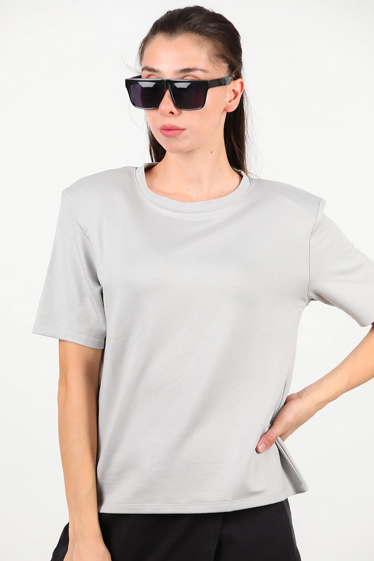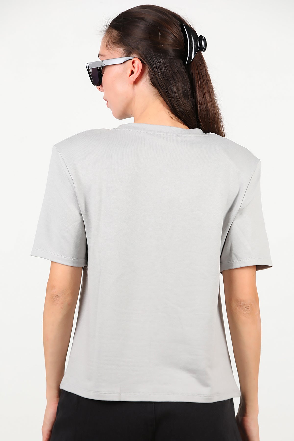 Kadın Bisiklet Yaka Vatkalı Tshırt Gri