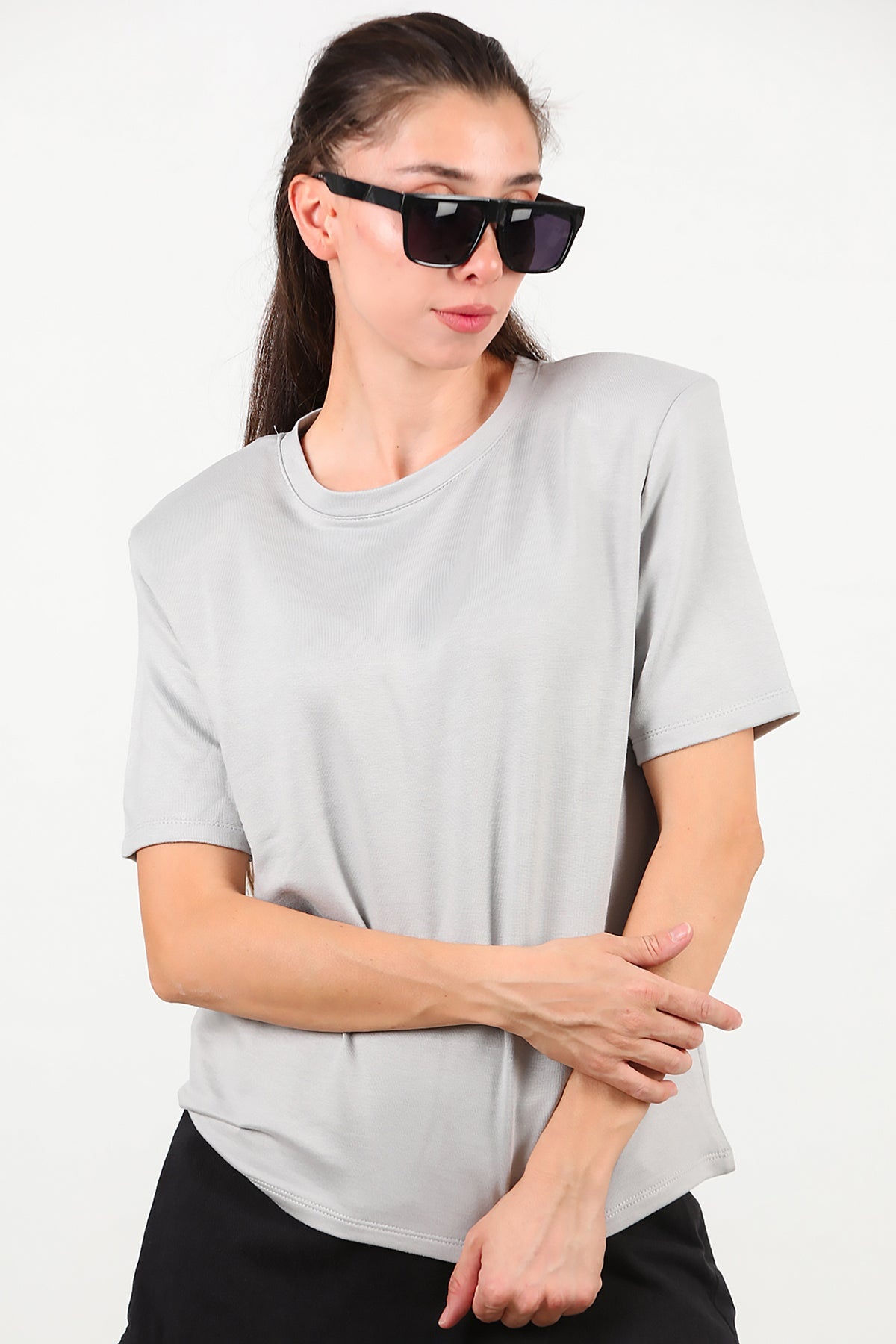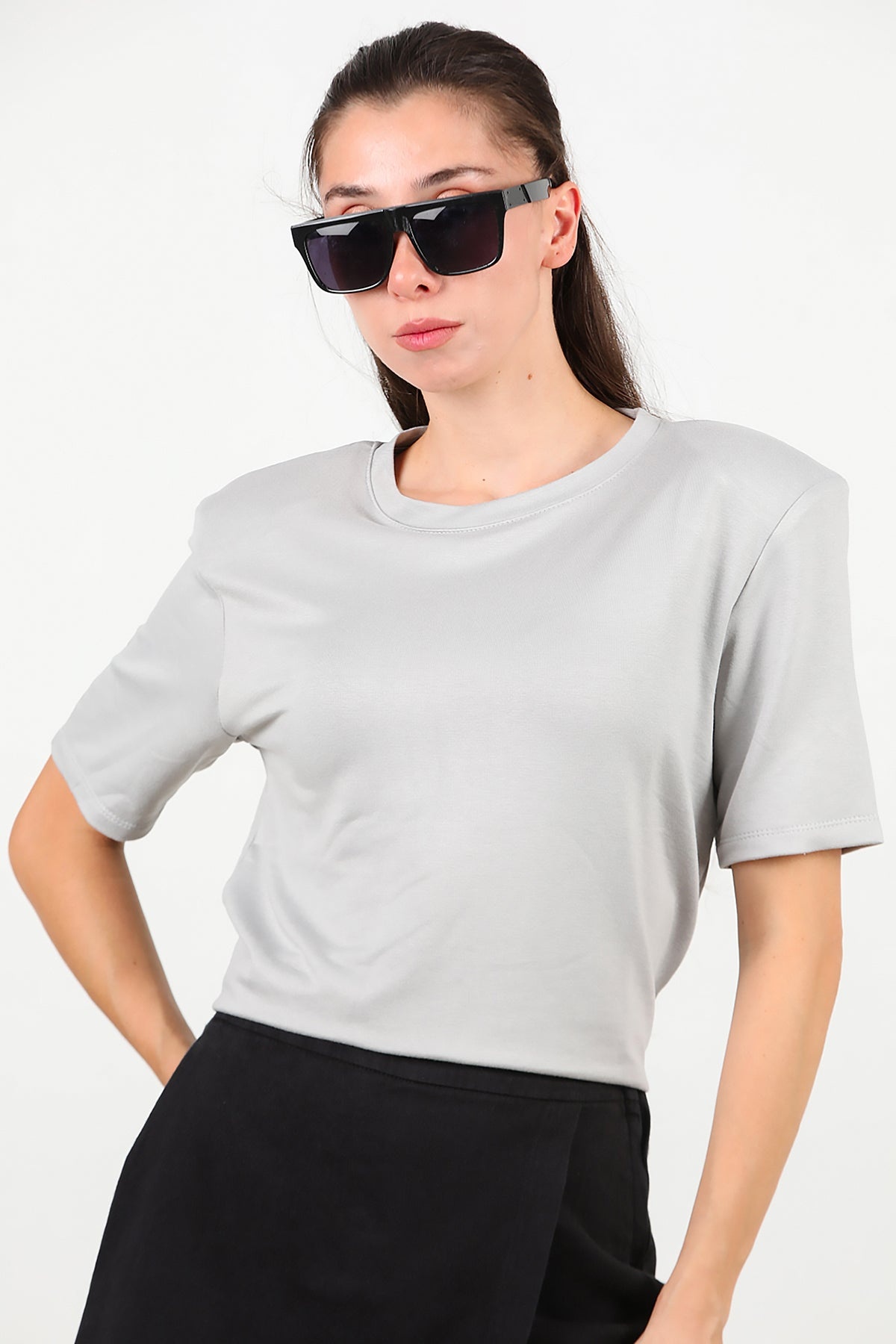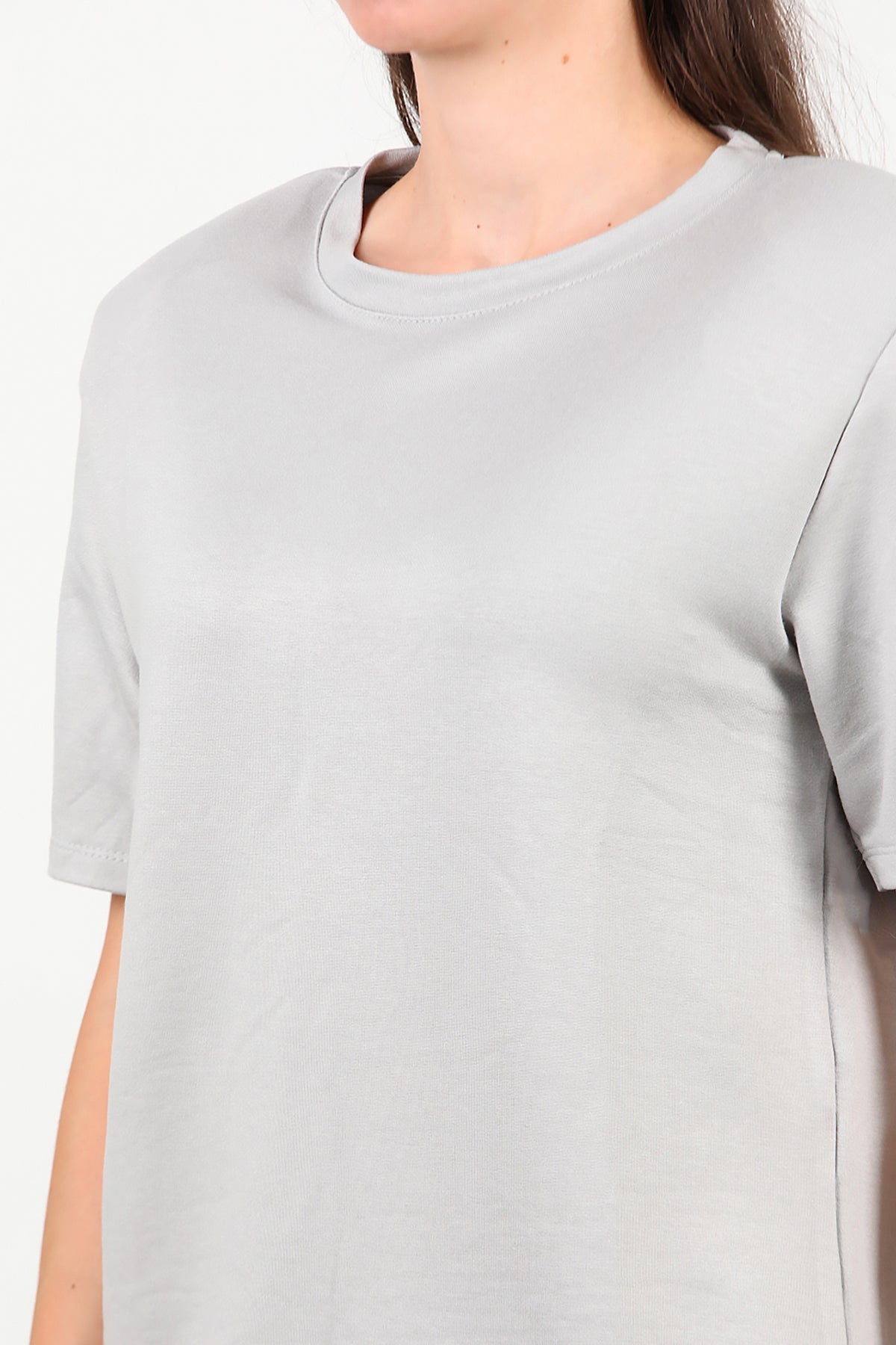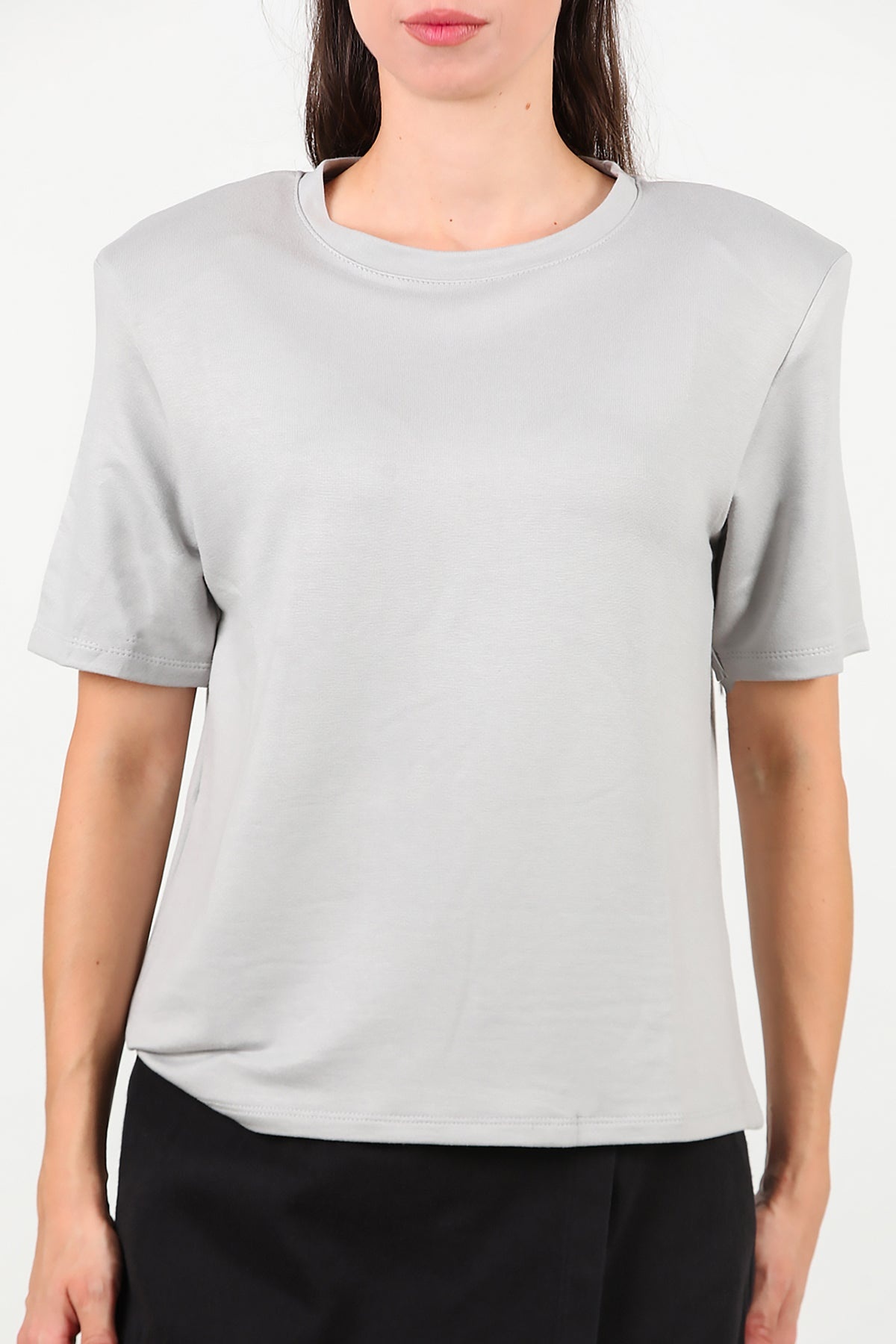 Kadın Bisiklet Yaka Vatkalı Tshırt Gri