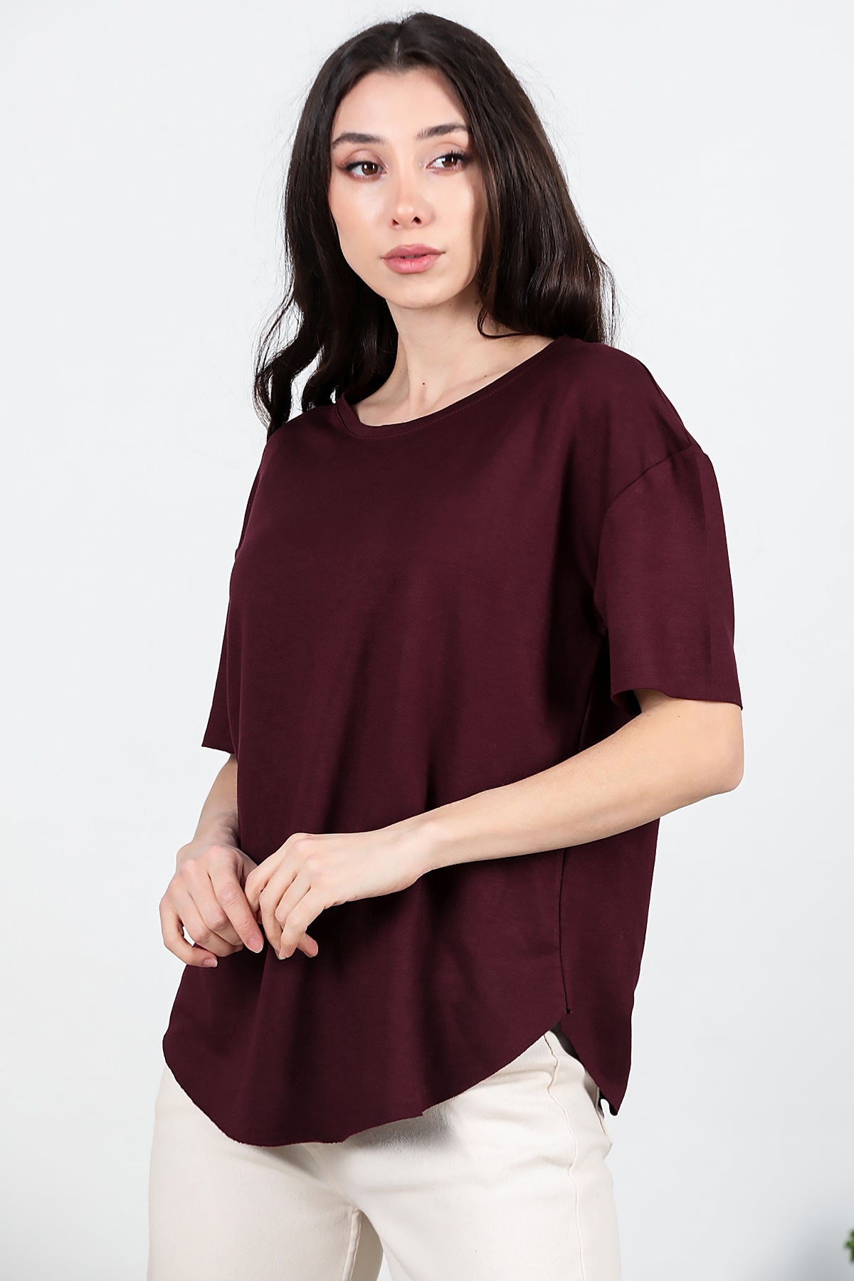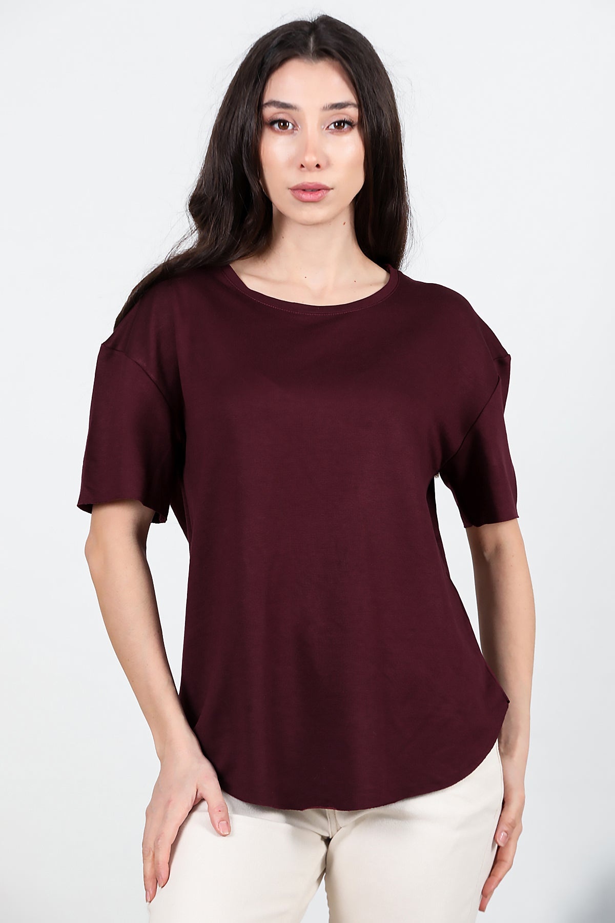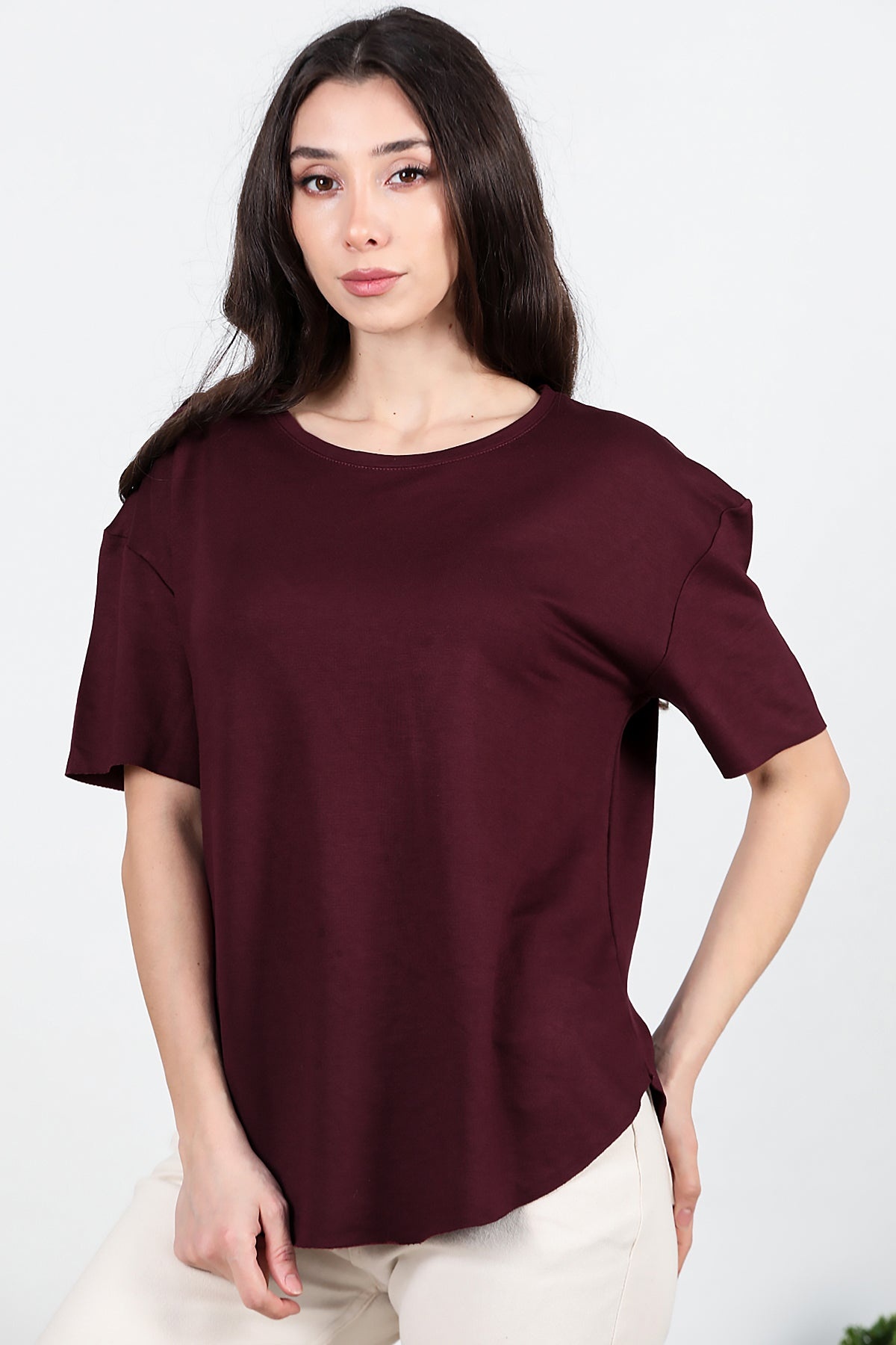 Kadın Eteği Oval Bisiklet Yaka Tshırt Bordo