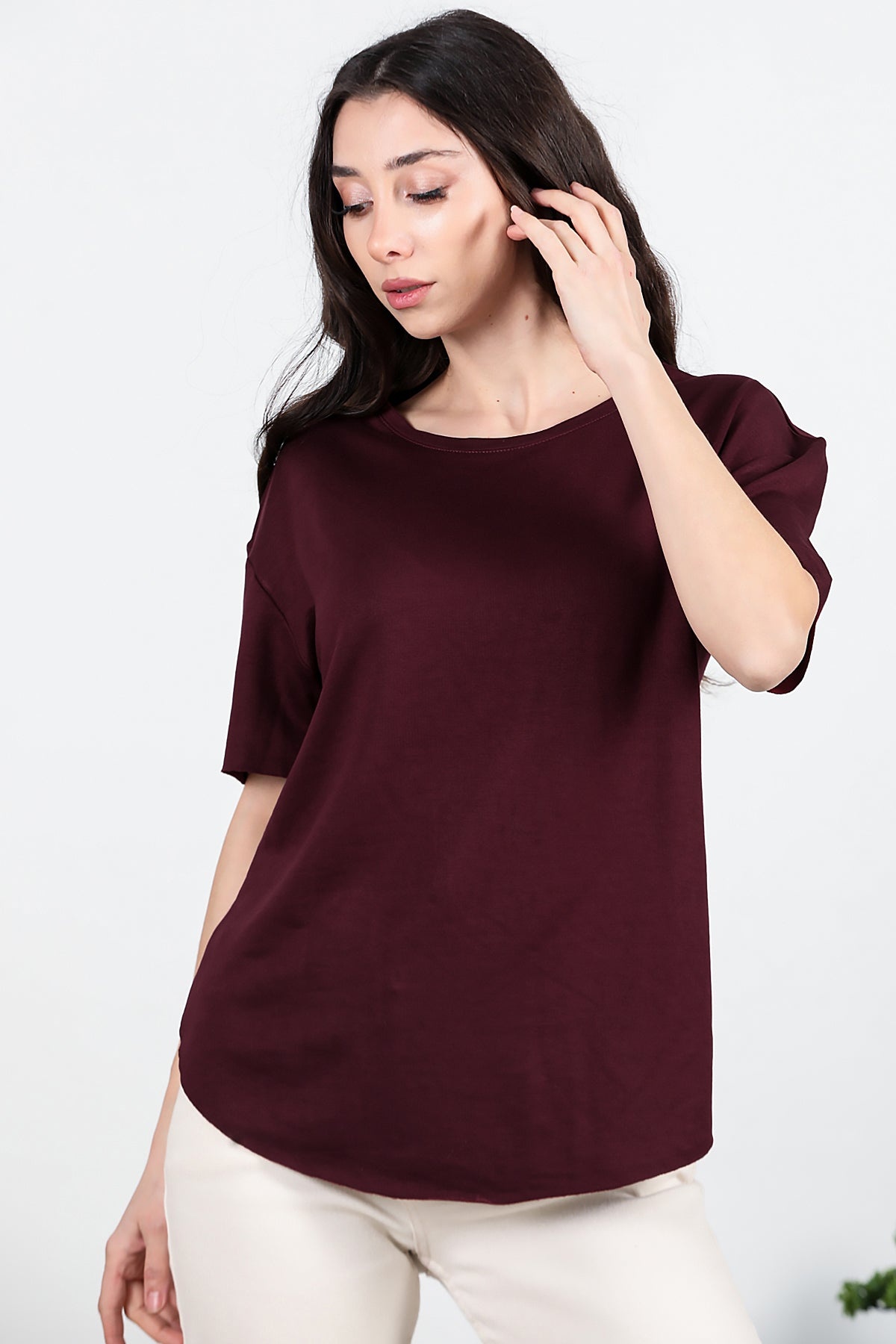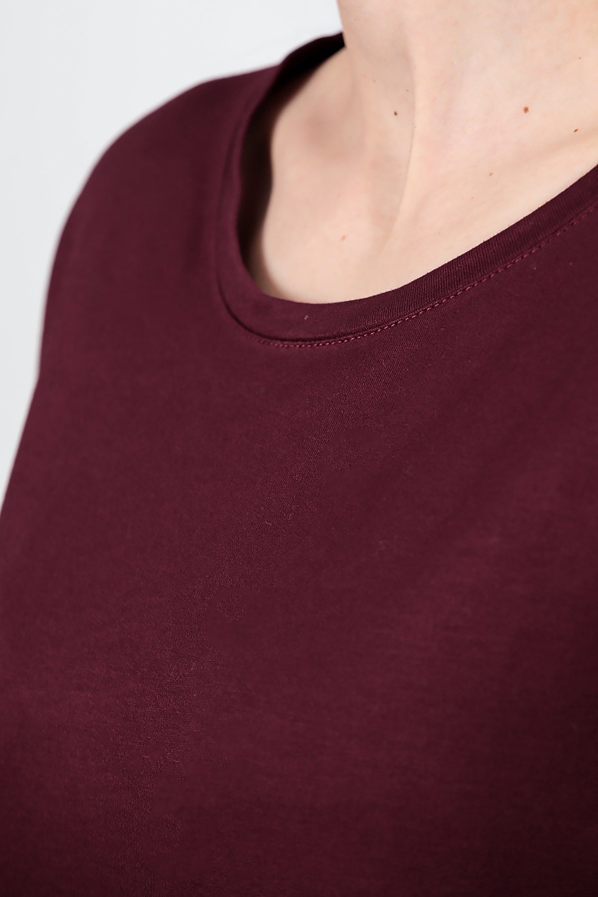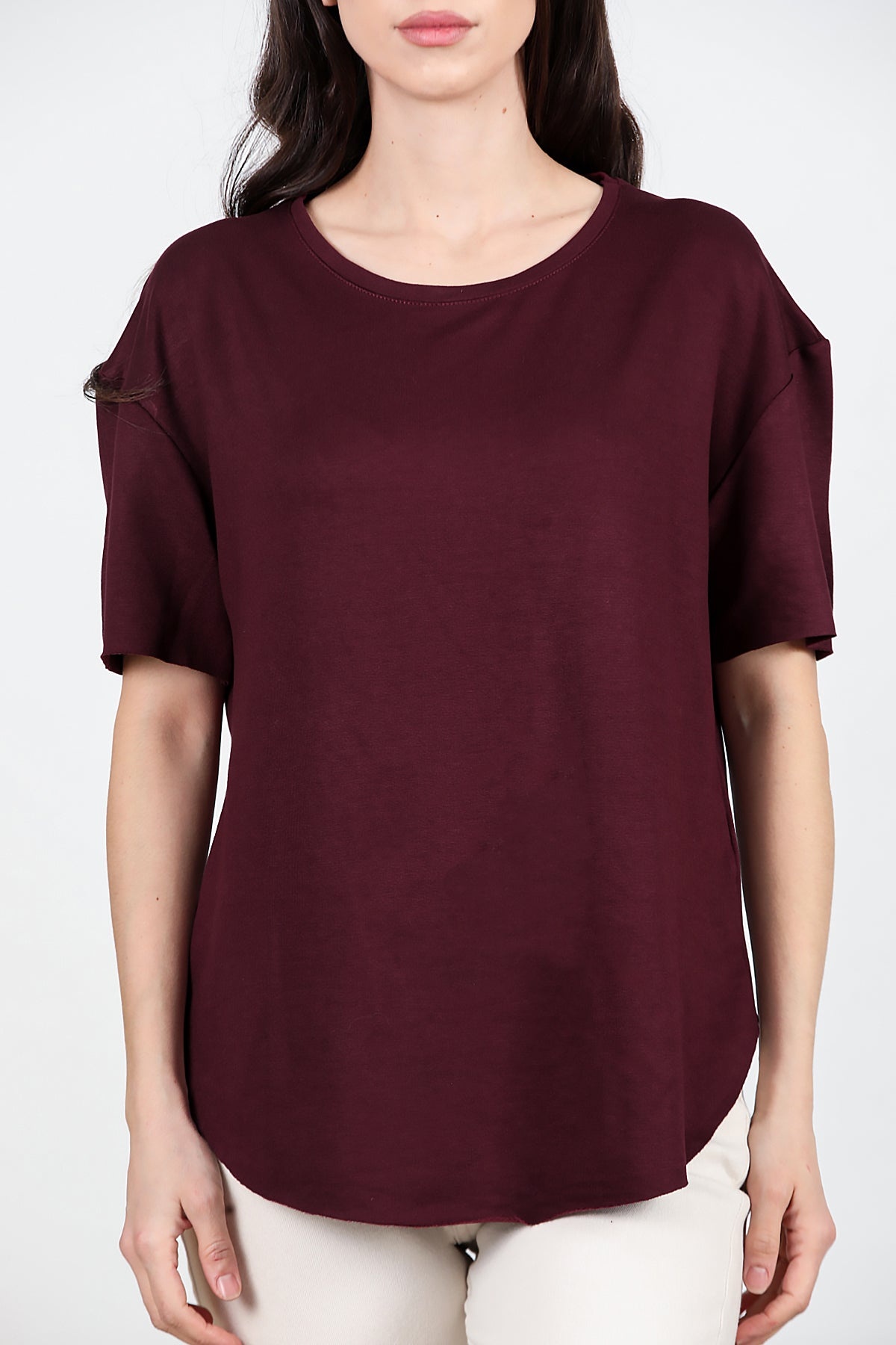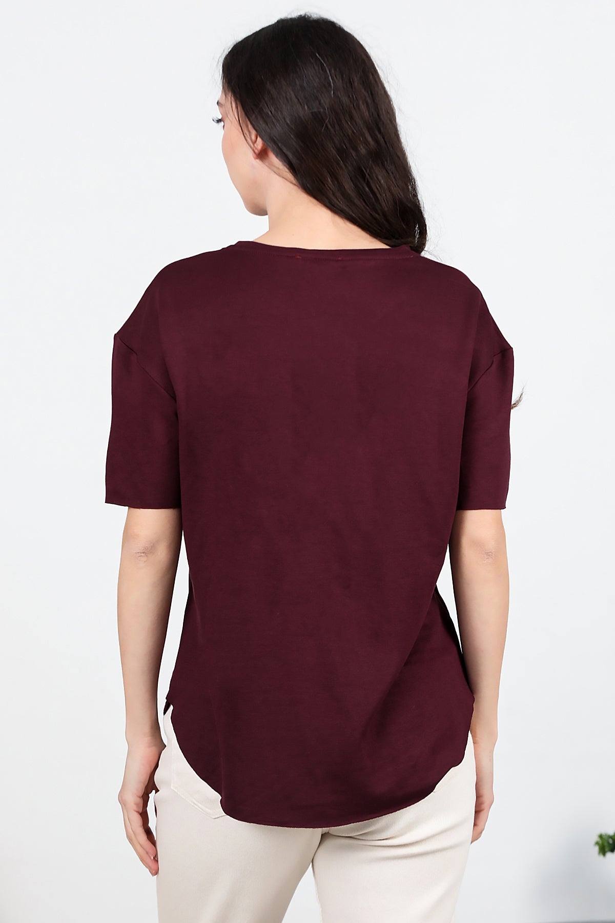 Kadın Eteği Oval Bisiklet Yaka Tshırt Bordo