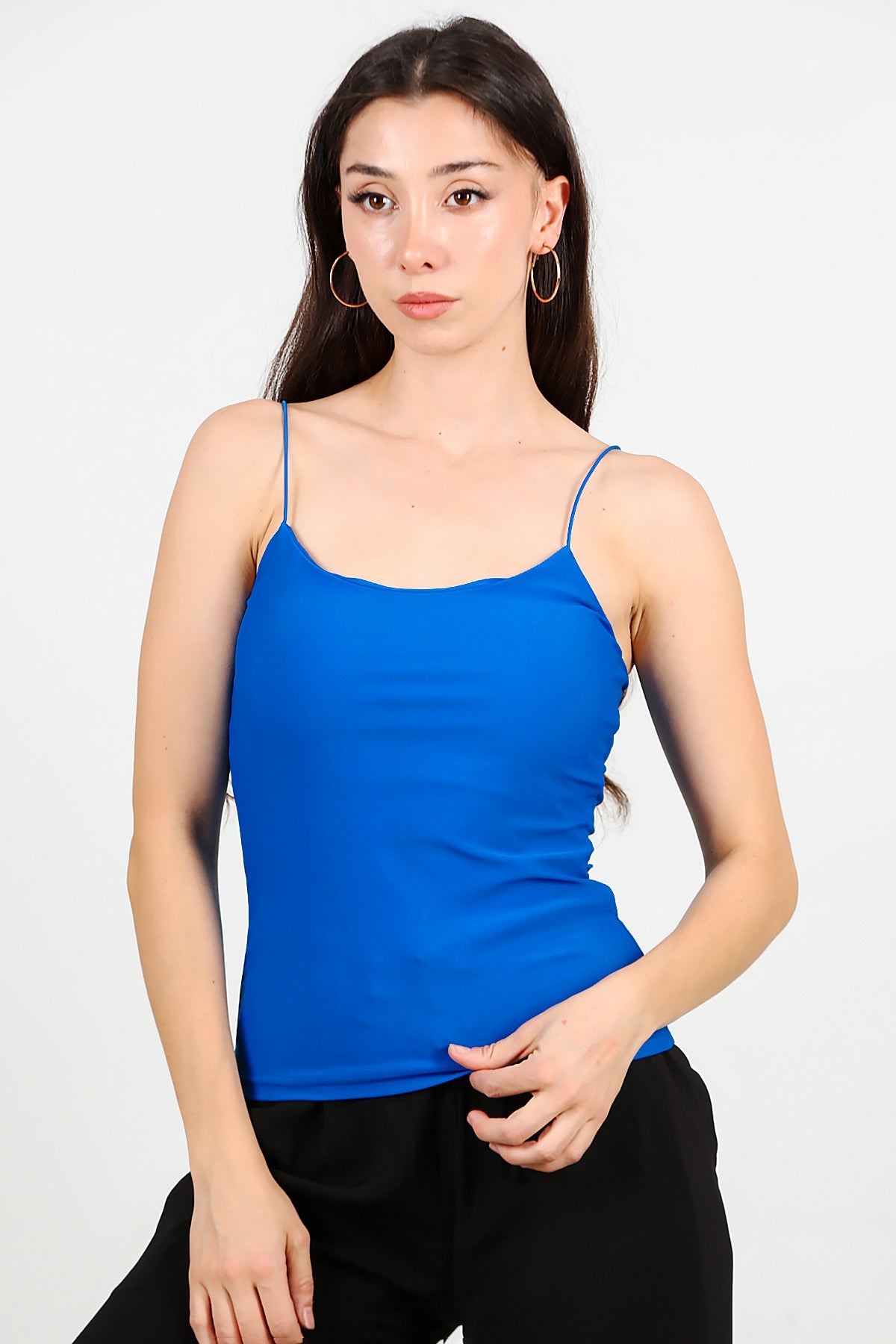 Kadın İp Askılı Bluz Saks Saks