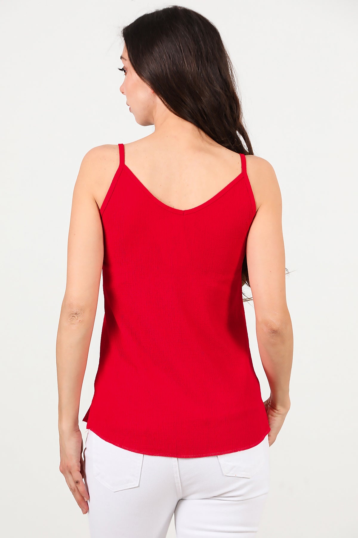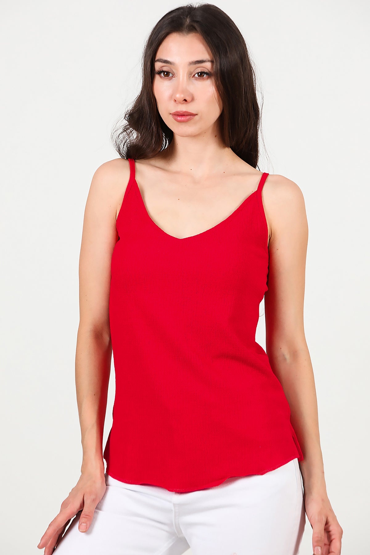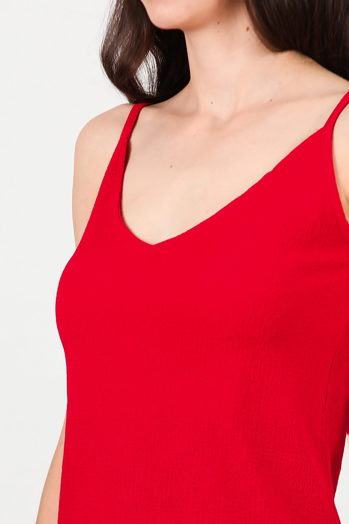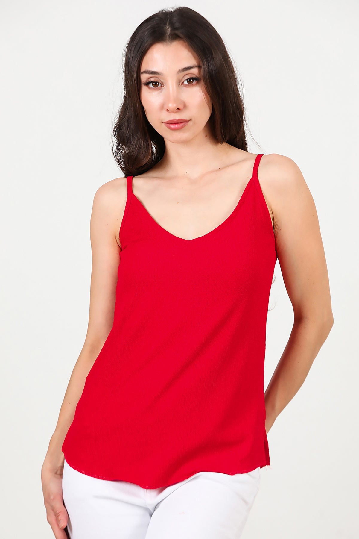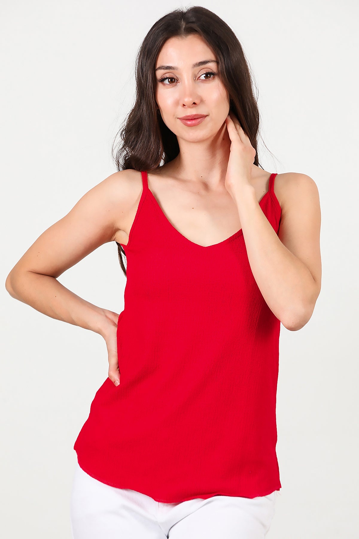 Kadın İp Askılı Krinkıl Bluz Kırmızı