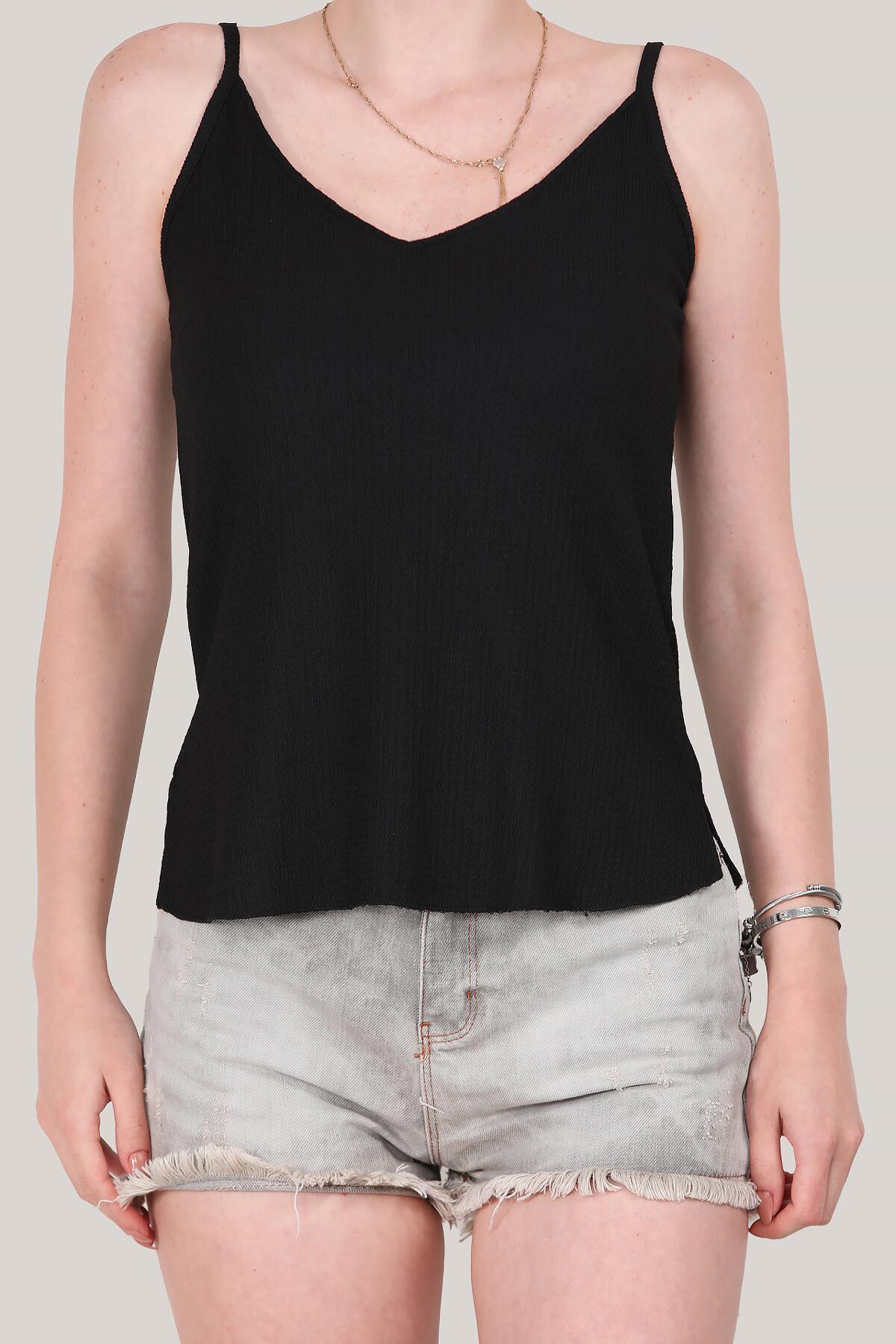 Kadın İp Askılı Krinkıl Bluz Siyah