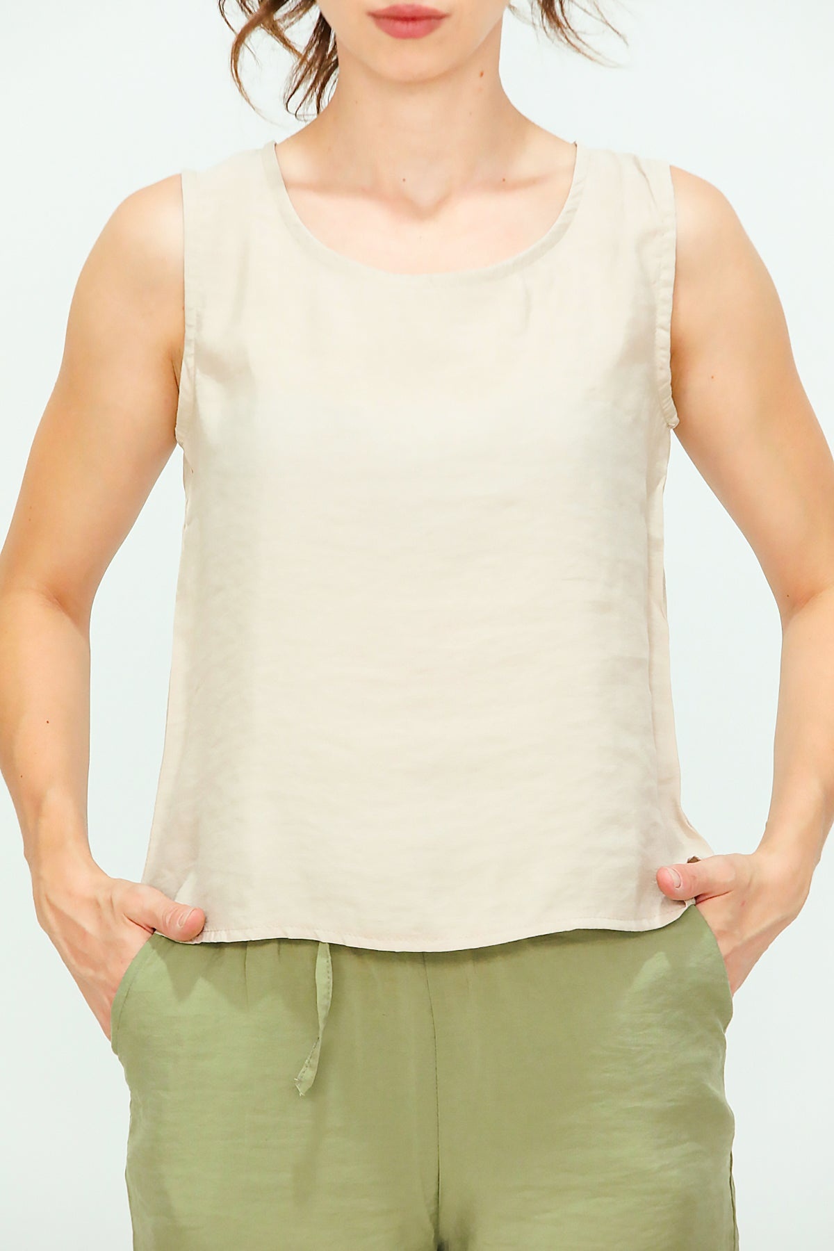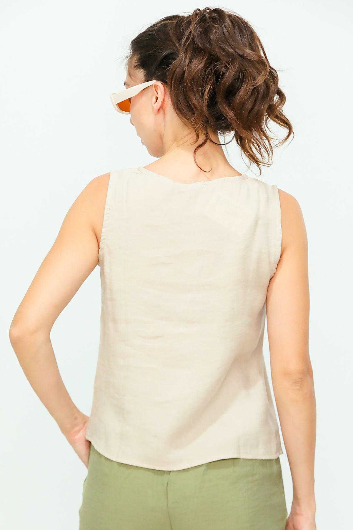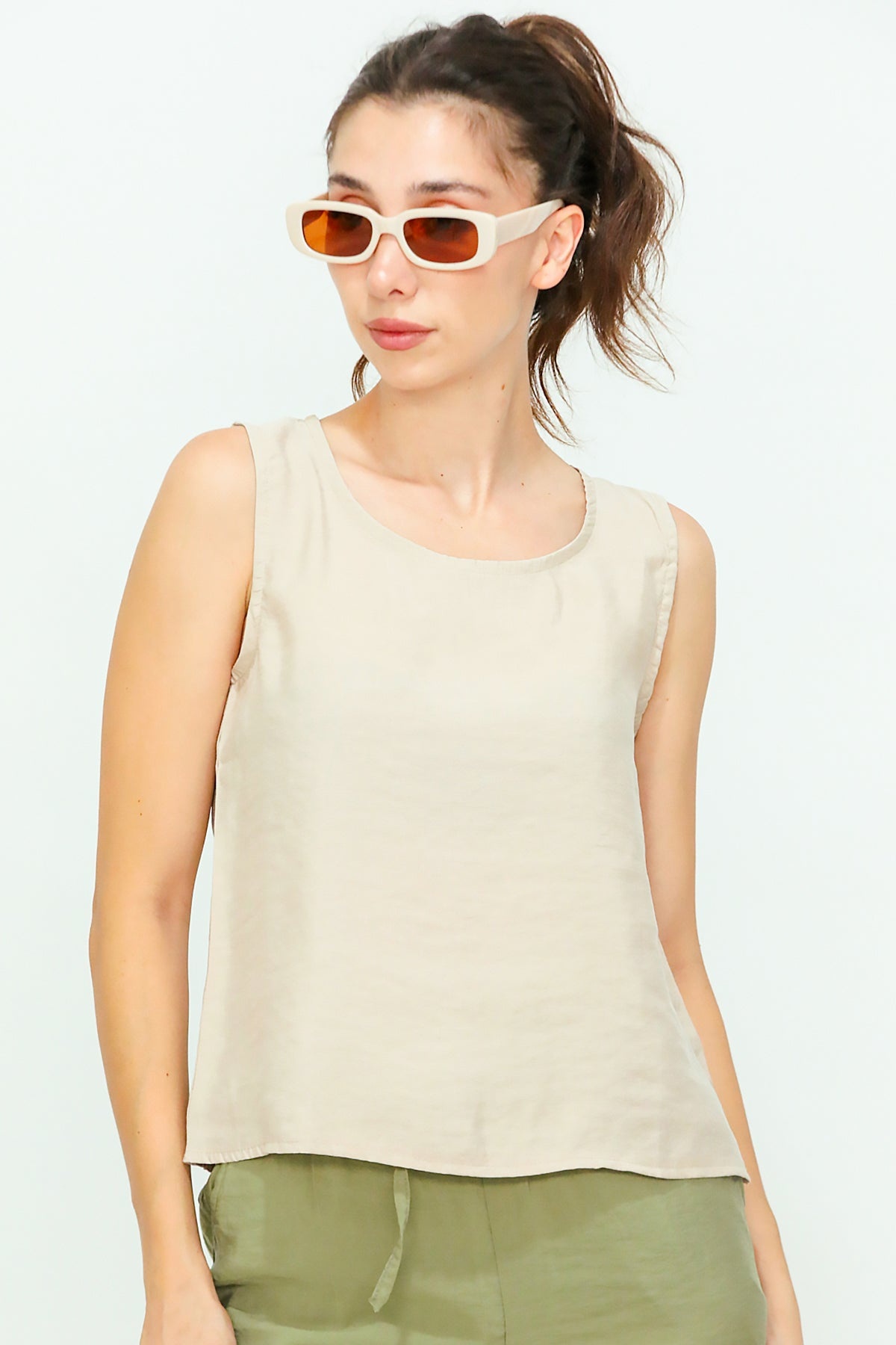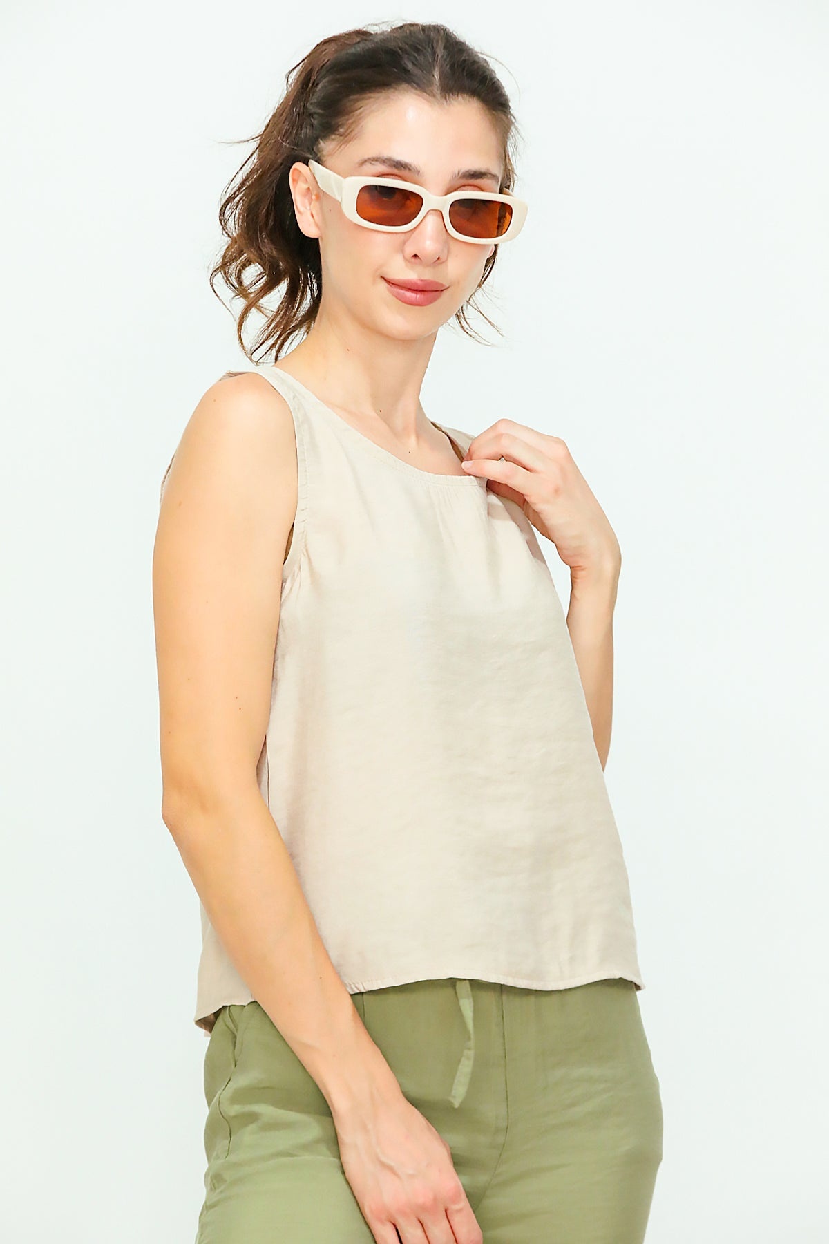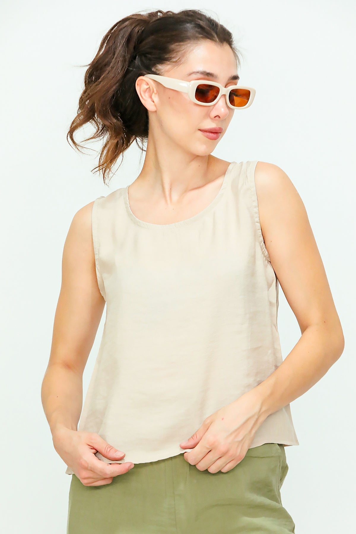 Kadın Kalın Askılı Bluz Bej
