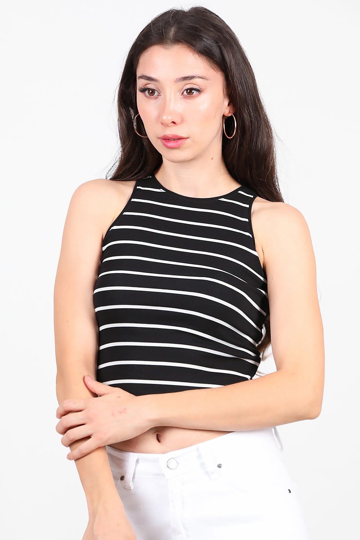 Kadın Kalın Askılı Çizgili Atlet Bady Siyah