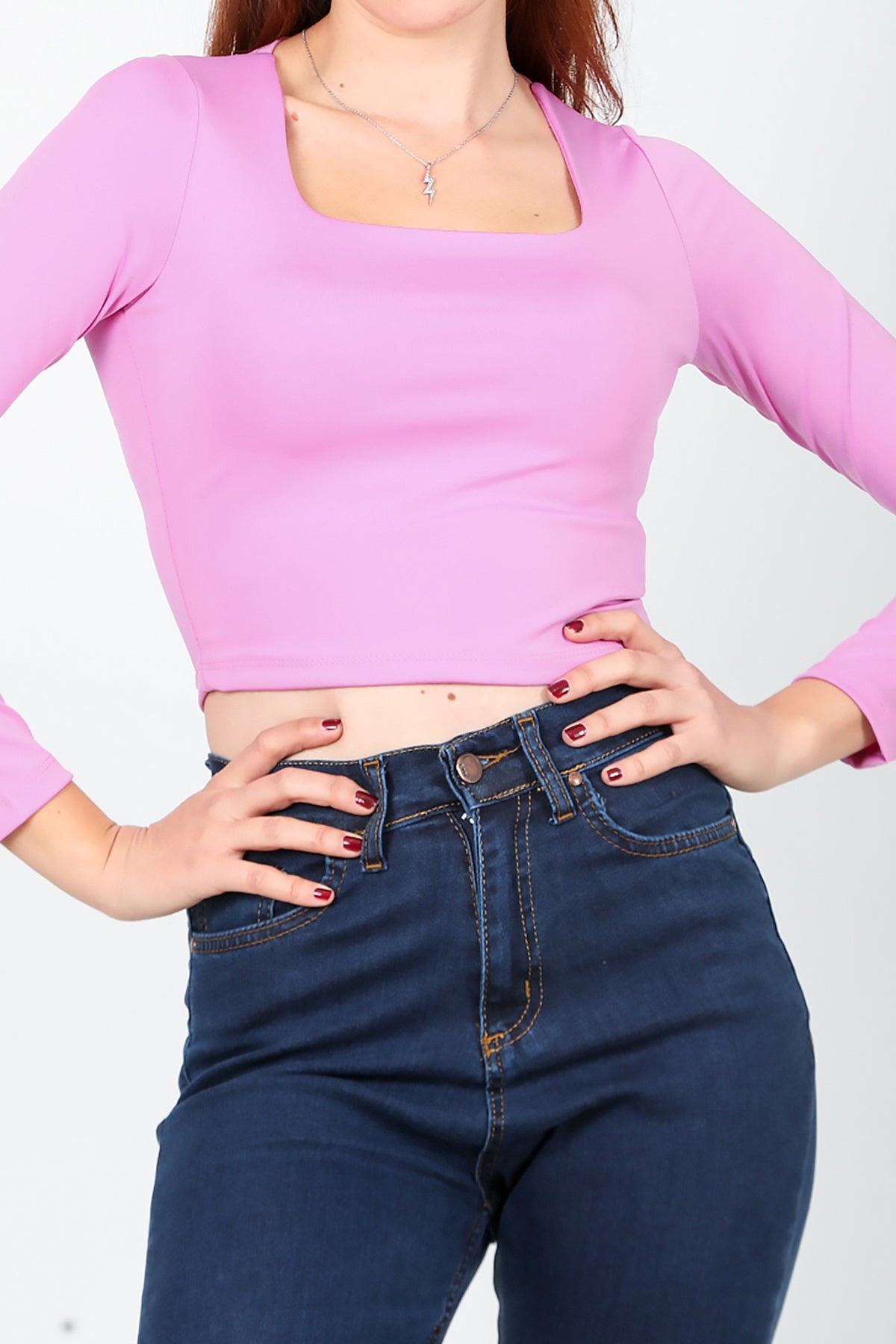 Kadın Kare Yaka Kısa Bluz Fuşya