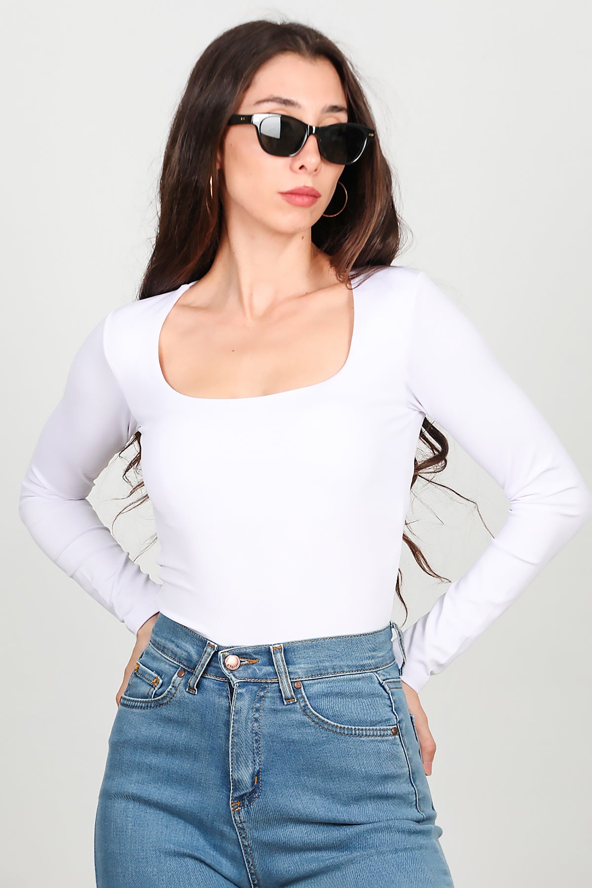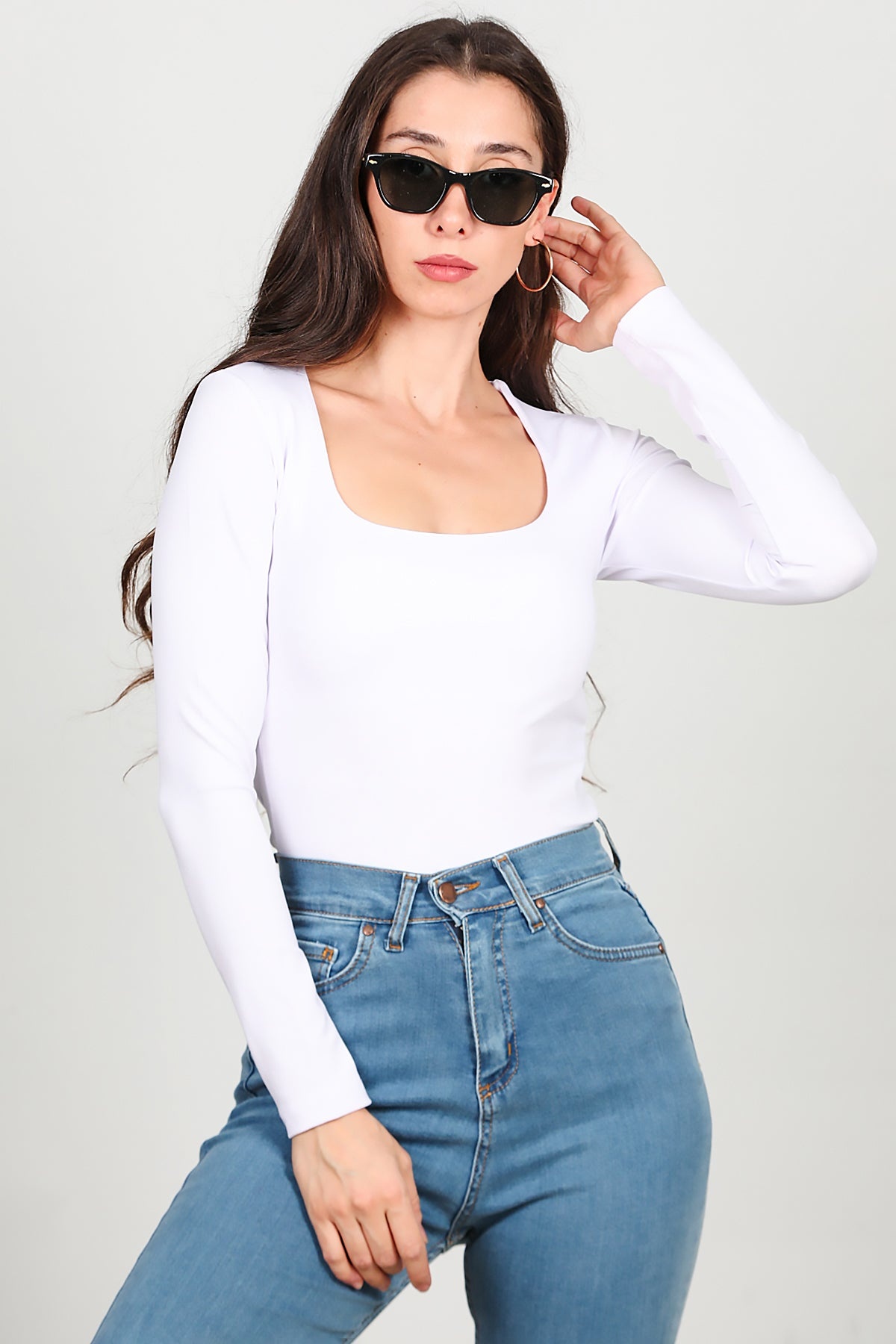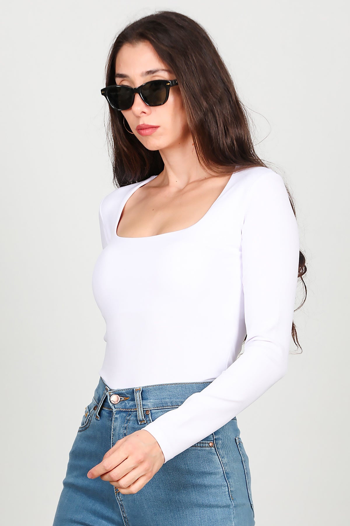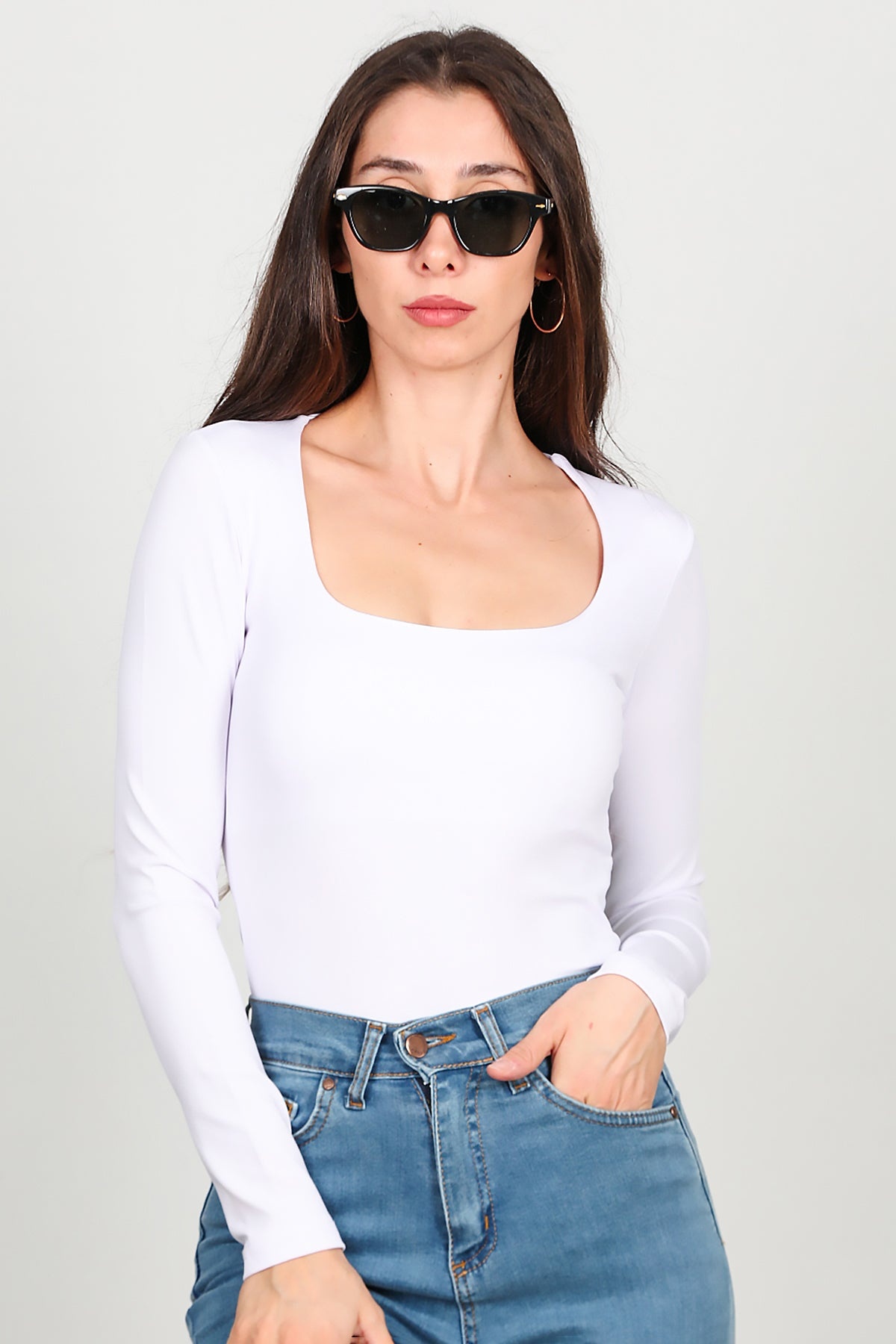 Kadın Kare Yaka Zıbınlı Bady Beyaz