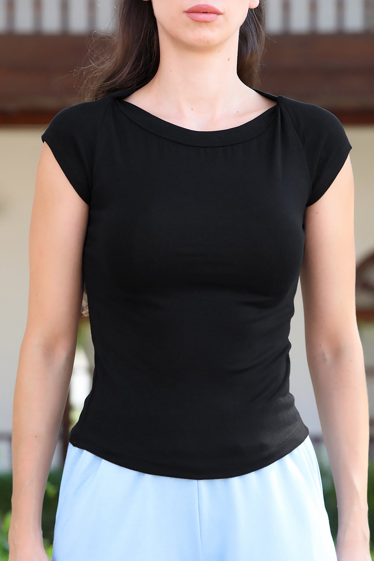 Kadın Kayık Yaka Bady Tshırt Siyah
