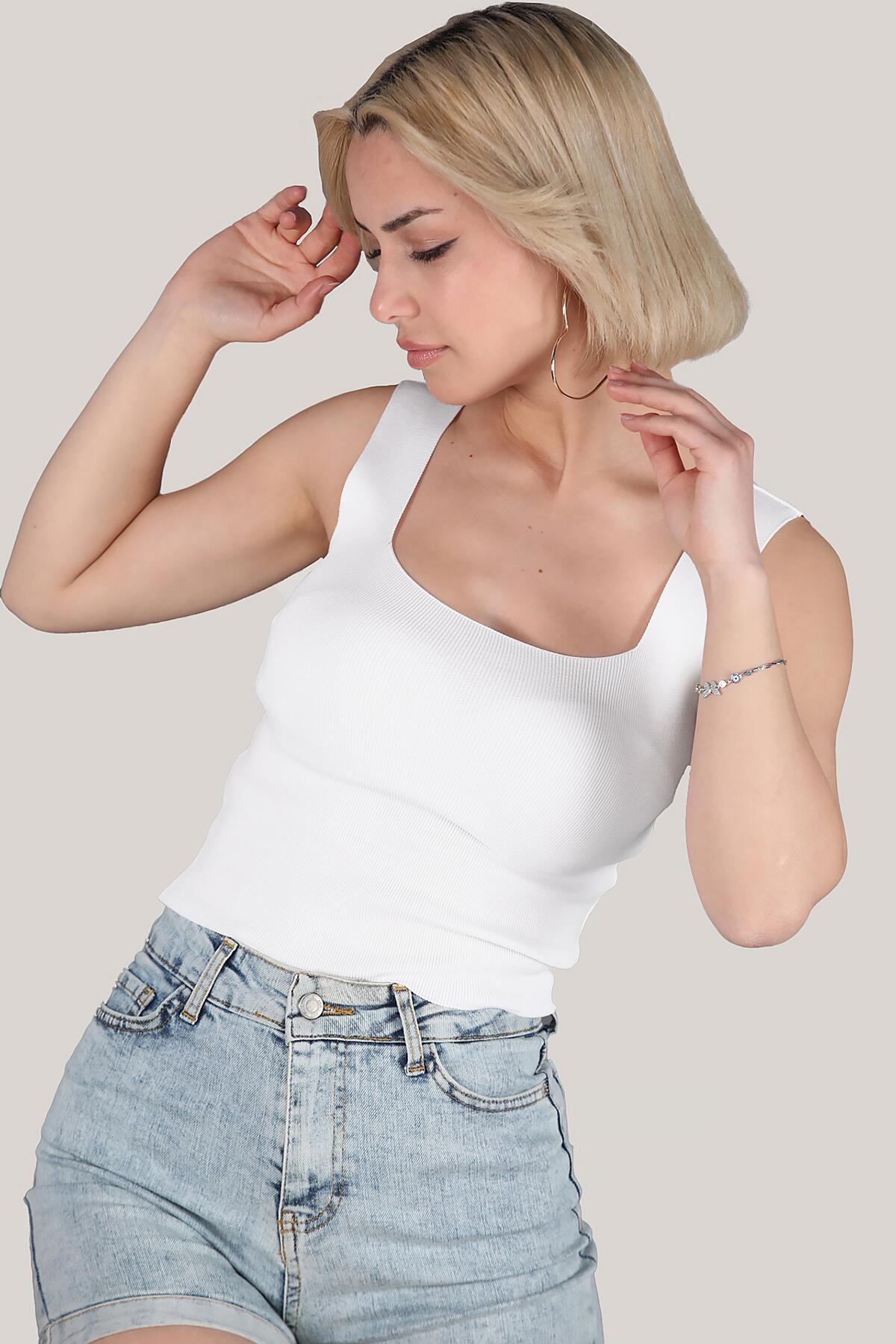 Kadın Kısa Bluz Ekru