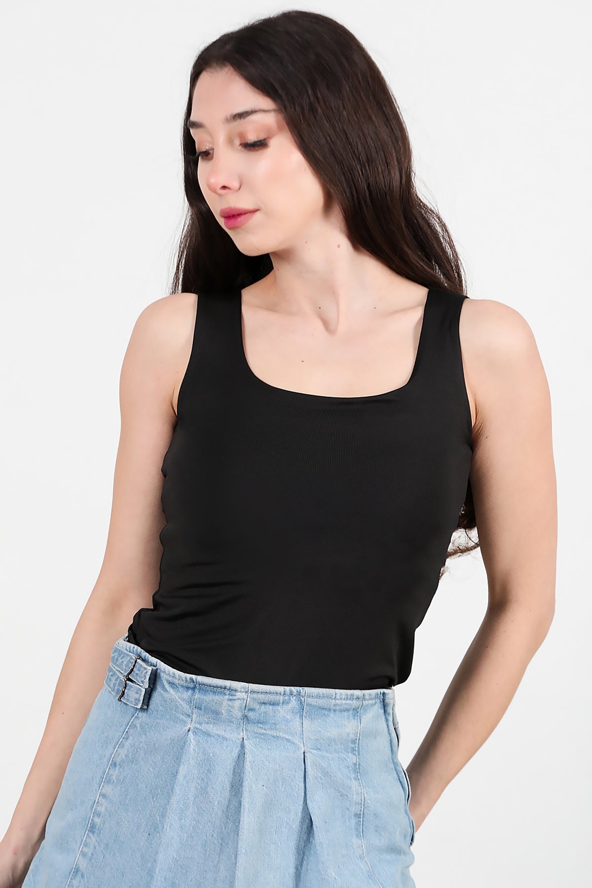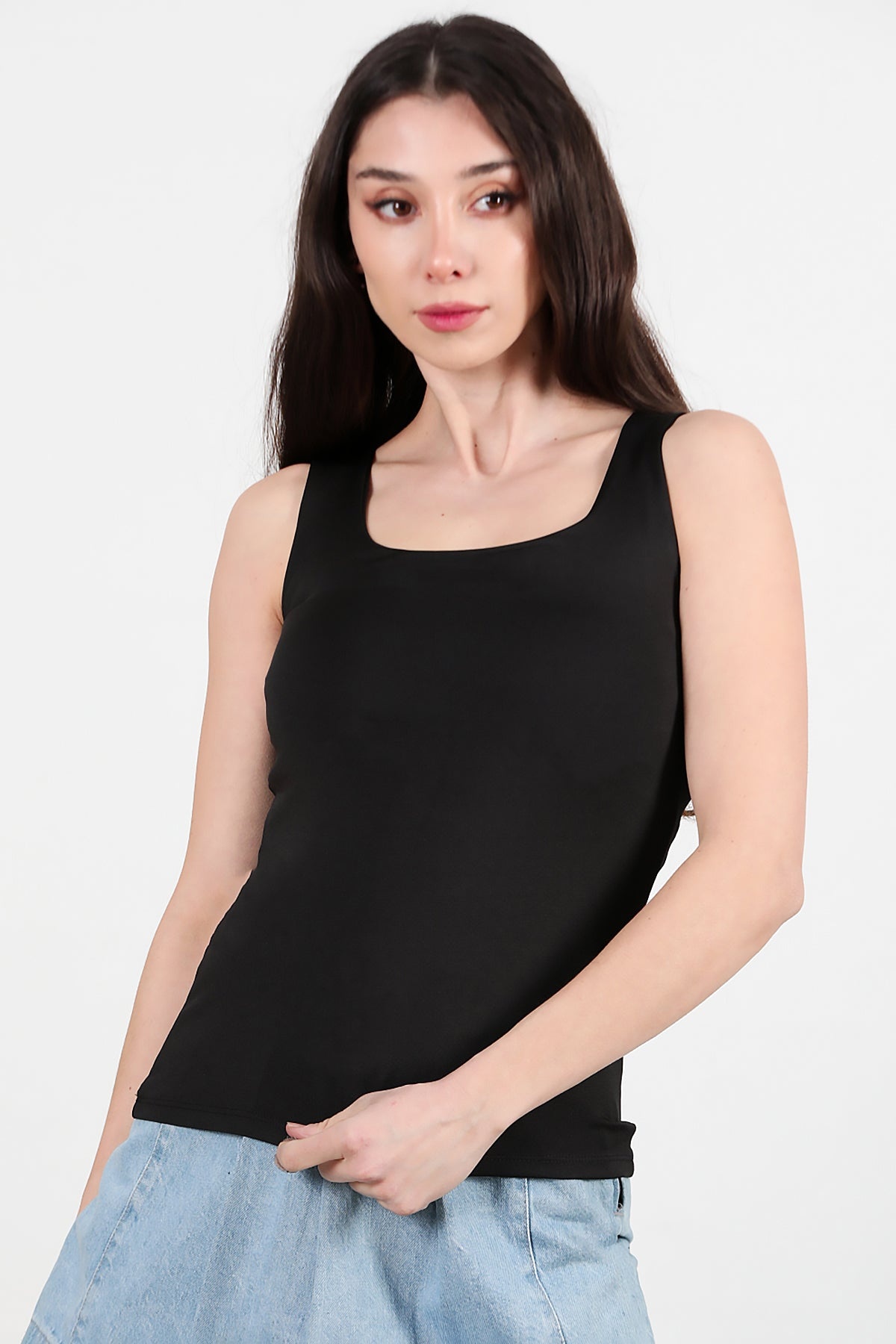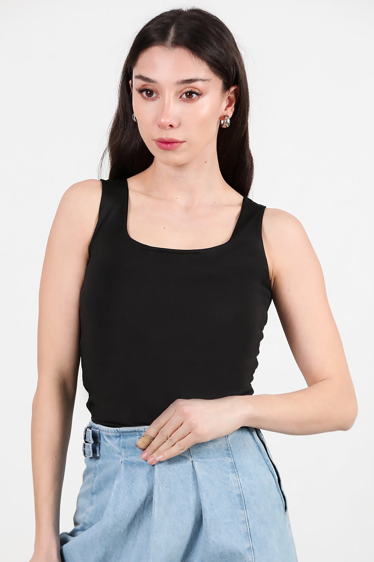 Numune Bedeni: 36Numune Boyu: 57 cmKumaş Tipi: %85 Pamuk %15 PolyesterKol: Kalın Askılı