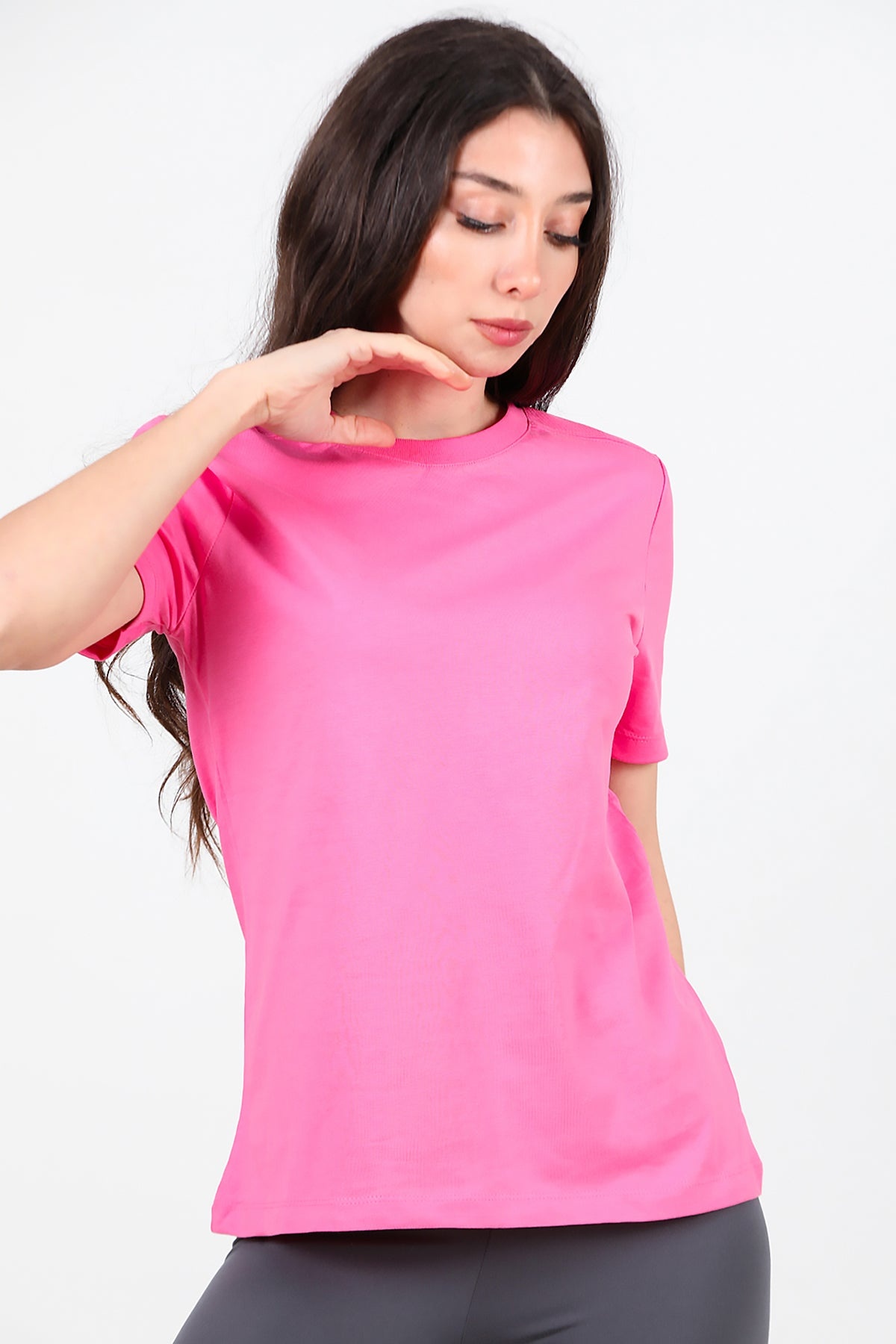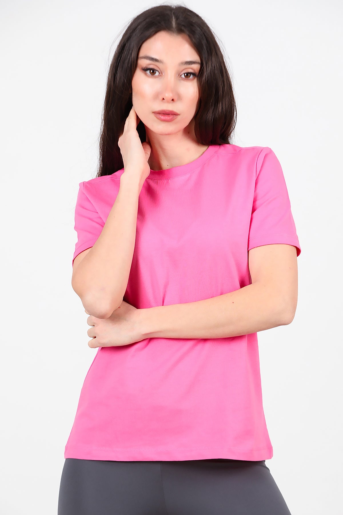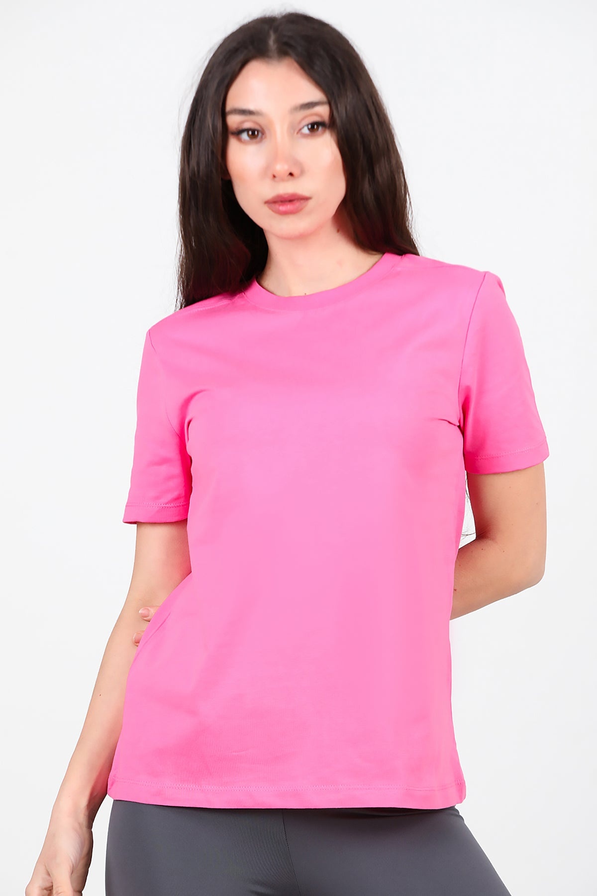 Kadın Omzu Çimalı Basıc Tshırt Pembe