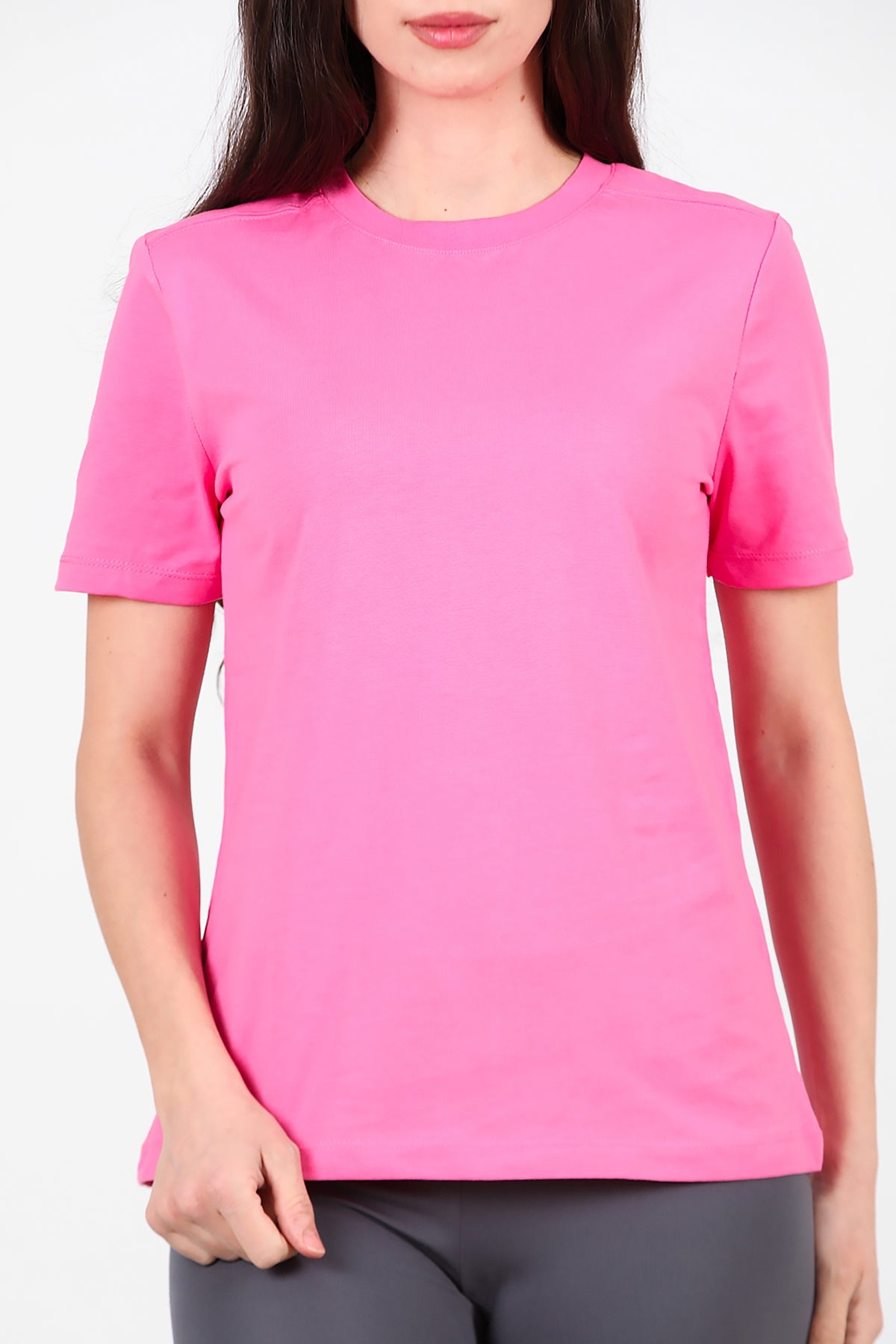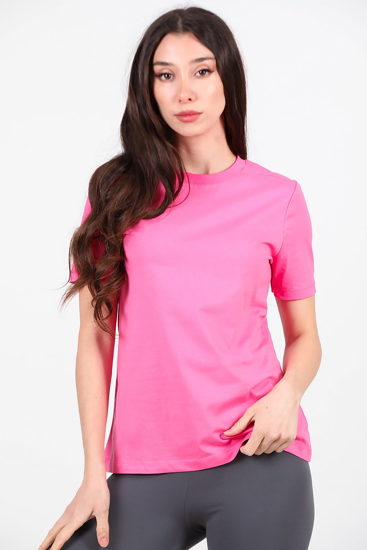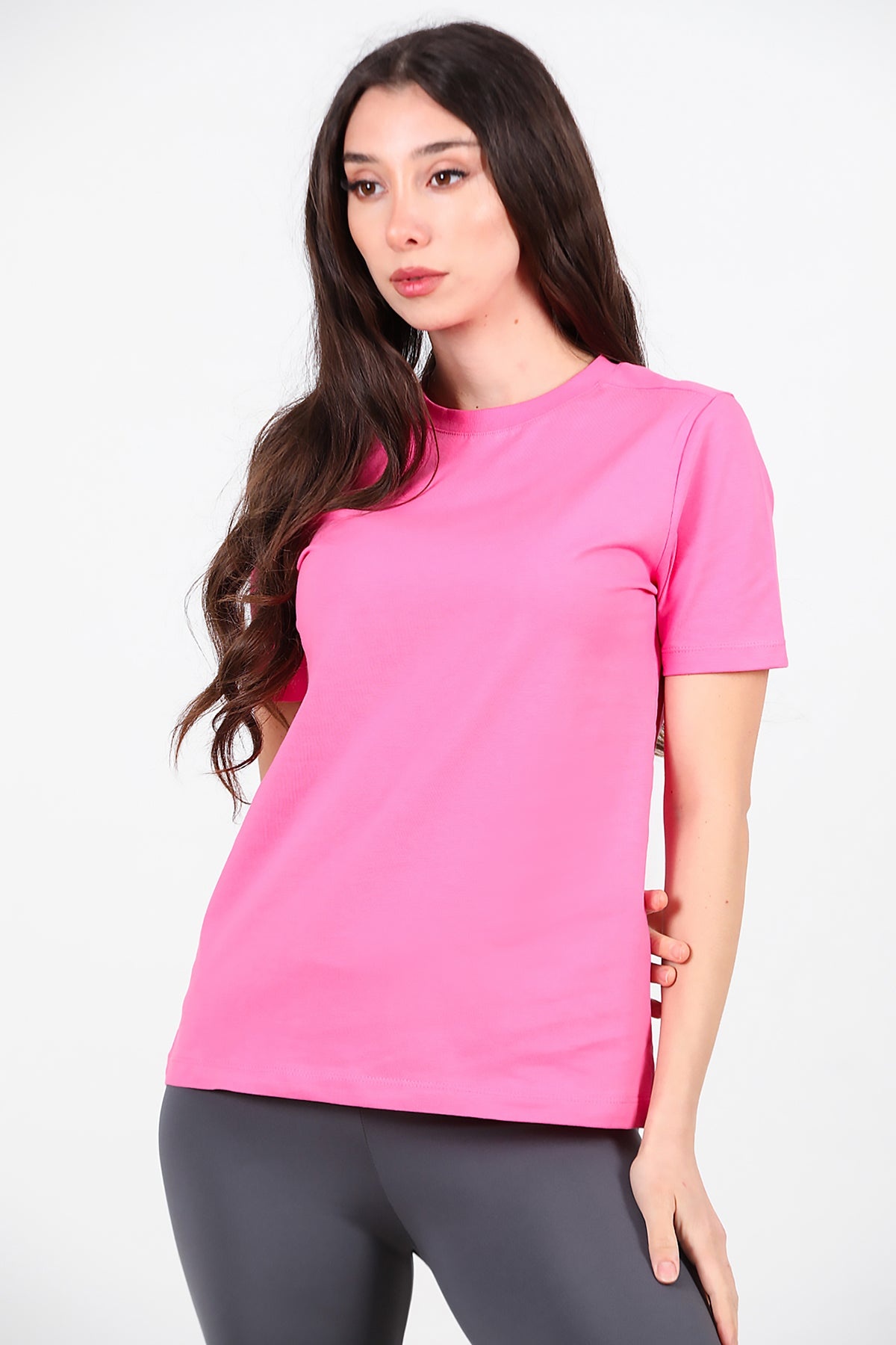 Kadın Omzu Çimalı Basıc Tshırt Pembe