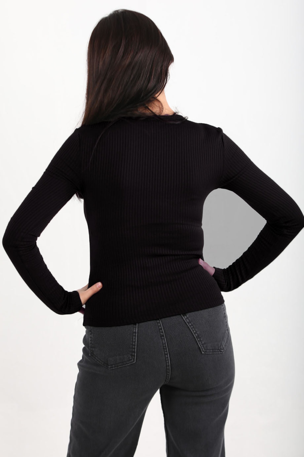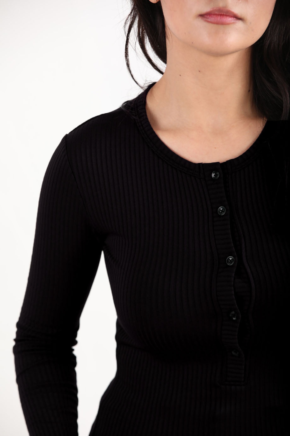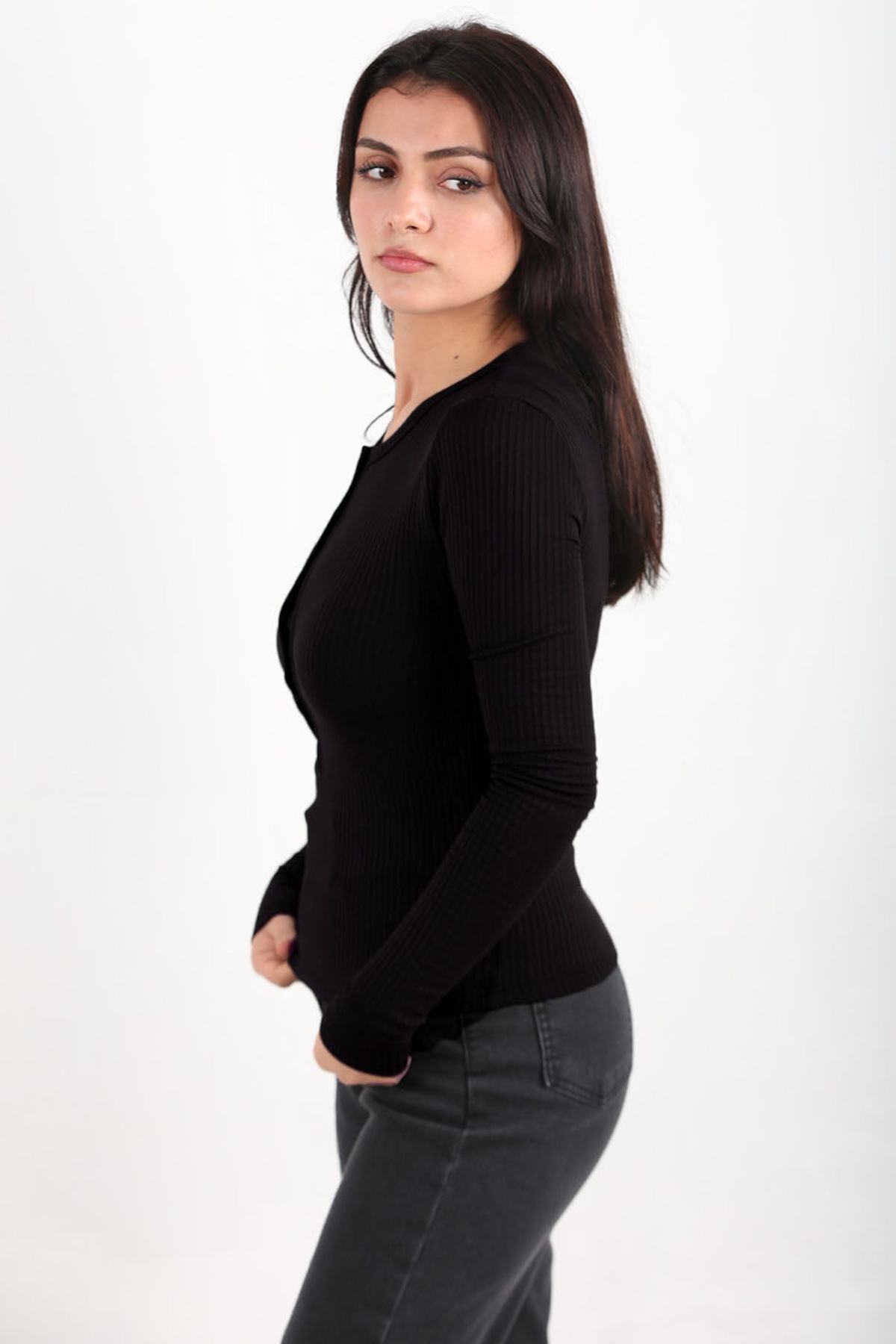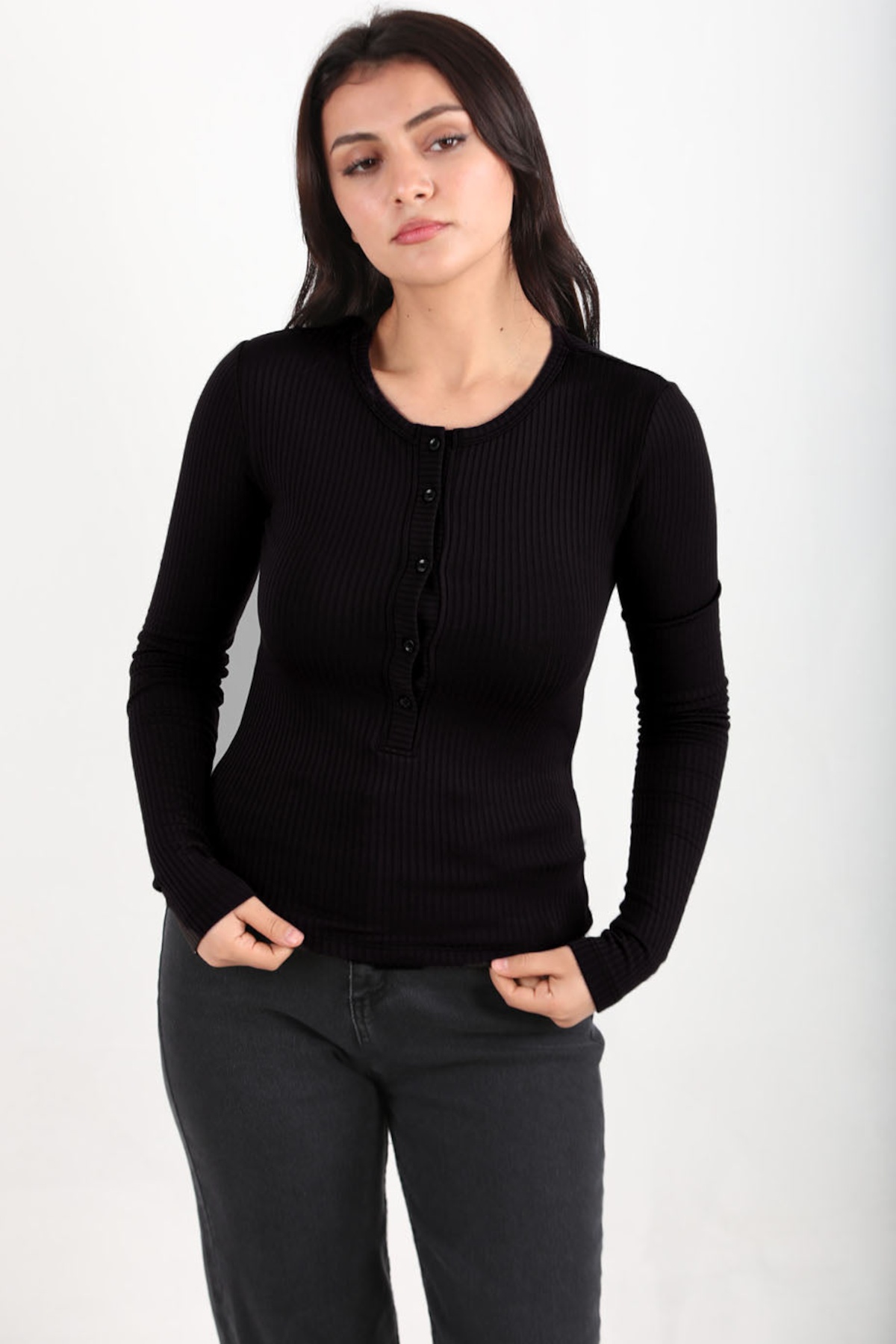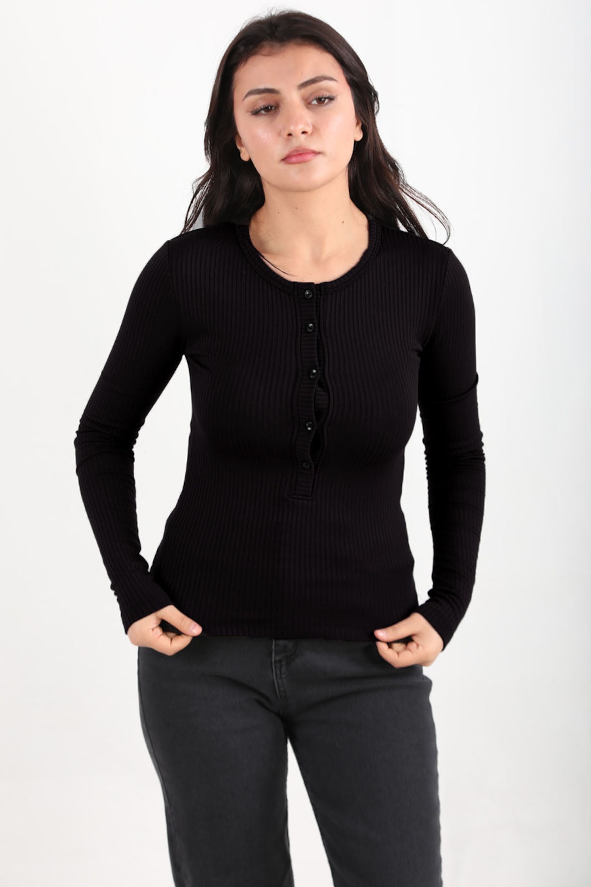 Kadın Ön Düğmeli Kalın Fitilli Bluz Siyah