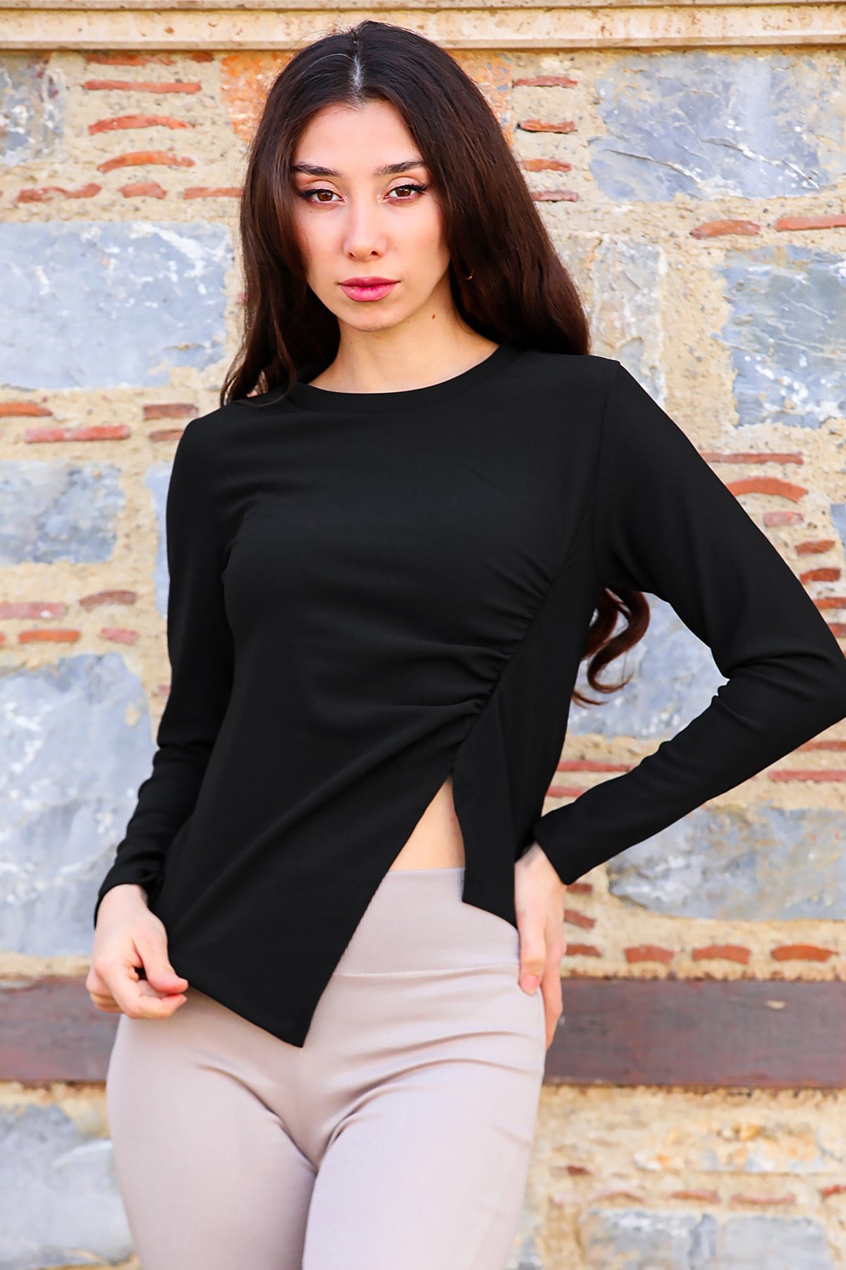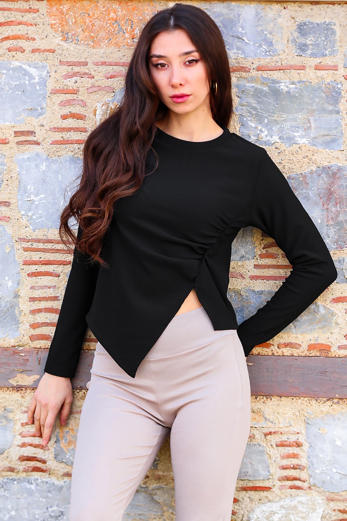 Numune Bedeni: 36Numune Boyu: 63 cmKumaş Tipi: %85 Pamuk %15 PolyesterKol: Uzun KolÜrün Özelliği: Asimetrik Kesim