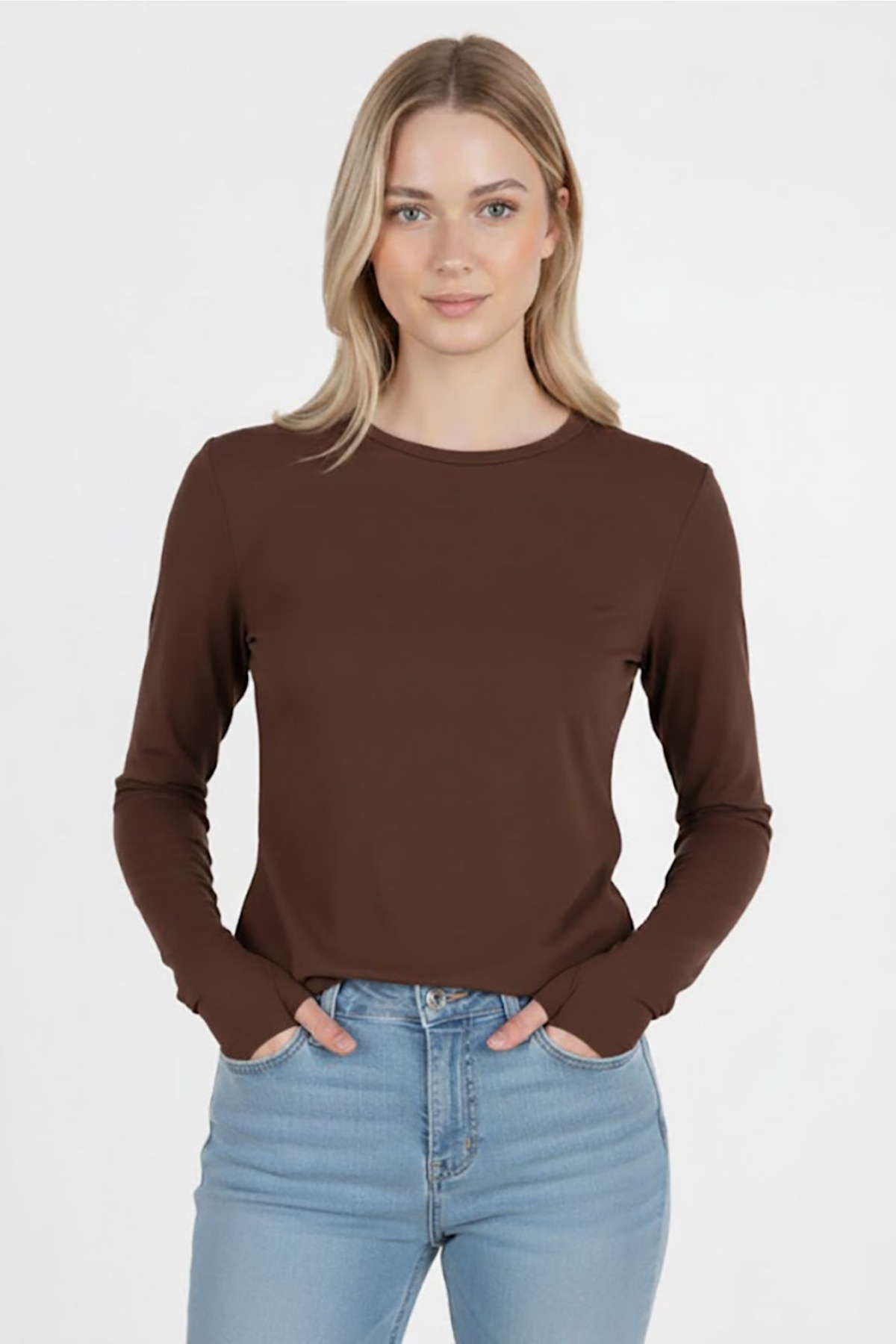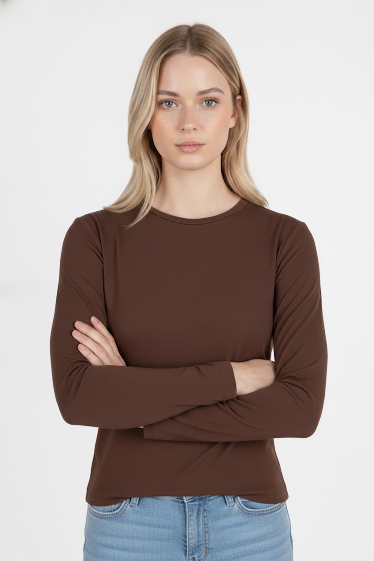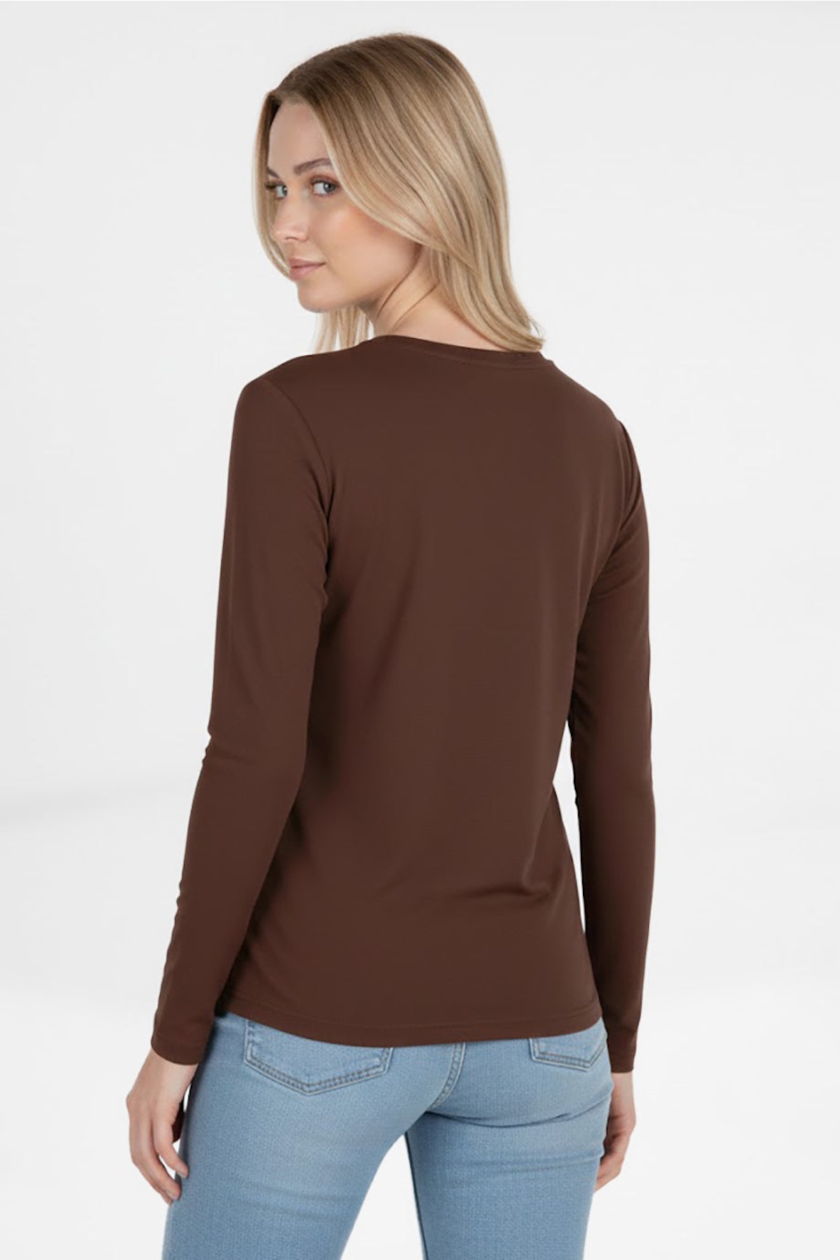 Kadın Parmak Geçmeli Bluz Kahverengi