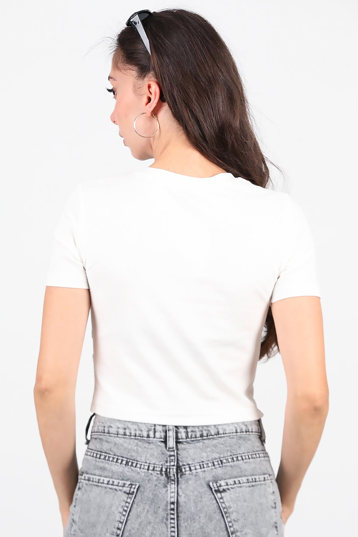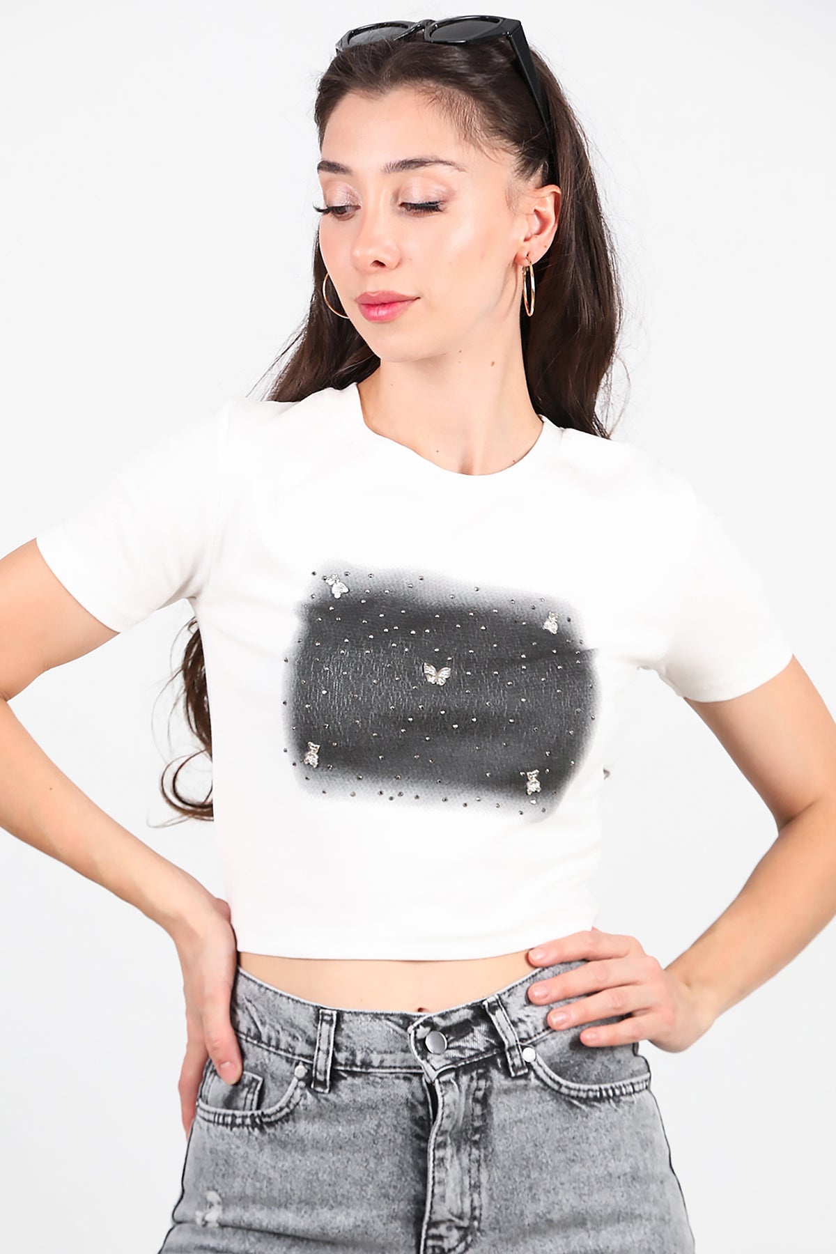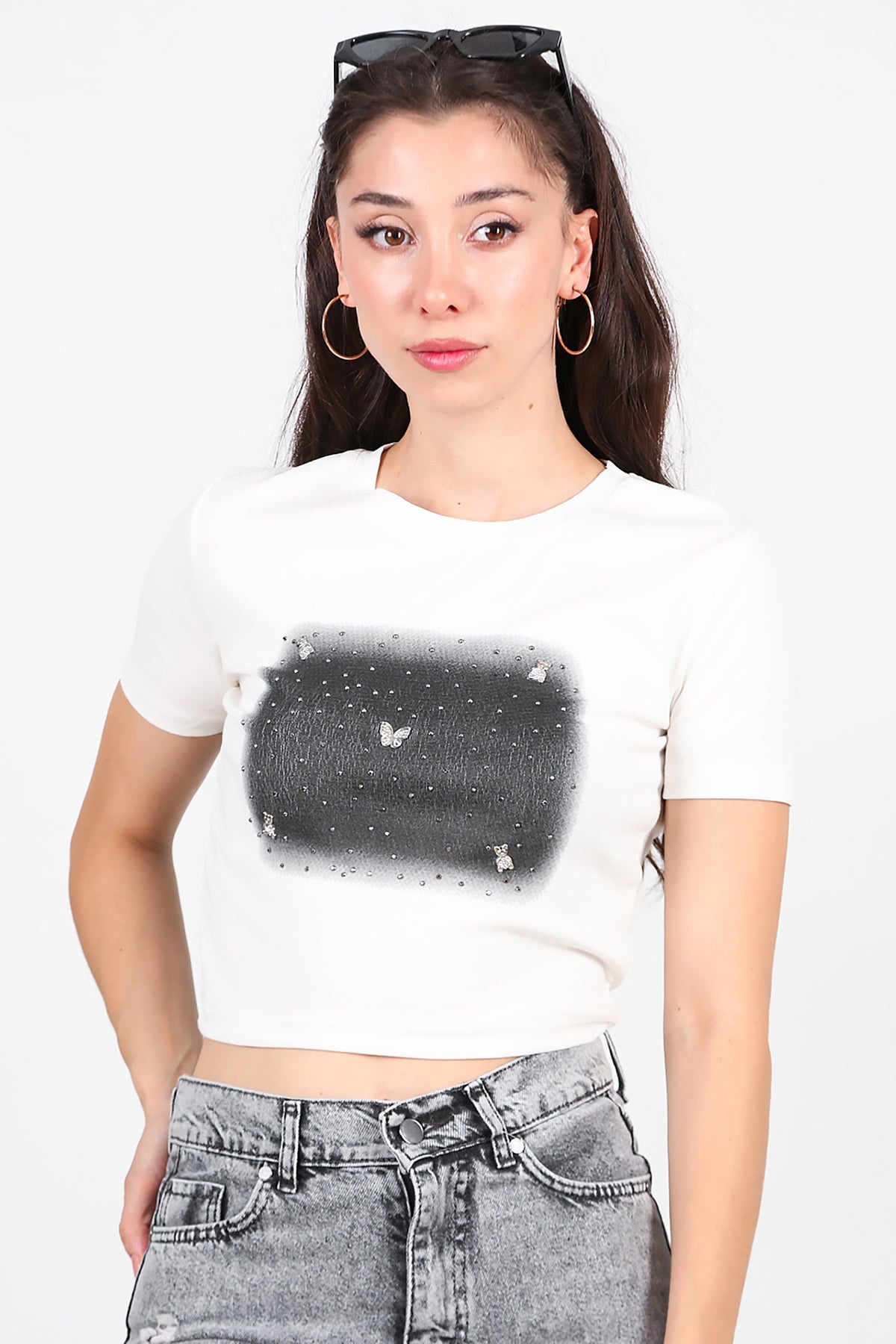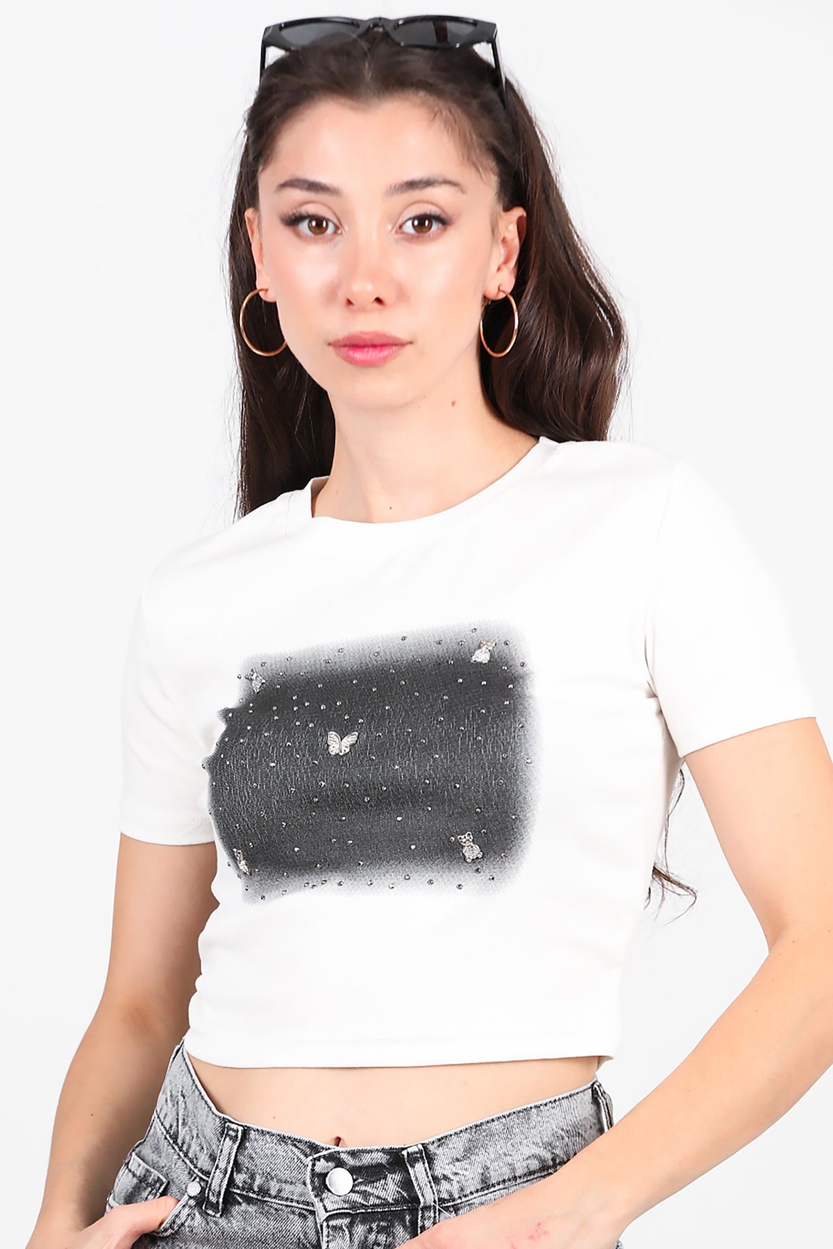 Kadın Taş Baskılı Tshırt Ekru