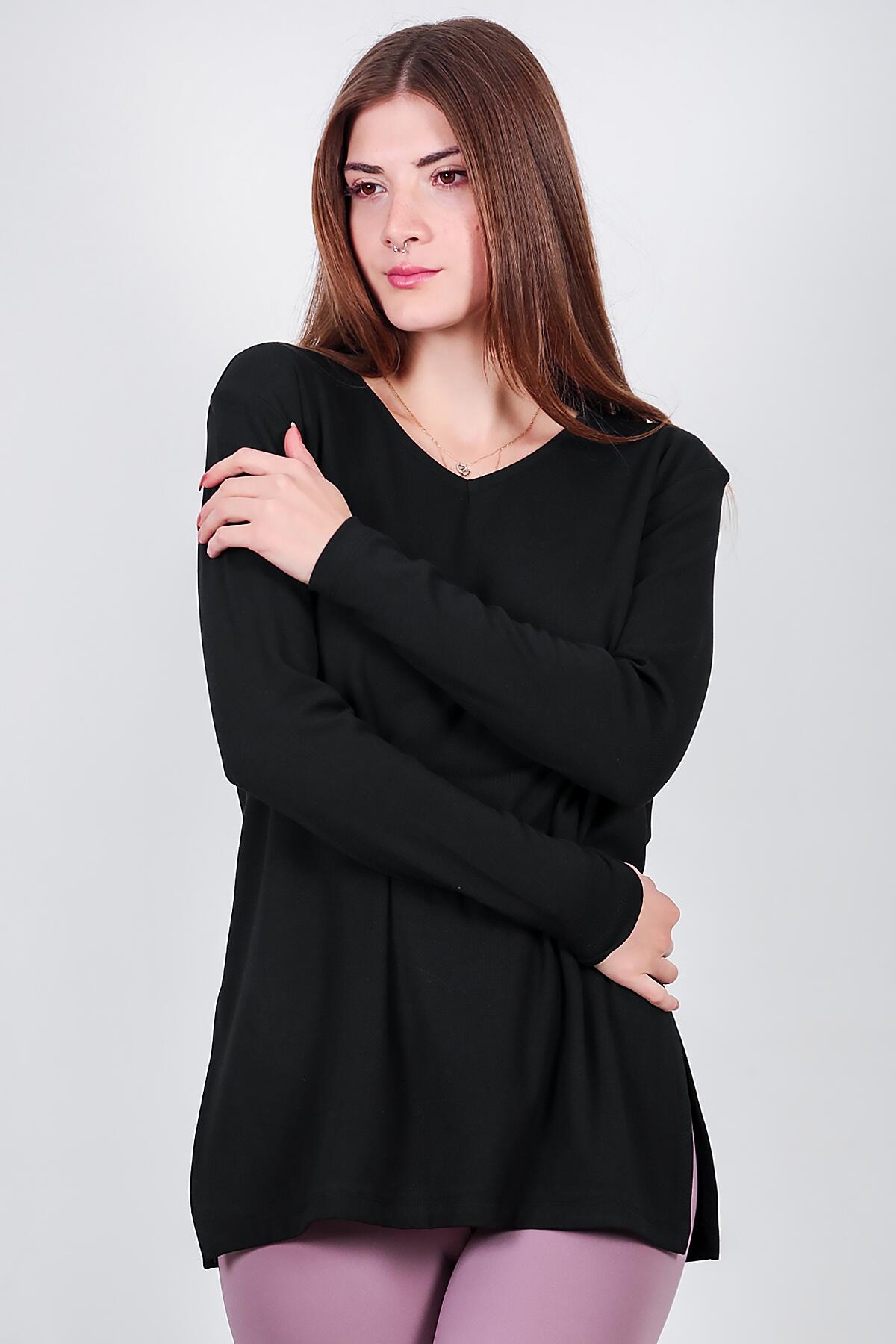 Kadın Uzun Yırtmaçlı Bluz Siyah