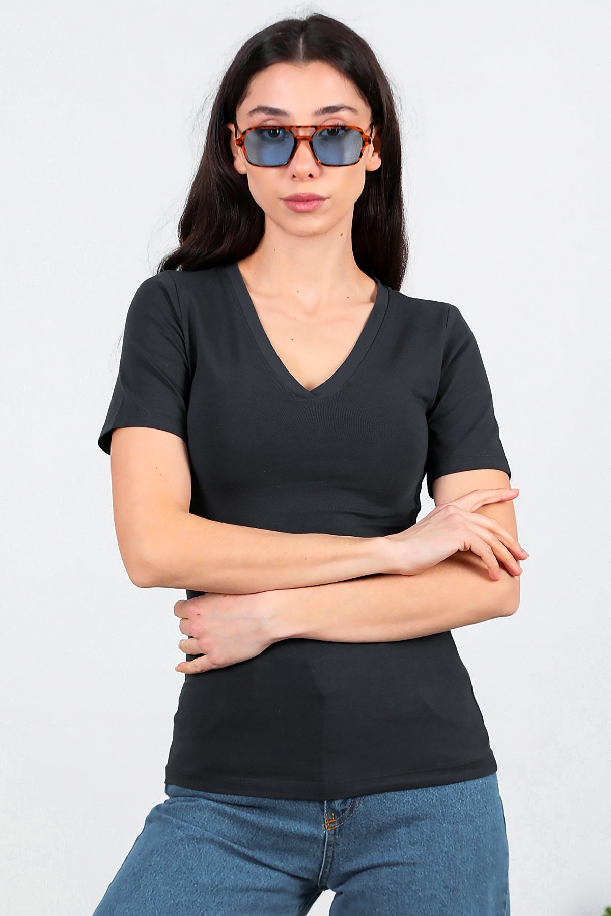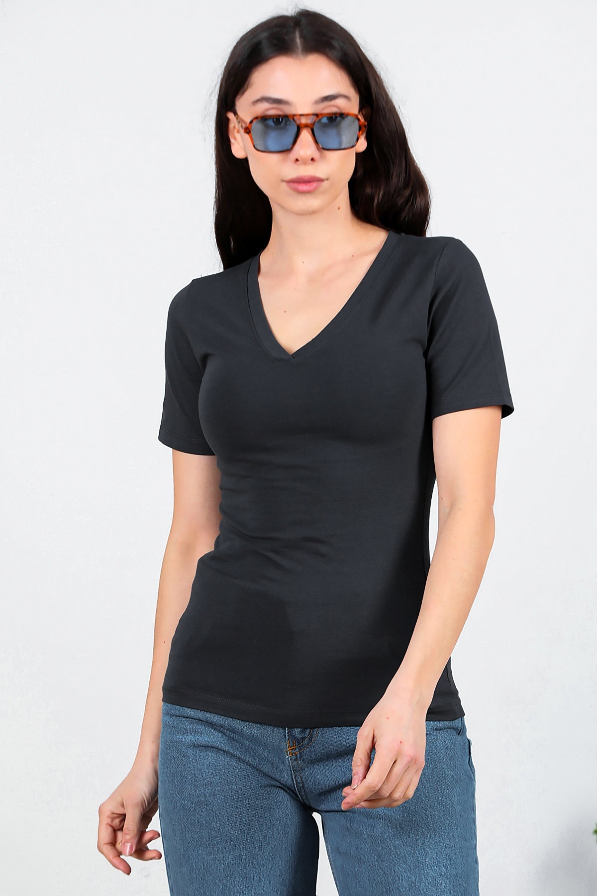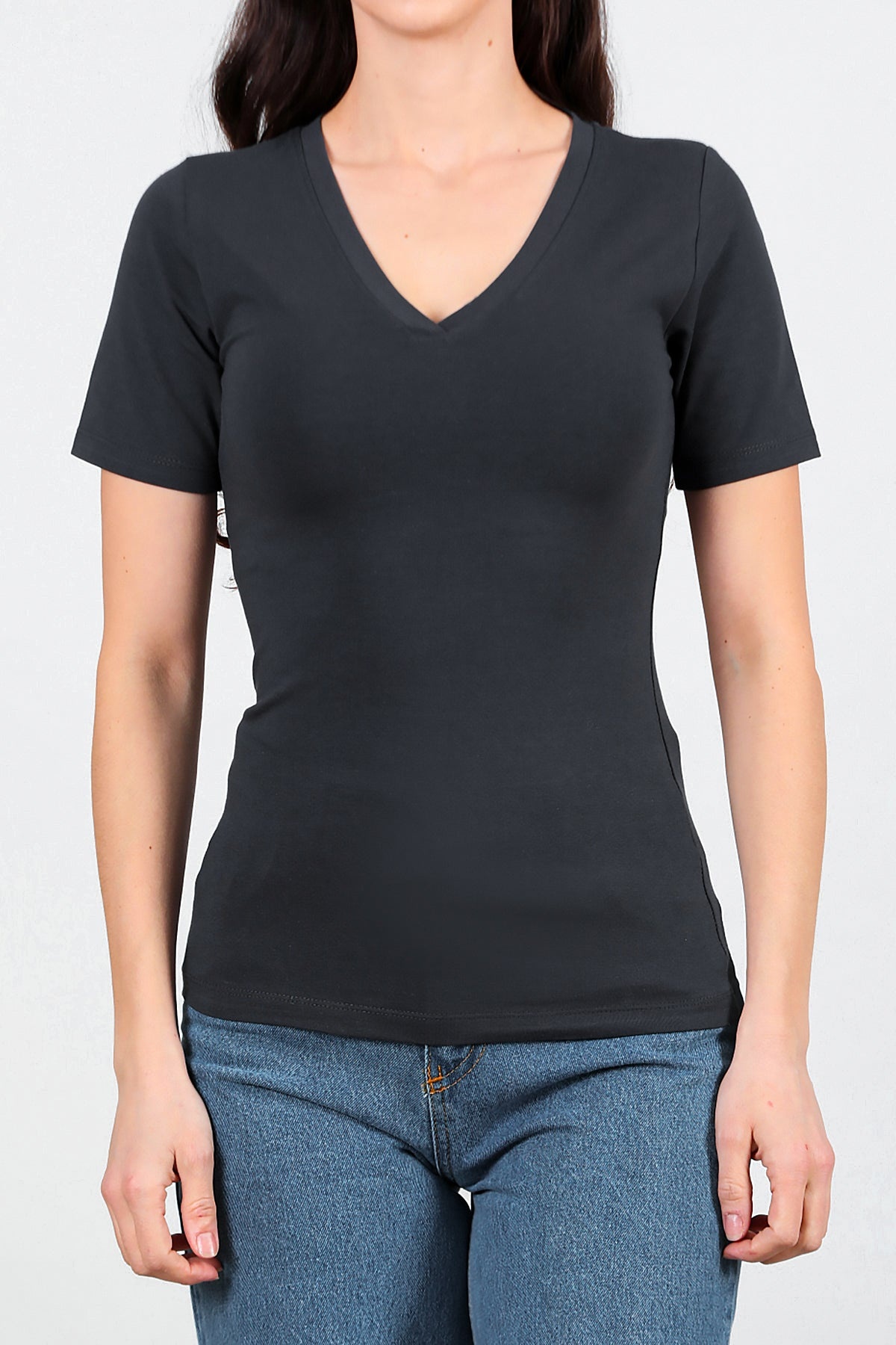 Numune Bedeni: 36Numune Boyu: 59 cmKumaş Tipi: %85 Pamuk %15 PolyesterKol: Kısa KolYaka: V Yaka