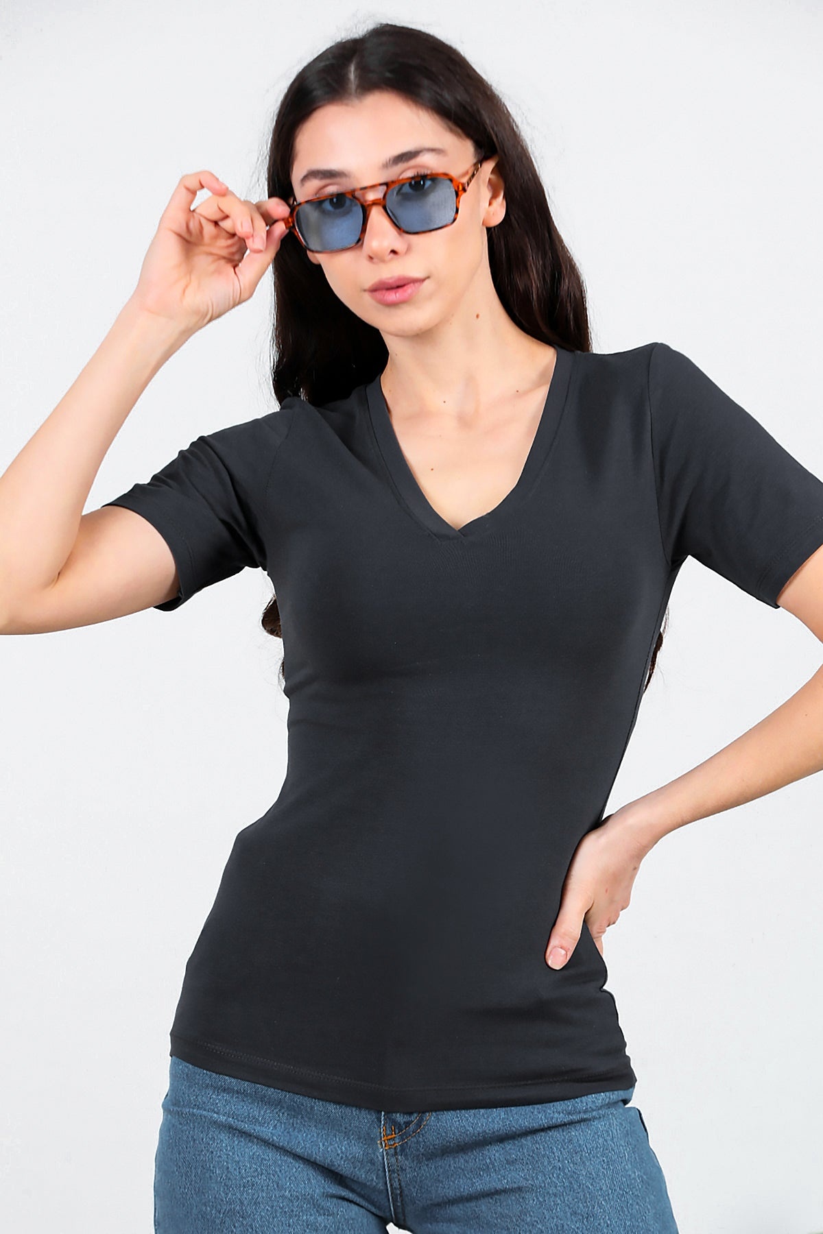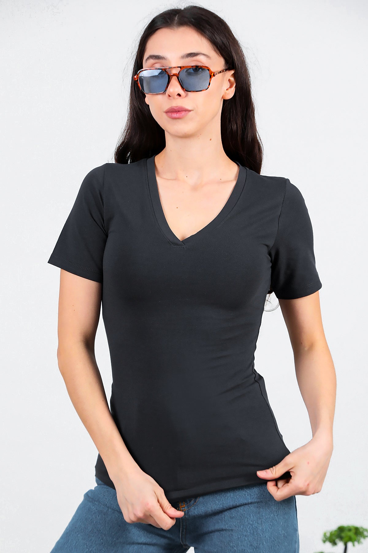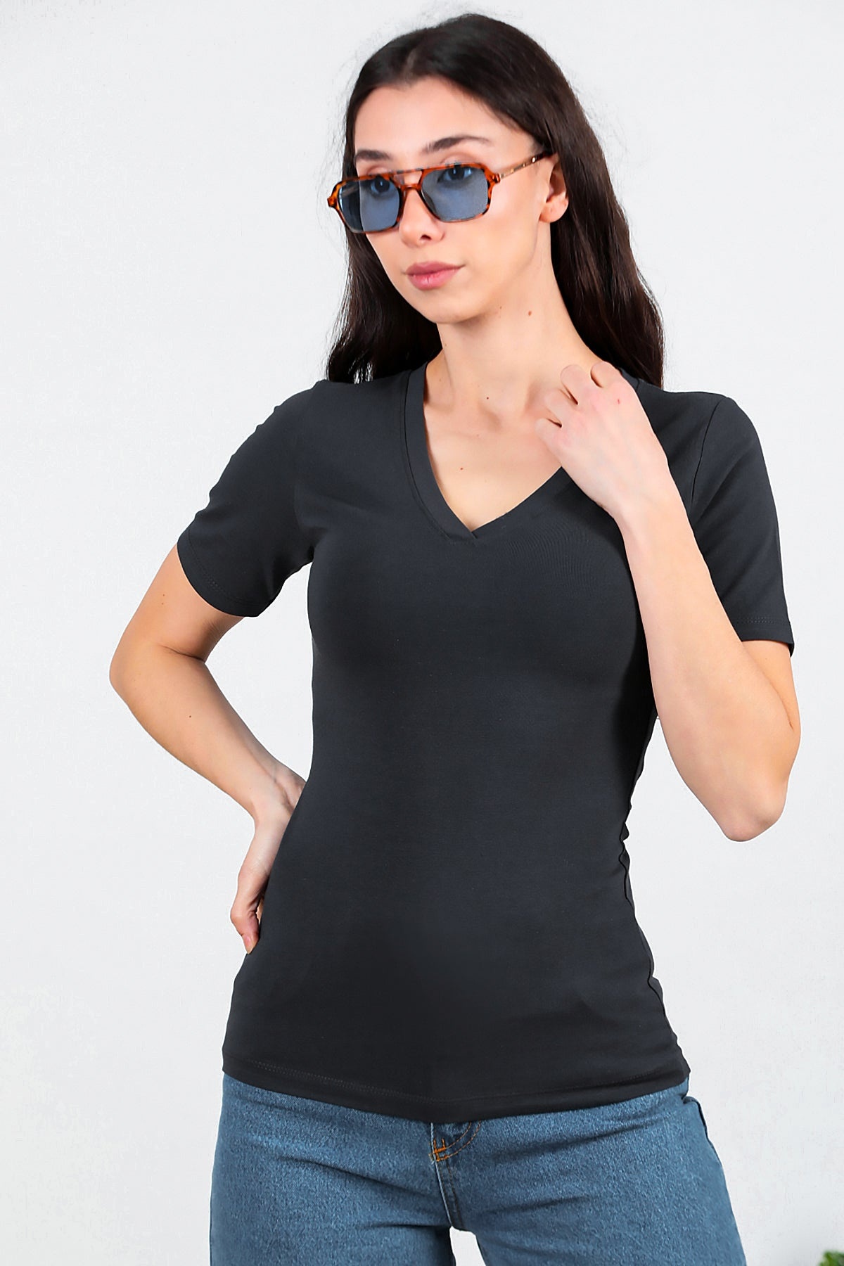Numune Bedeni: 36Numune Boyu: 59 cmKumaş Tipi: %85 Pamuk %15 PolyesterKol: Kısa KolYaka: V Yaka