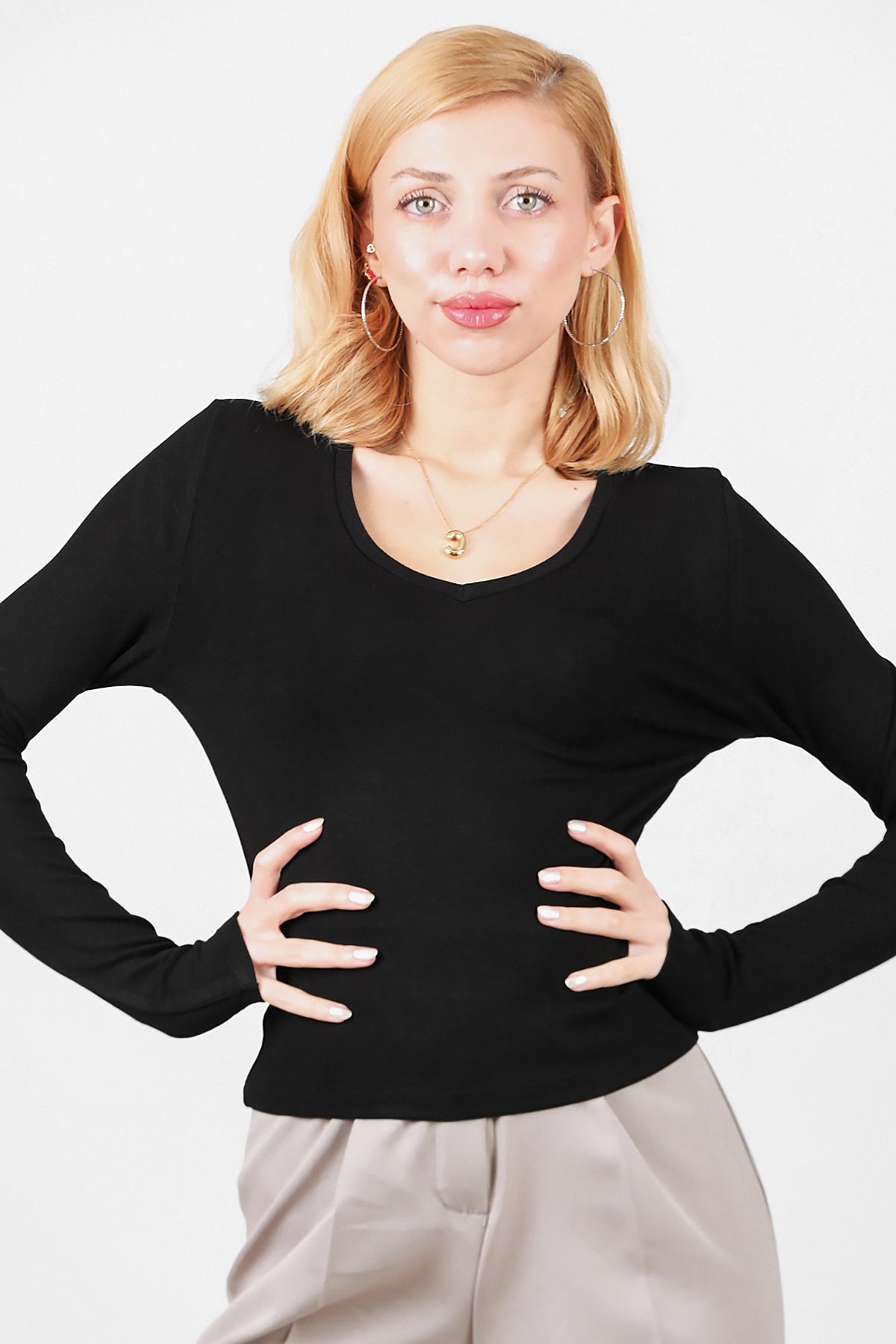Numune Bedeni: 36Numune Boyu: 50 cmKumaş Tipi: %85 Pamuk %15 PolyesterKol: Uzun KolYaka: V Yaka