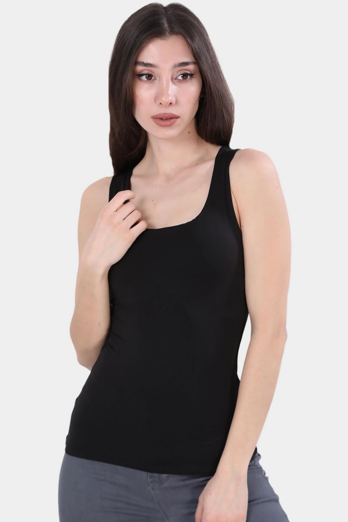 Kalın Askılı Kadın Bluz Siyah