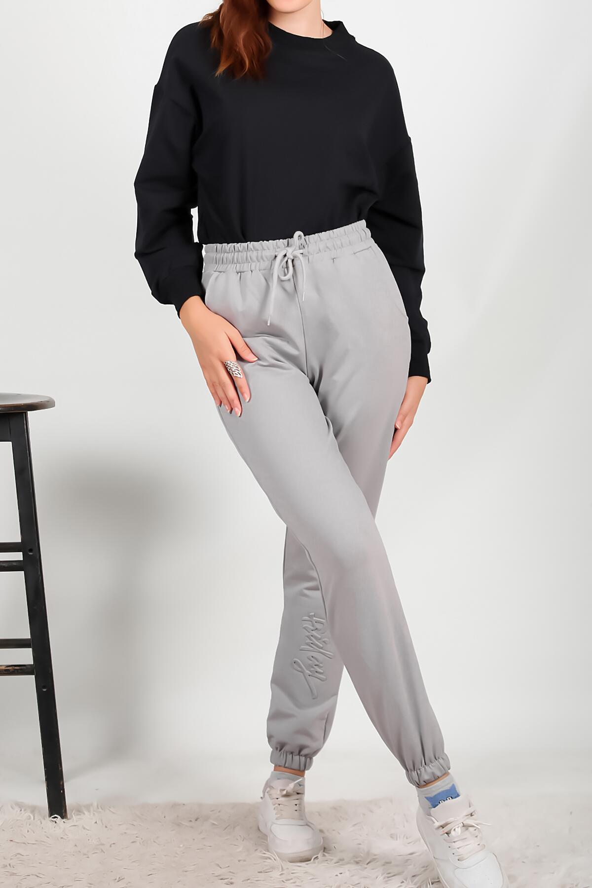 Kadın İki İplik Baskılı Eşofman Altı Gri