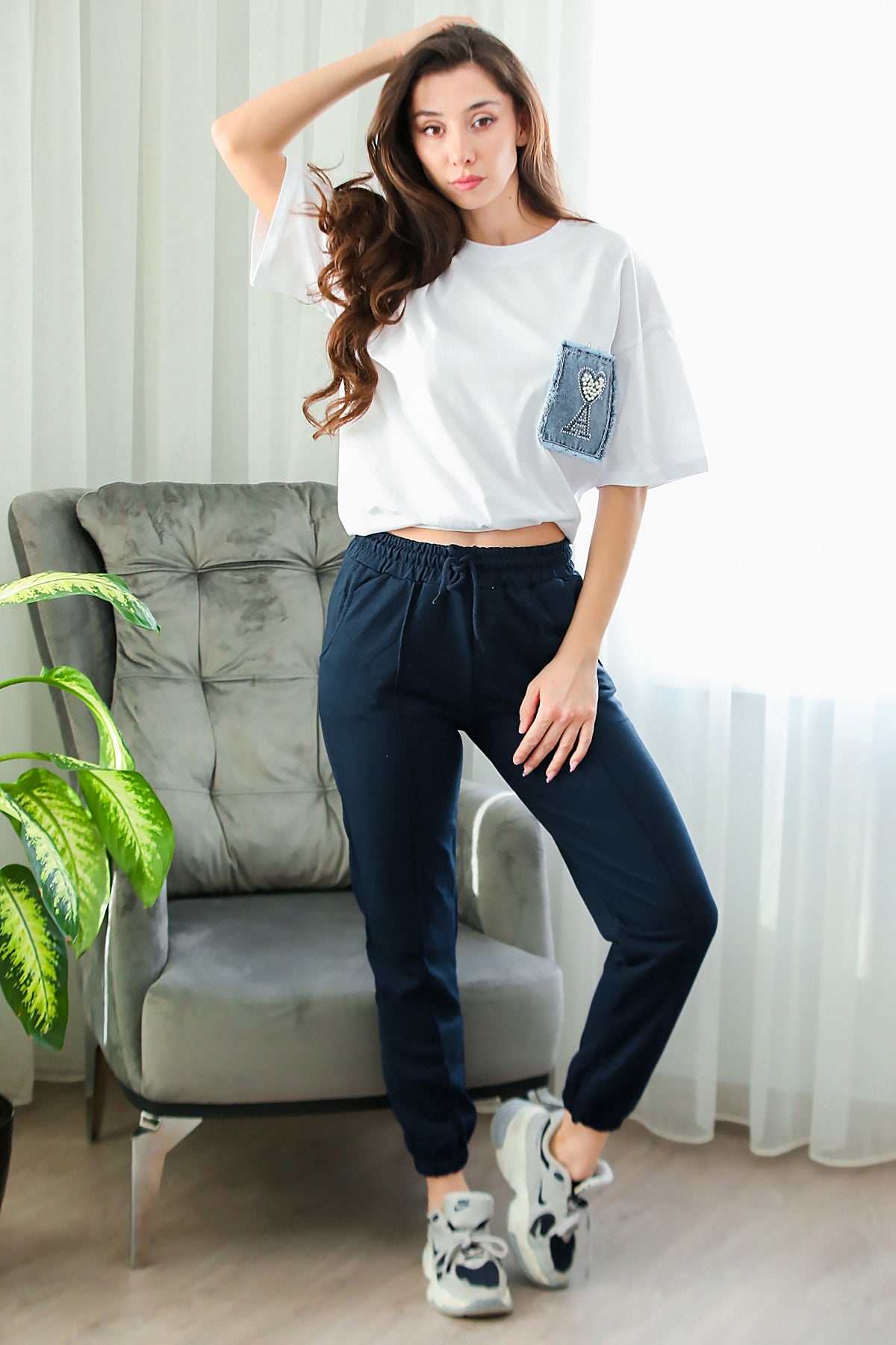 Kadın İki İplik Çimalı Paça Lastikli Eşofman Lacivert