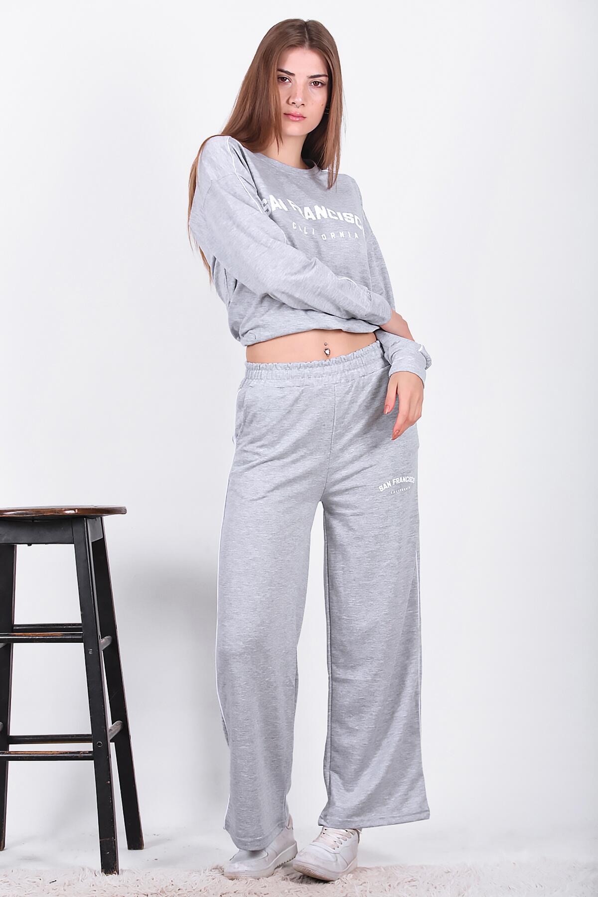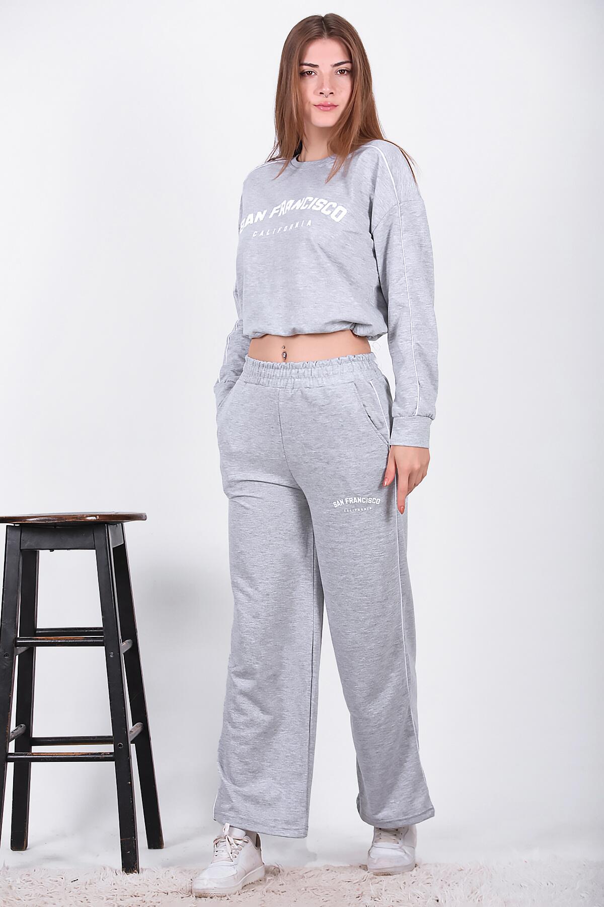 Kadın Ön Baskılı Eşofman Takımı Gri