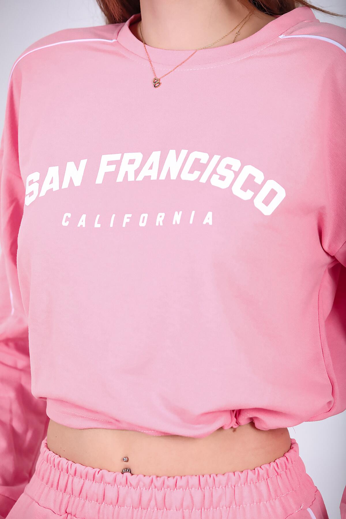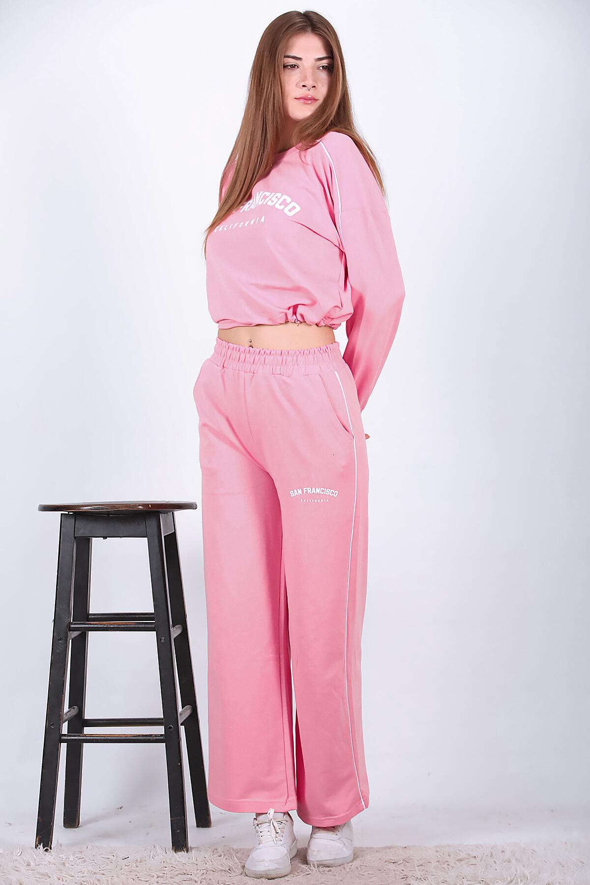Kadın Ön Baskılı Eşofman Takımı Pembe