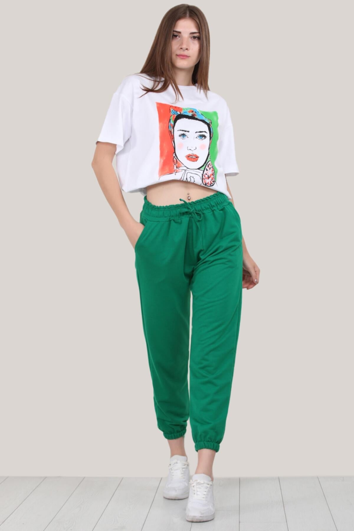 Kadın Paça Lastikli Eşofman Alt Yeşil