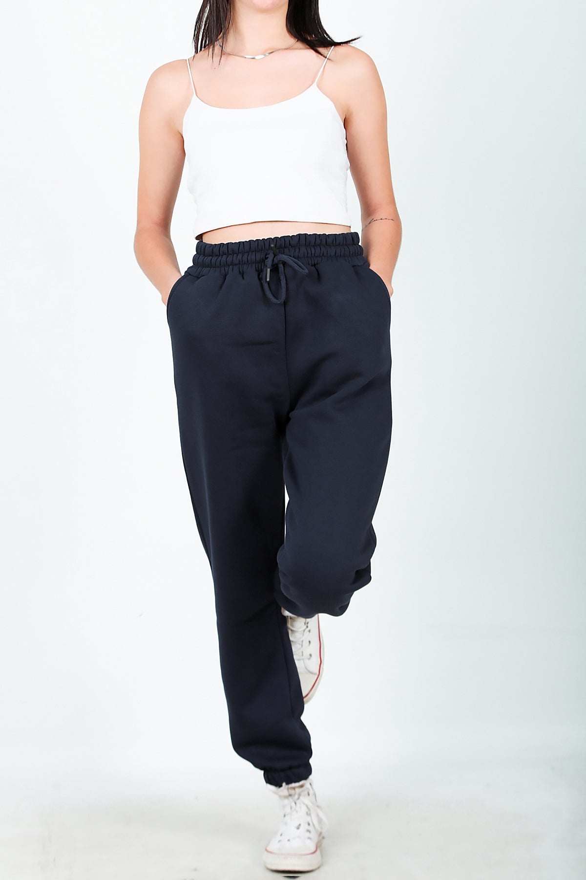Kadın Paça Lastikli İçi Şardonlu Eşofman Altı Lacivert