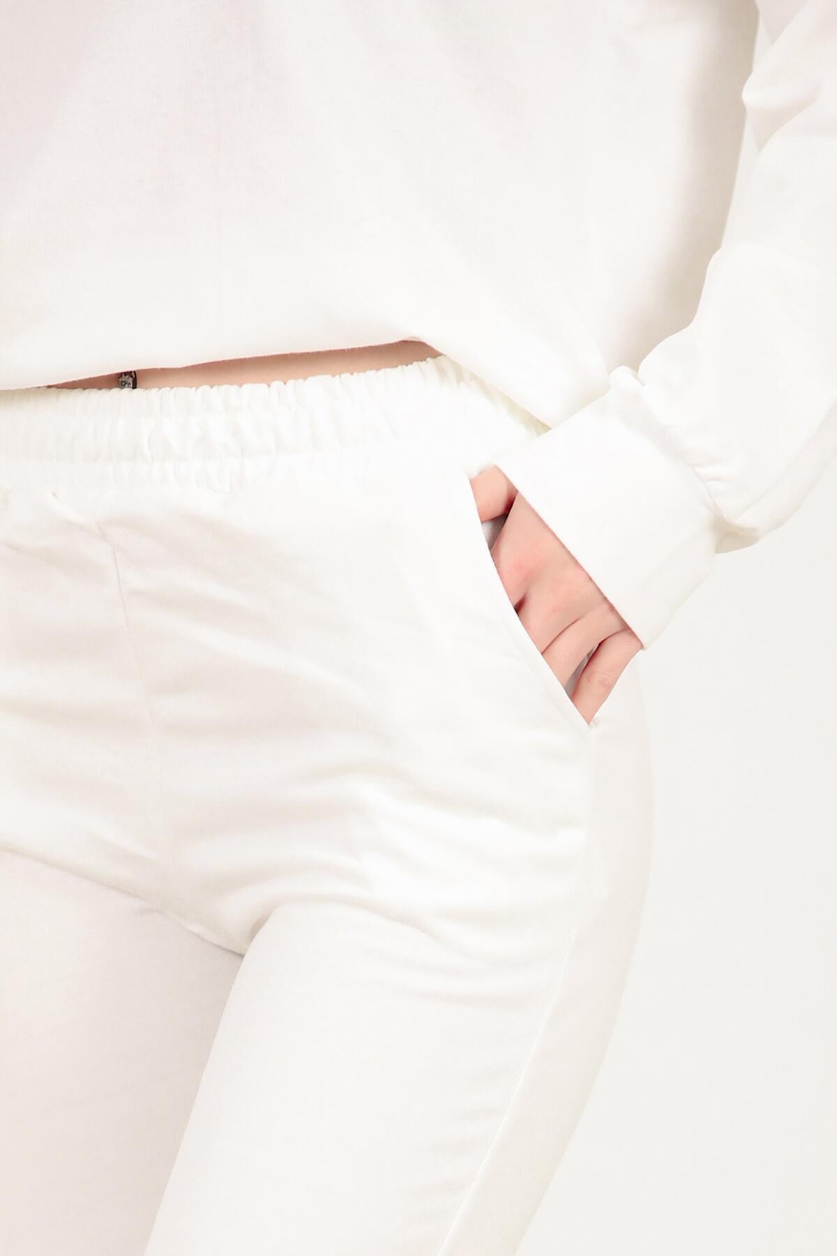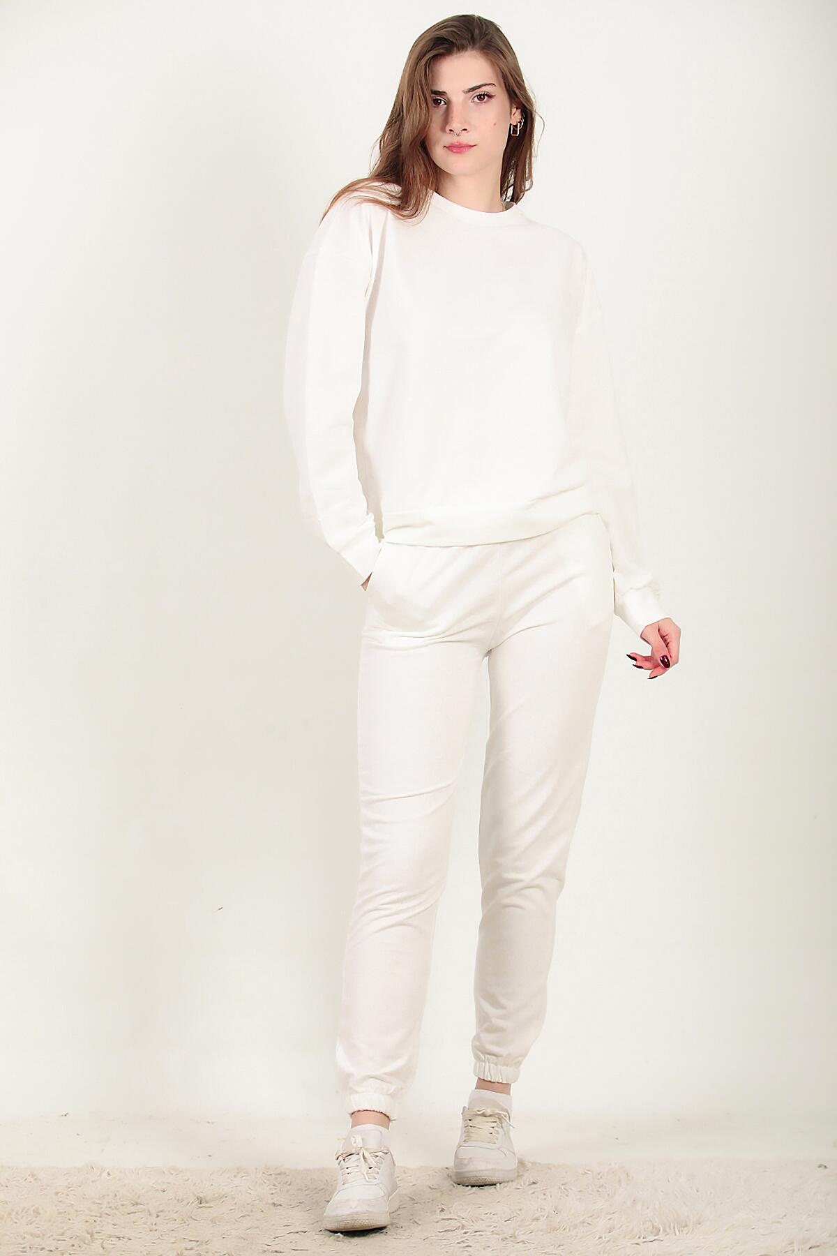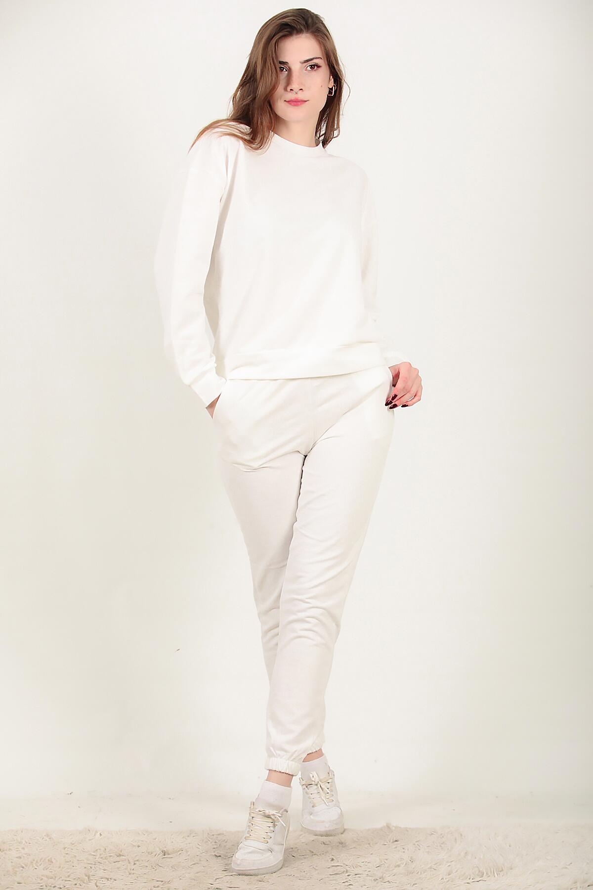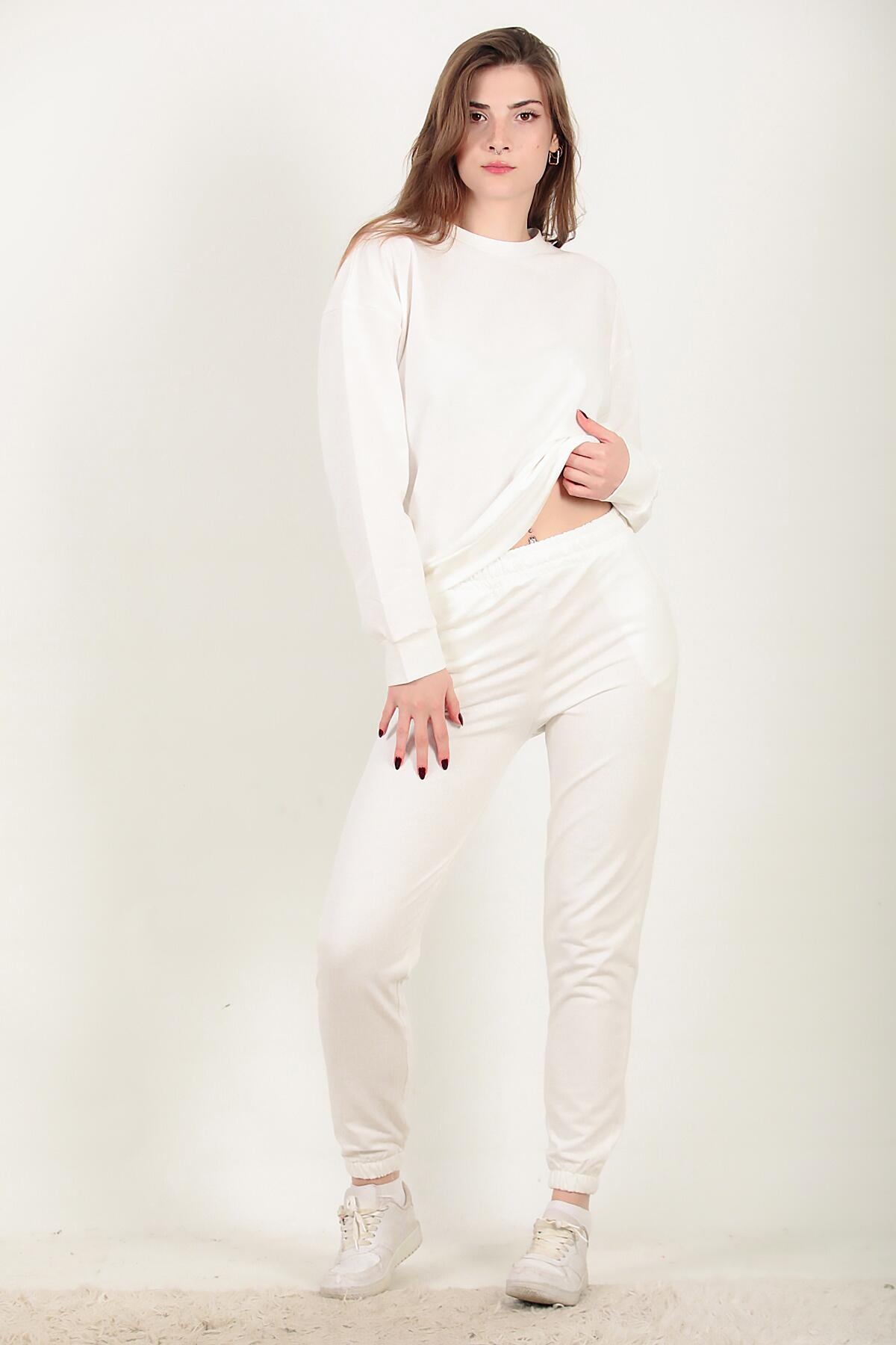 Numune Bedeni: 36 Numune Boyu: 62 cm ( Üst ) 98 cm ( Alt ) Kumaş Tipi: %85 Pamuk % 15 Polyester Kol: Uzun Kol Bel ve Paça: Lastikli