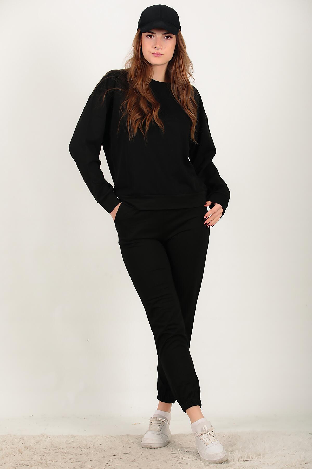 Kadın Paçası Lastikli Oversize Takım Siyah