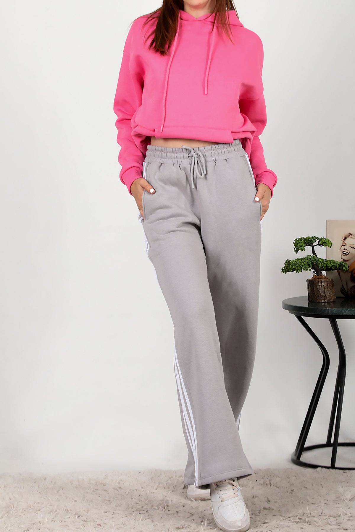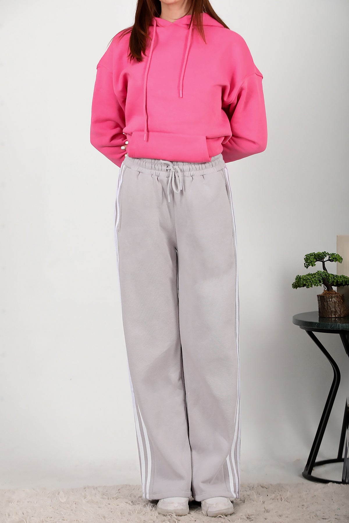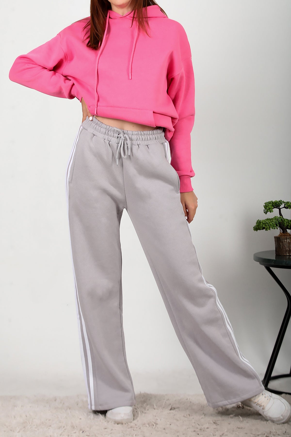 Kadın Üç İplik Biyeli Bol Paça Pantolon Gri