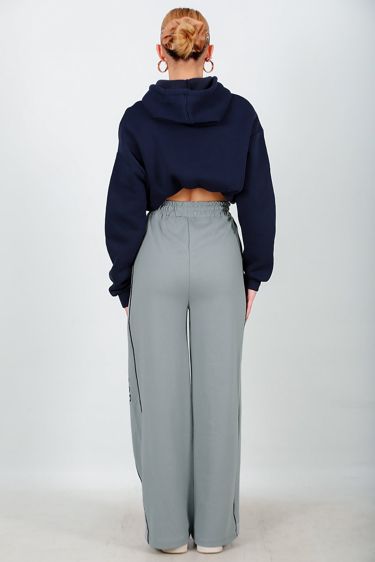 Kadın Yan Şeritli Baskılı Eşofman Gri Gri