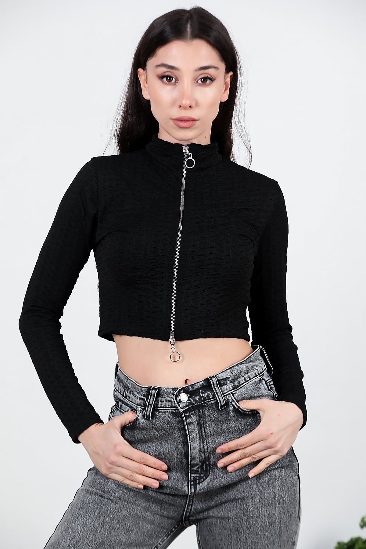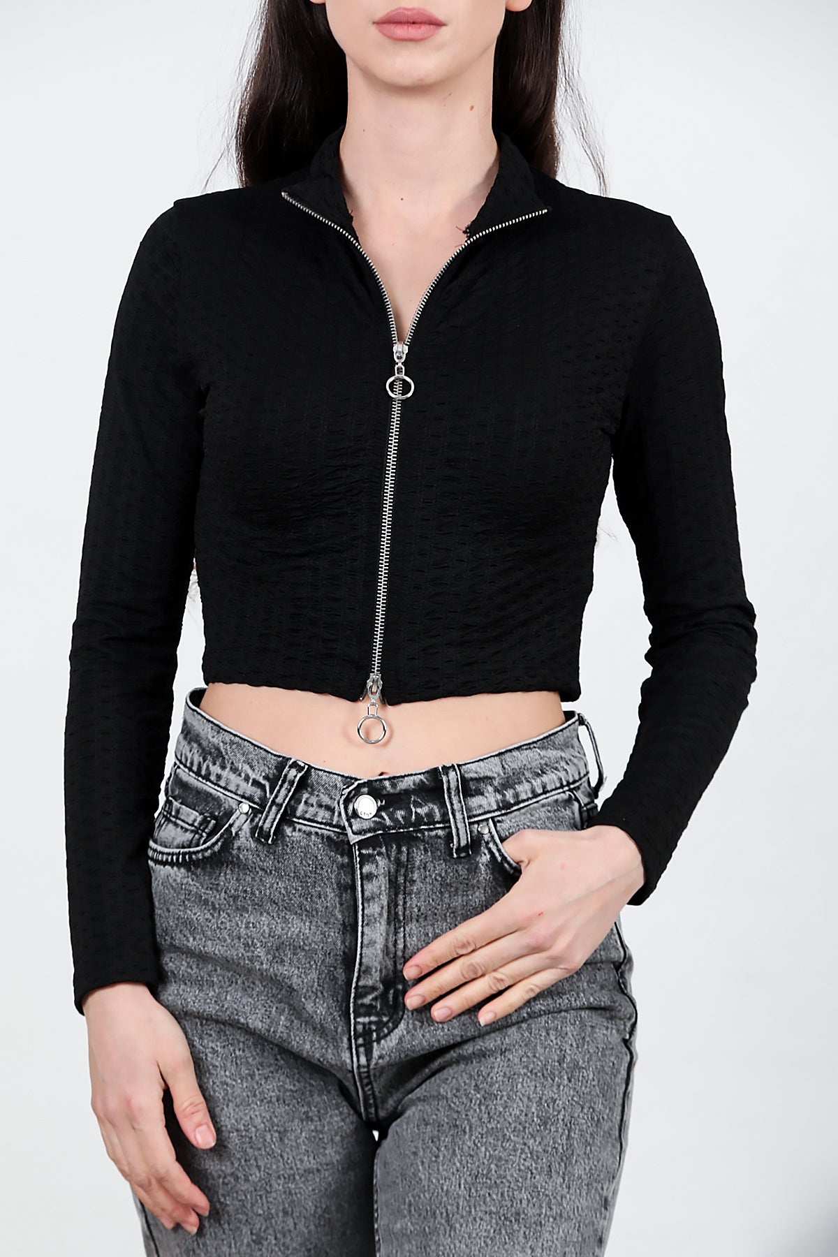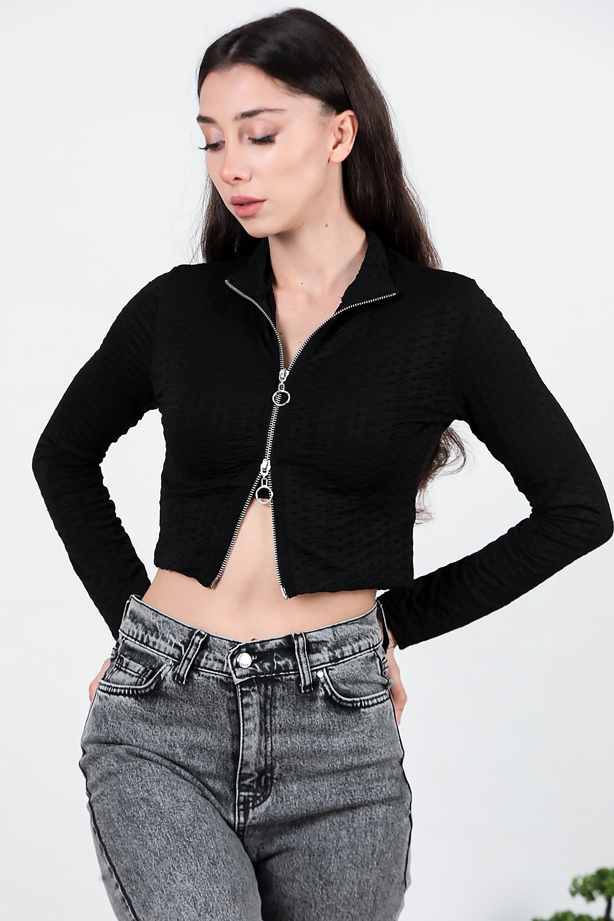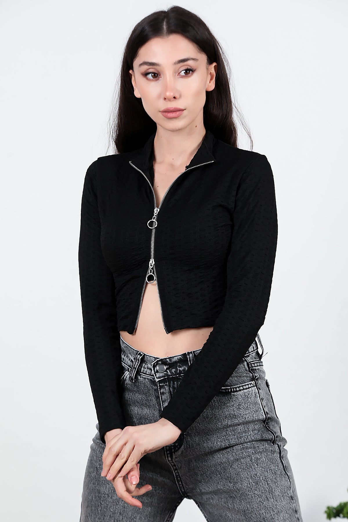 Kadın Çift Fermuarlı Burgu Ceket Siyah