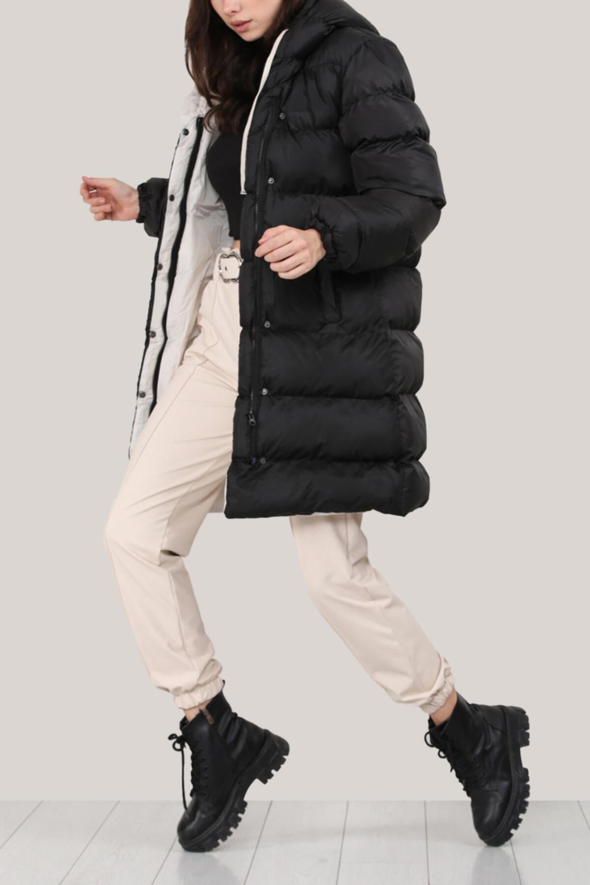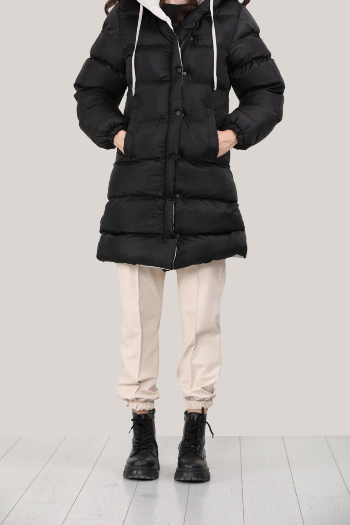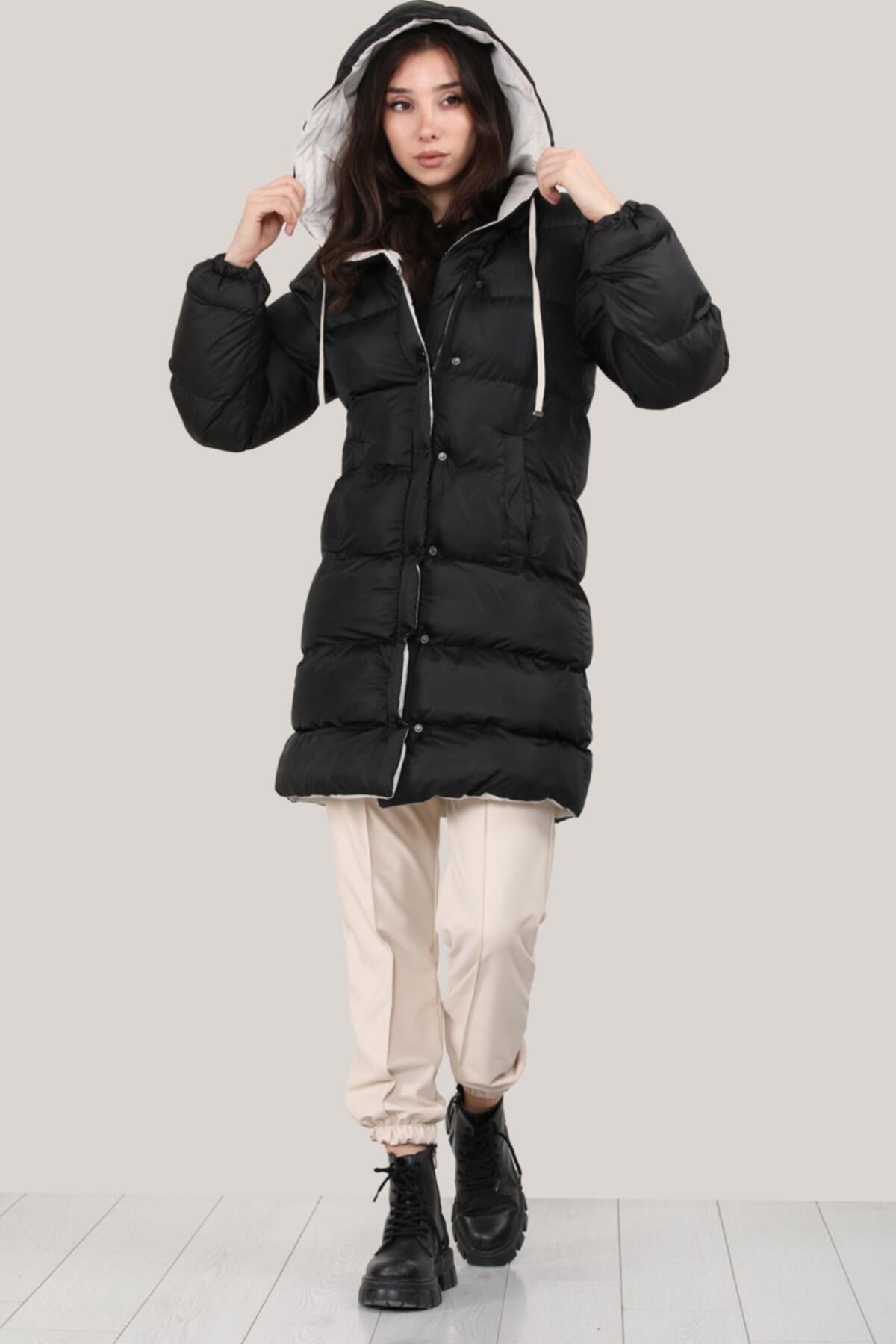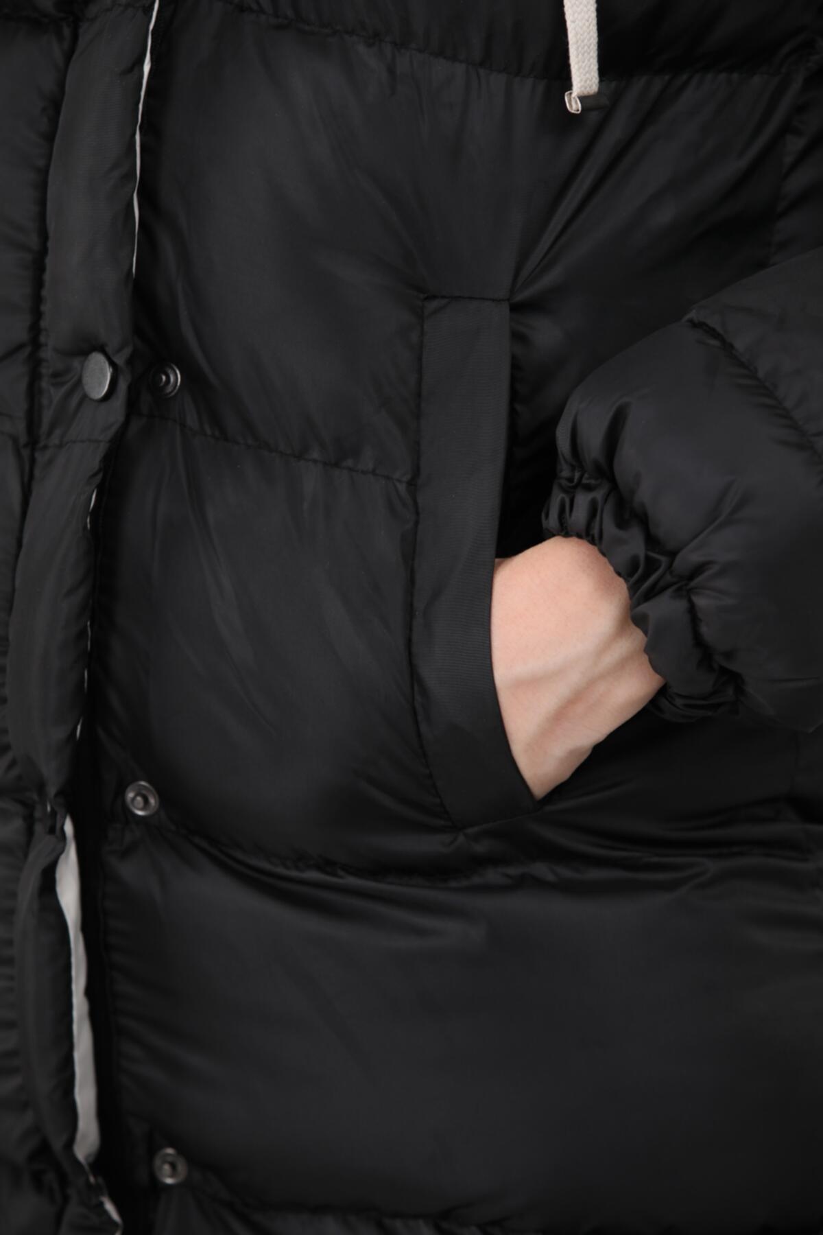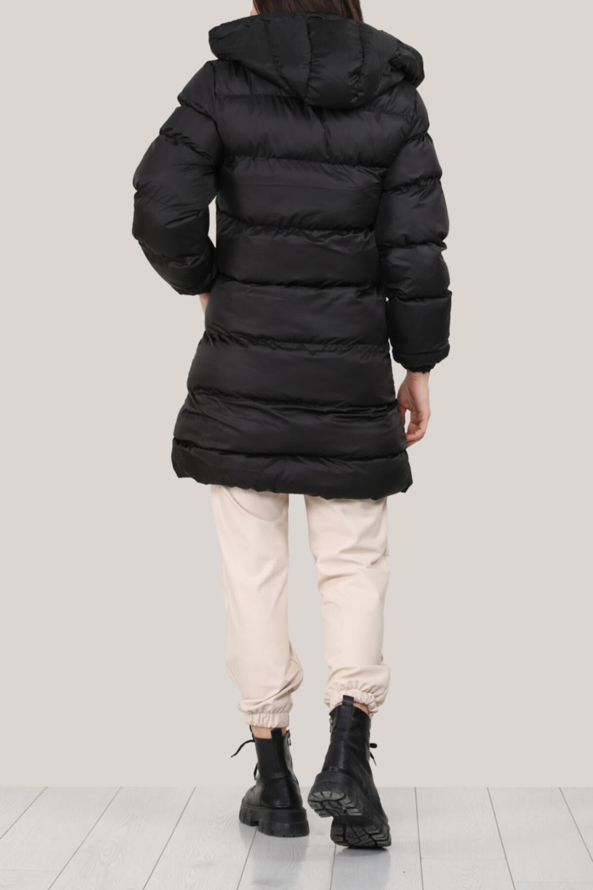 Kadın Kapşonlu Şişme Mont Siyah