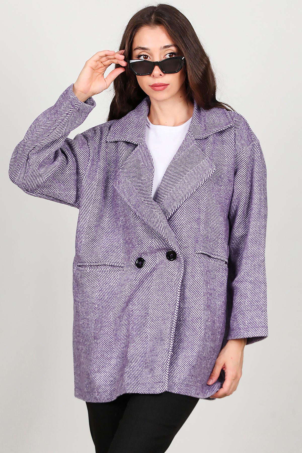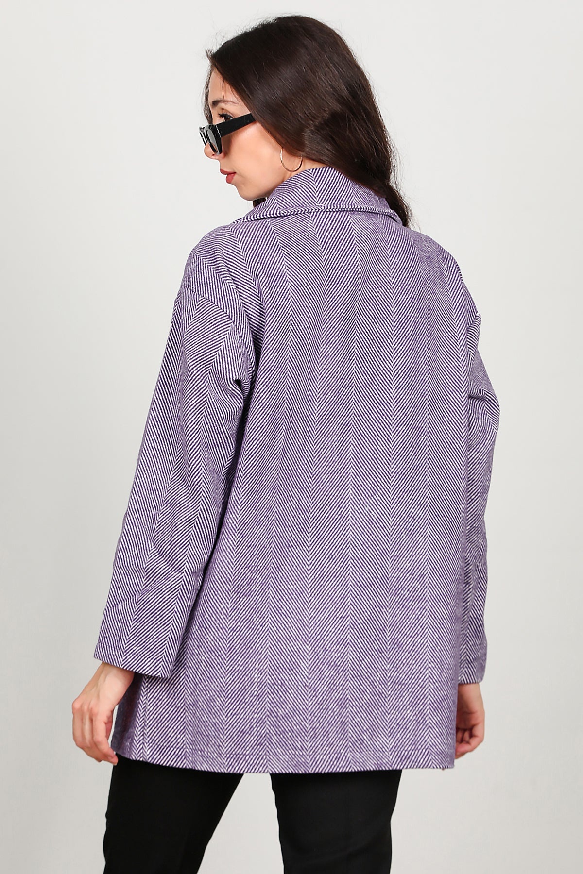 Kadın Kısa Kaşe Kaban Mor