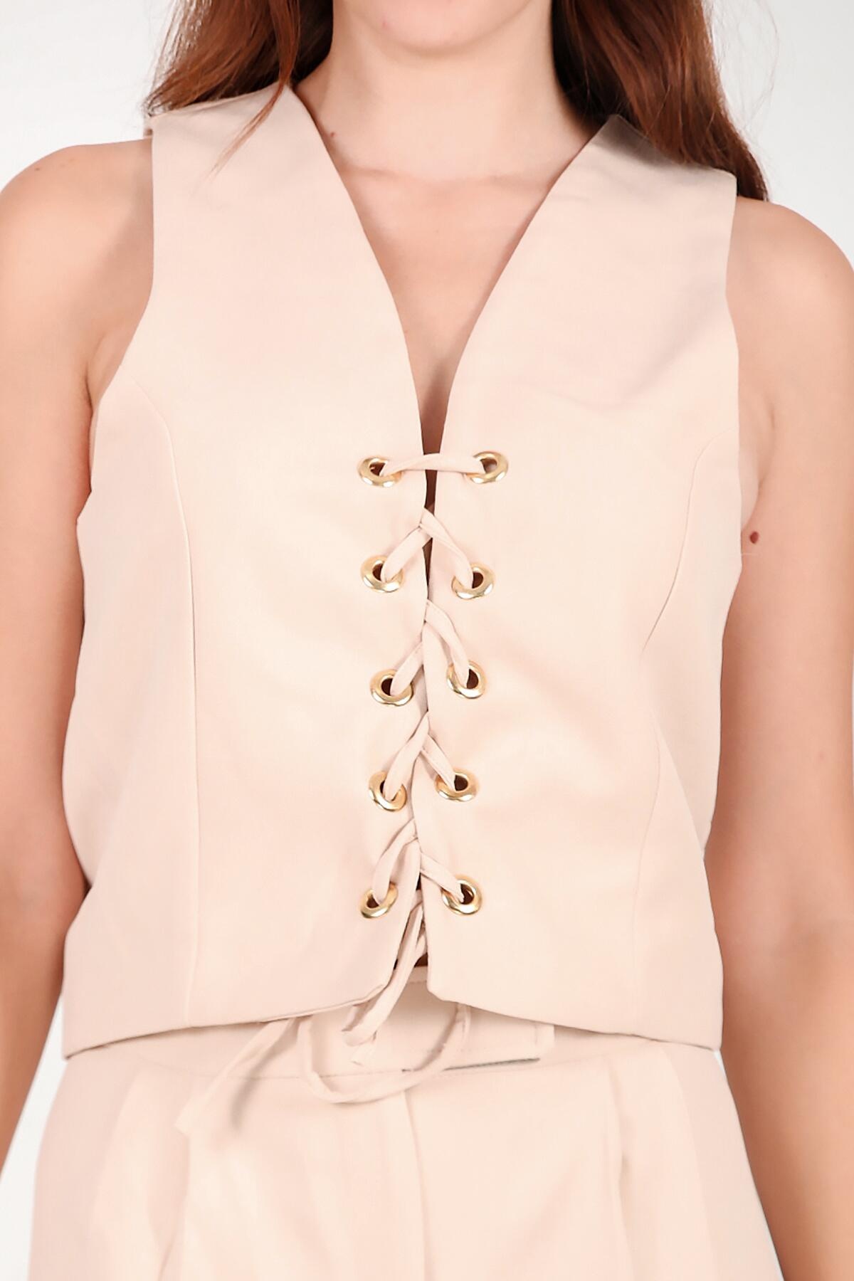 Kadın Kuş Gözlü Bağcıklı Yelek Taş