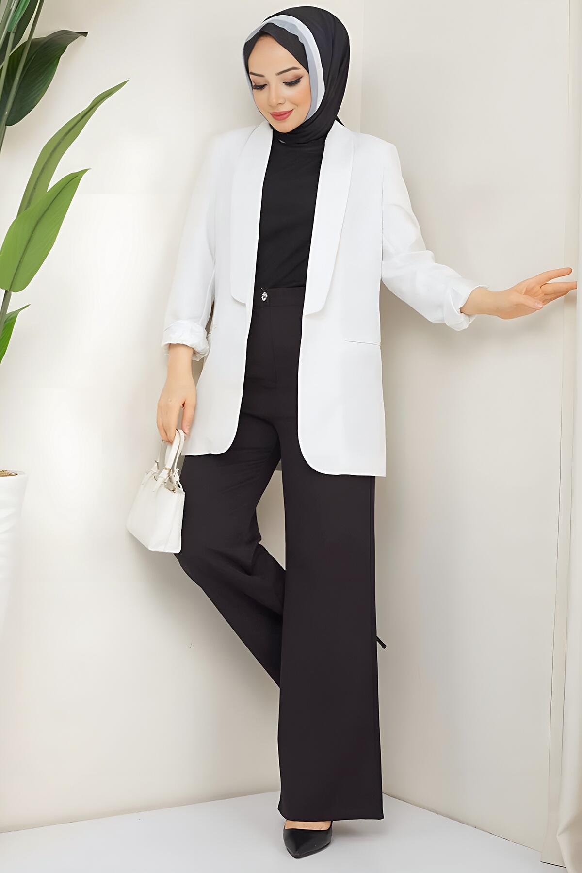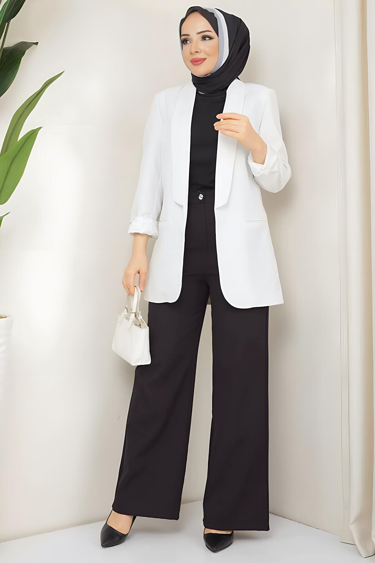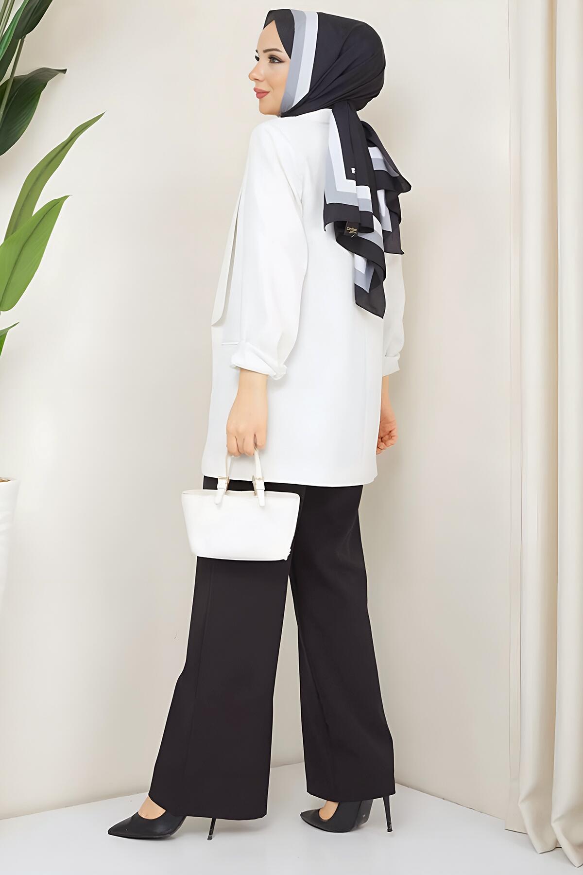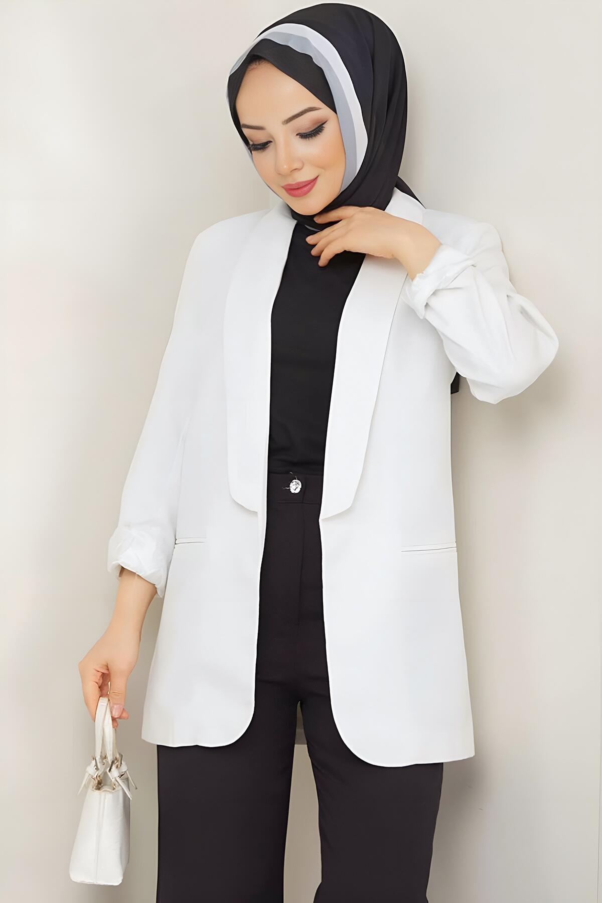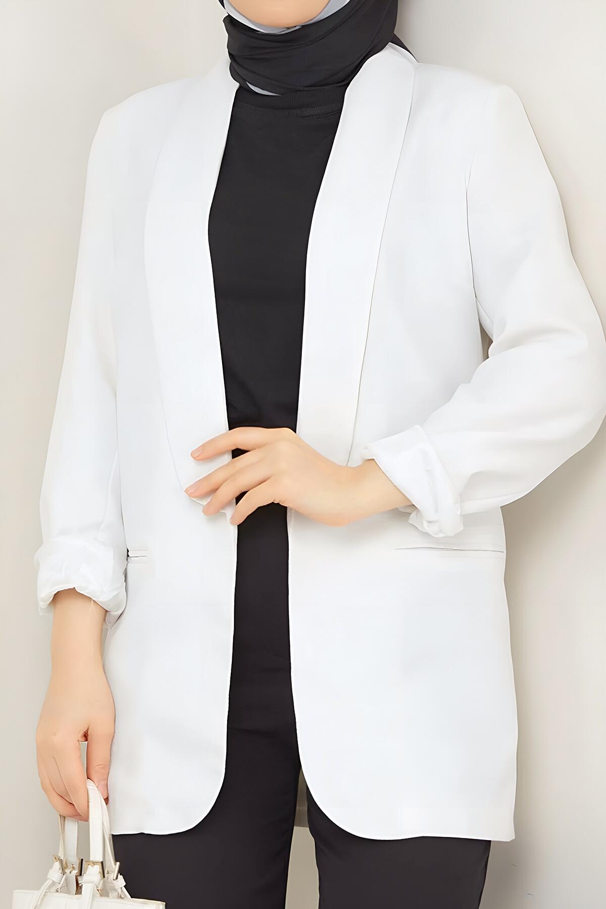 Kadın Mendil Yaka Blazer Ceket Beyaz