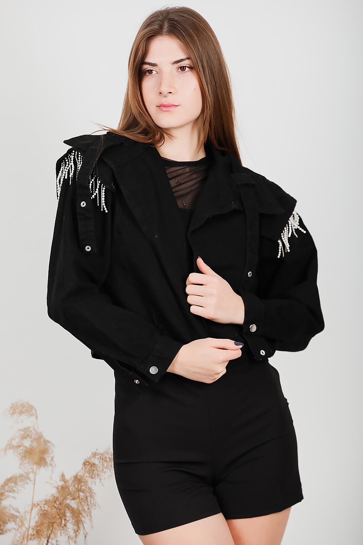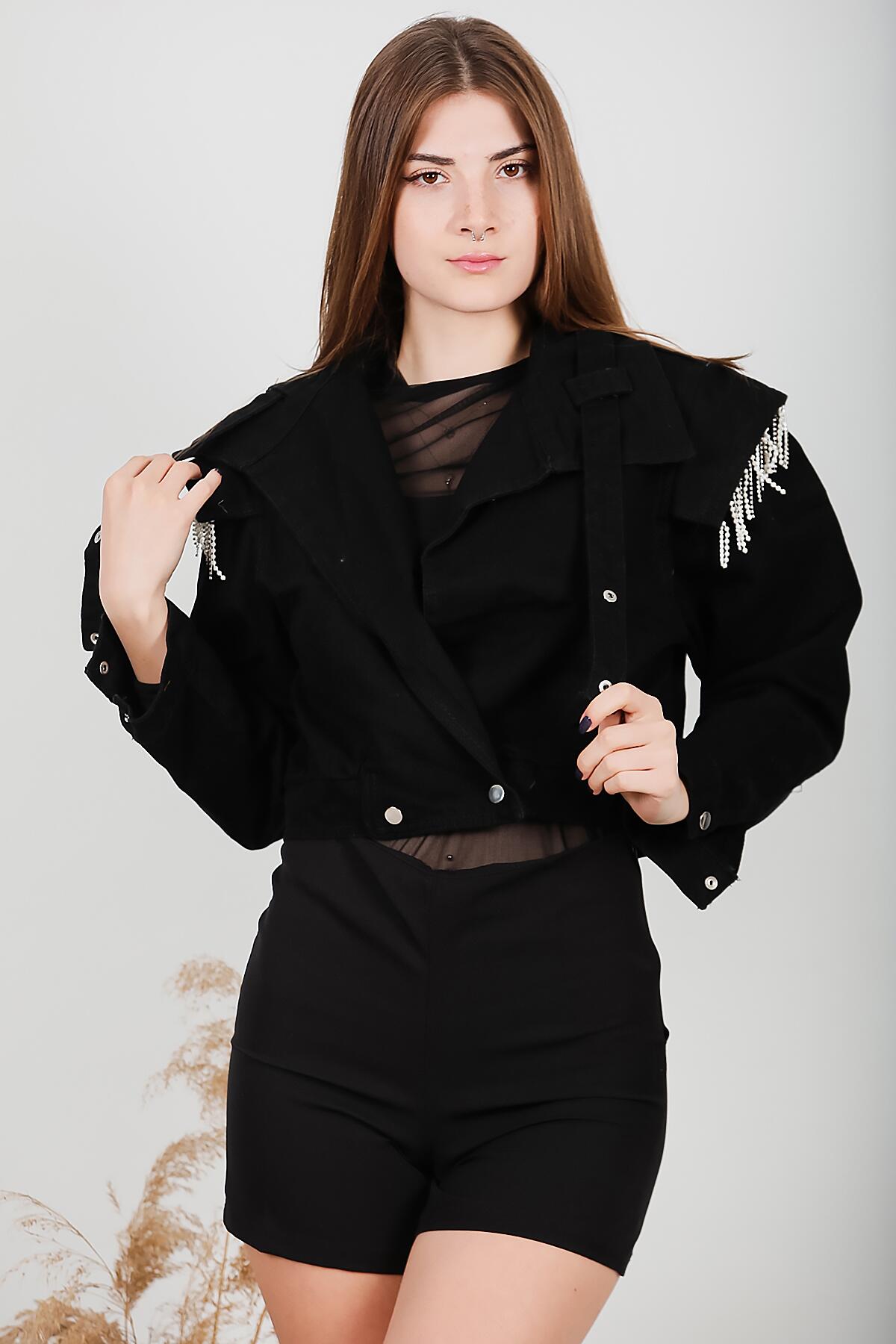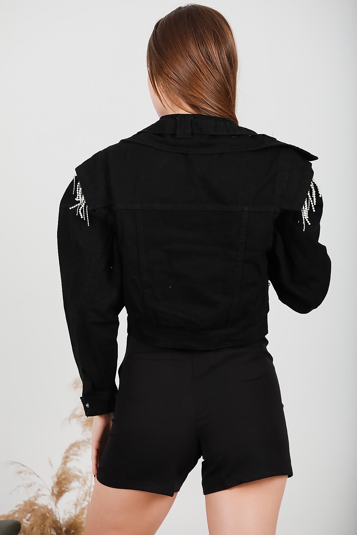 Kadın Omuz Taşlı Kot Ceket Siyah