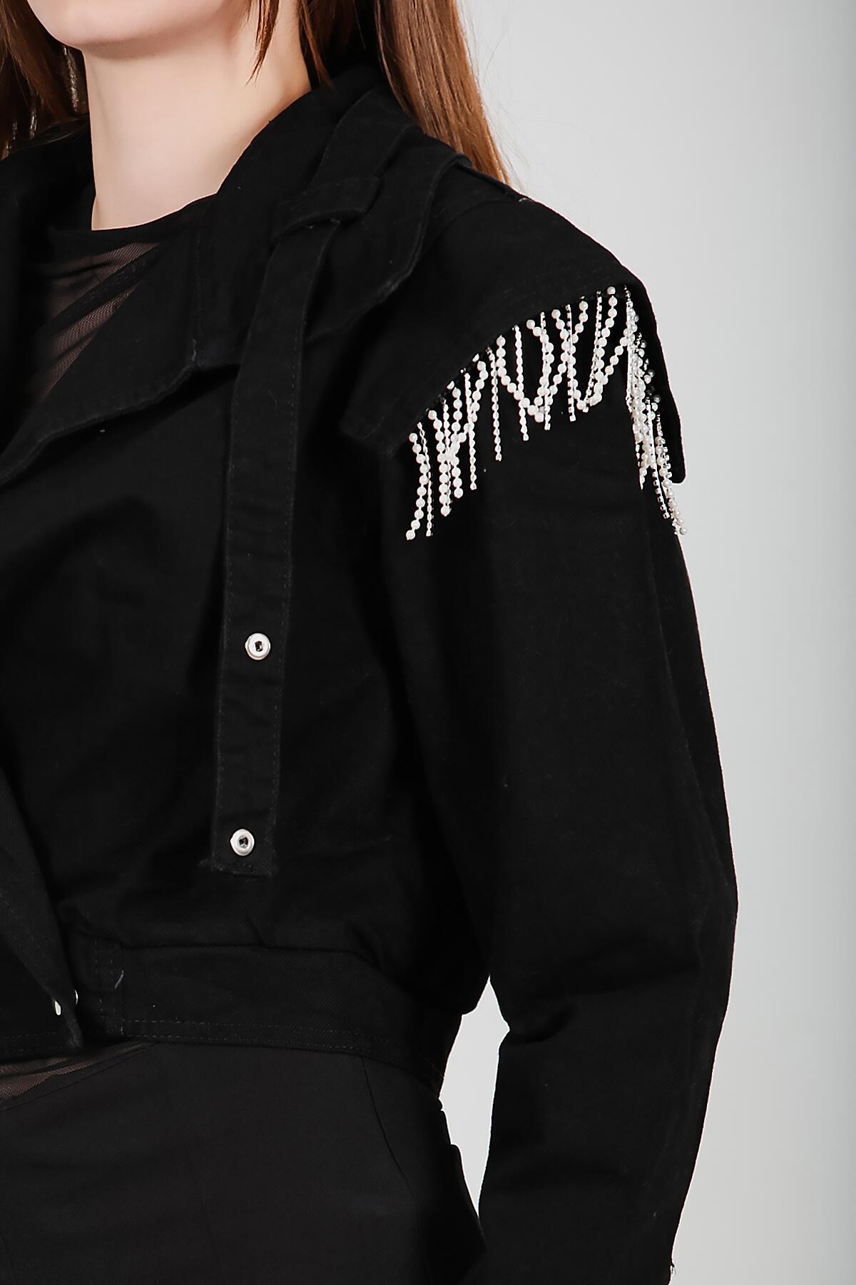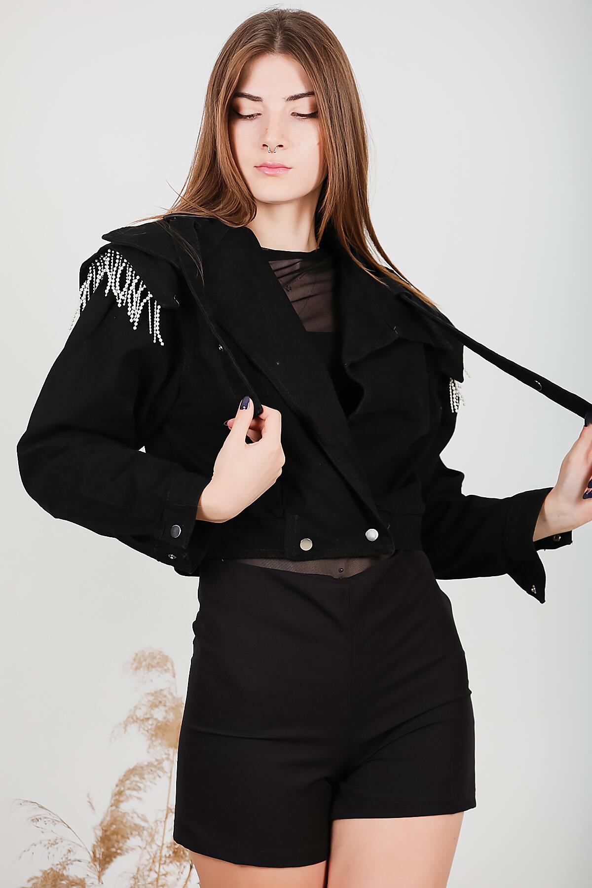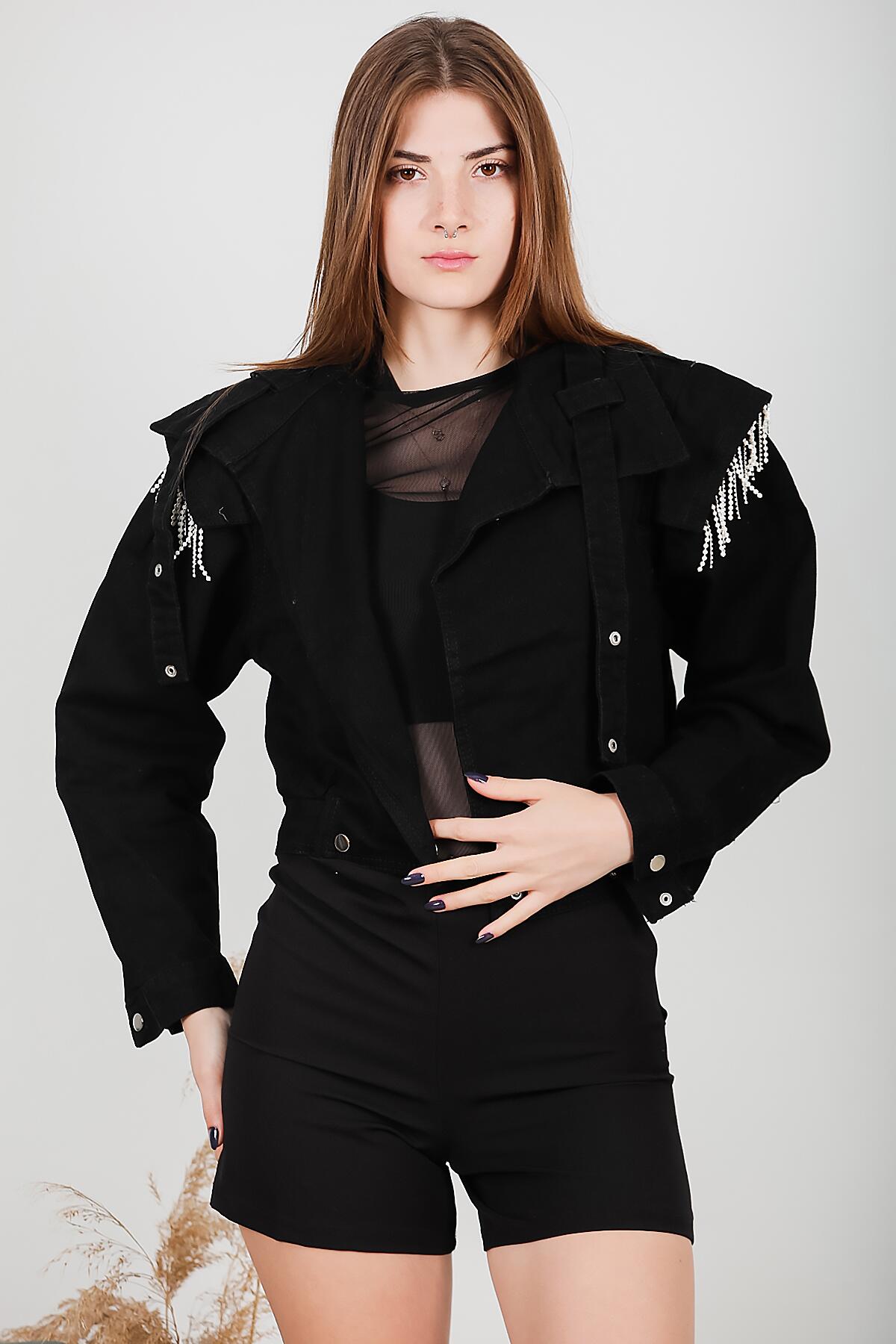 Kadın Omuz Taşlı Kot Ceket Siyah