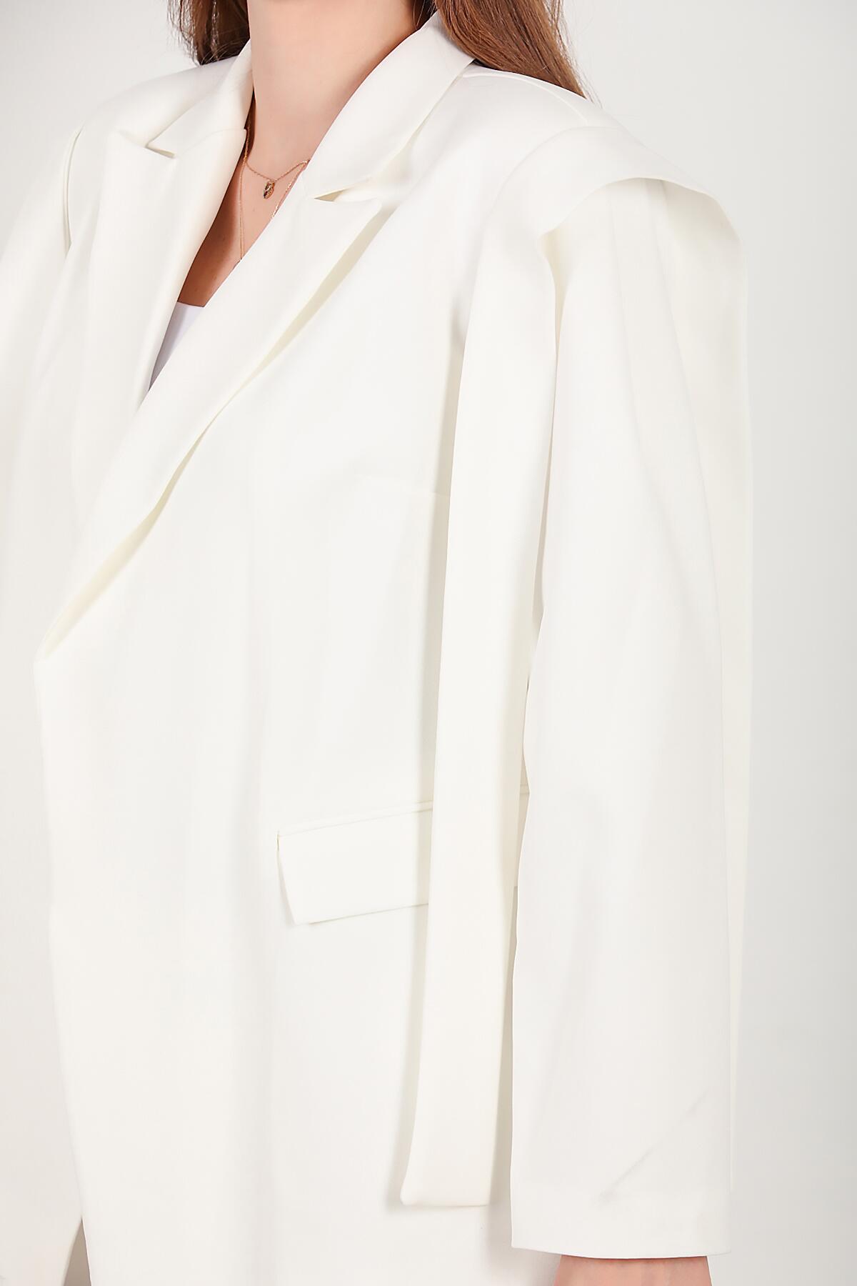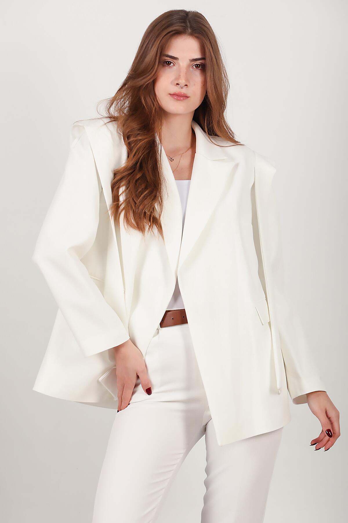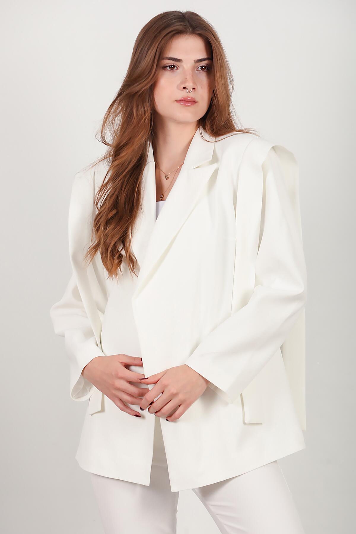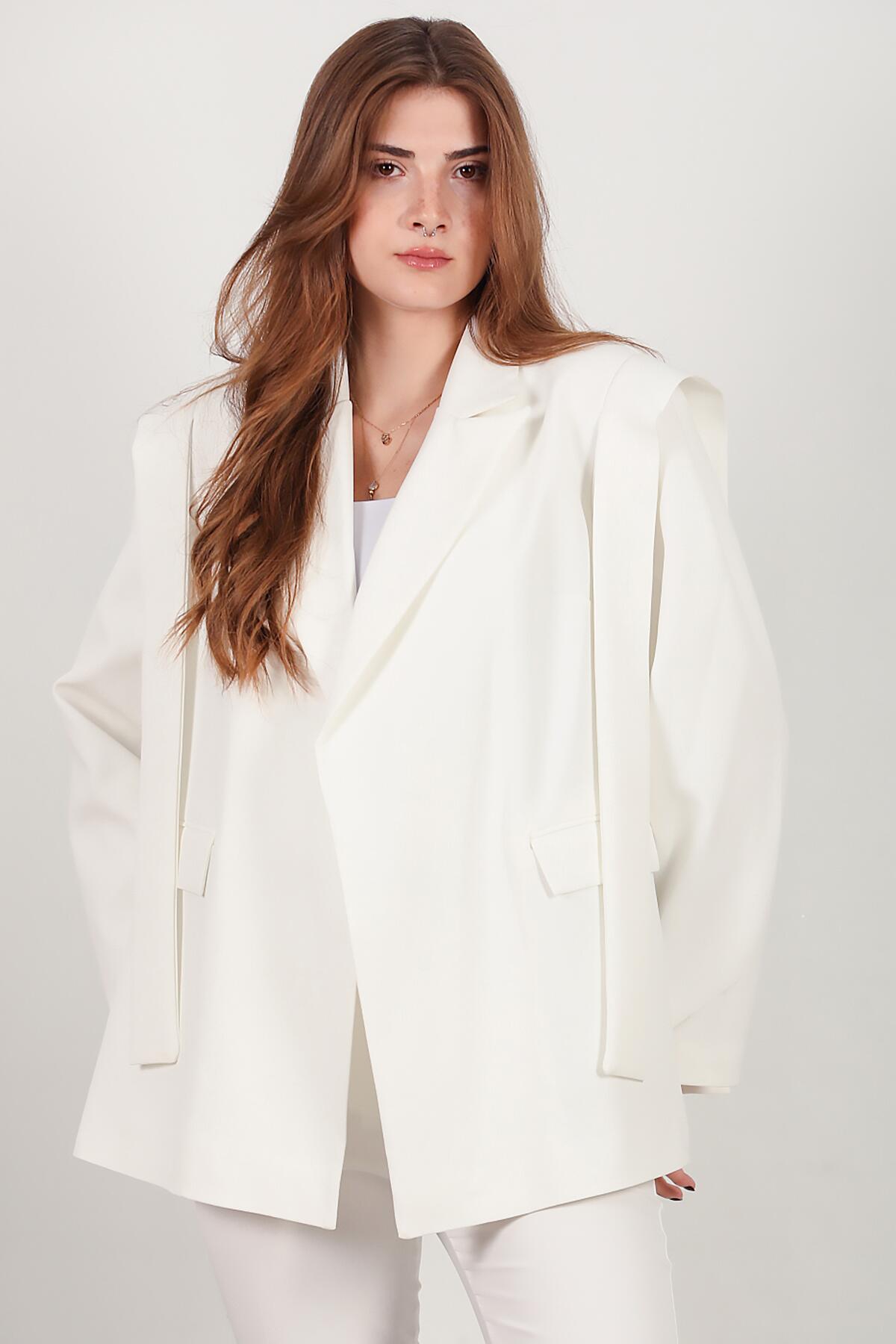 Kadın Omzu Kuşaklı Blazer Ceket Ekru